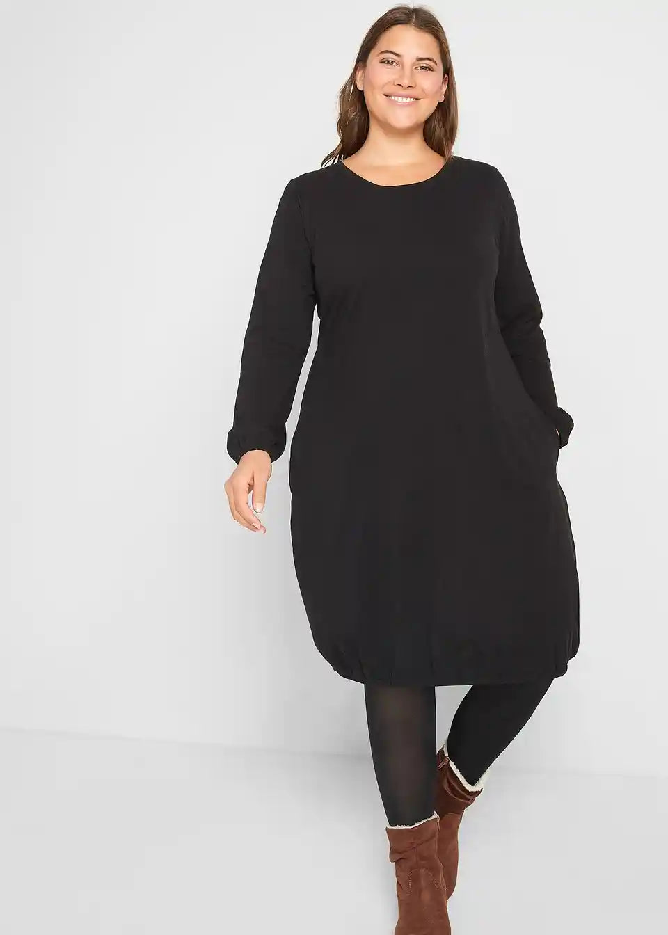 Haljina od pamučnog jerseya s dugim rukavima u obliku balona sa elastičnom trakom na porubu