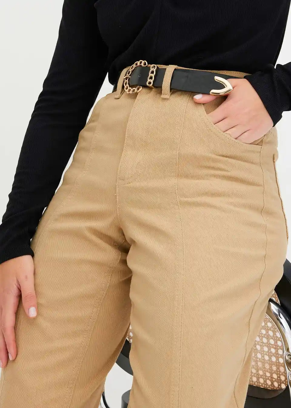Hlače balon kroja od kepera s remenom