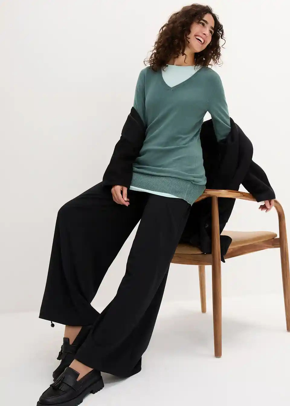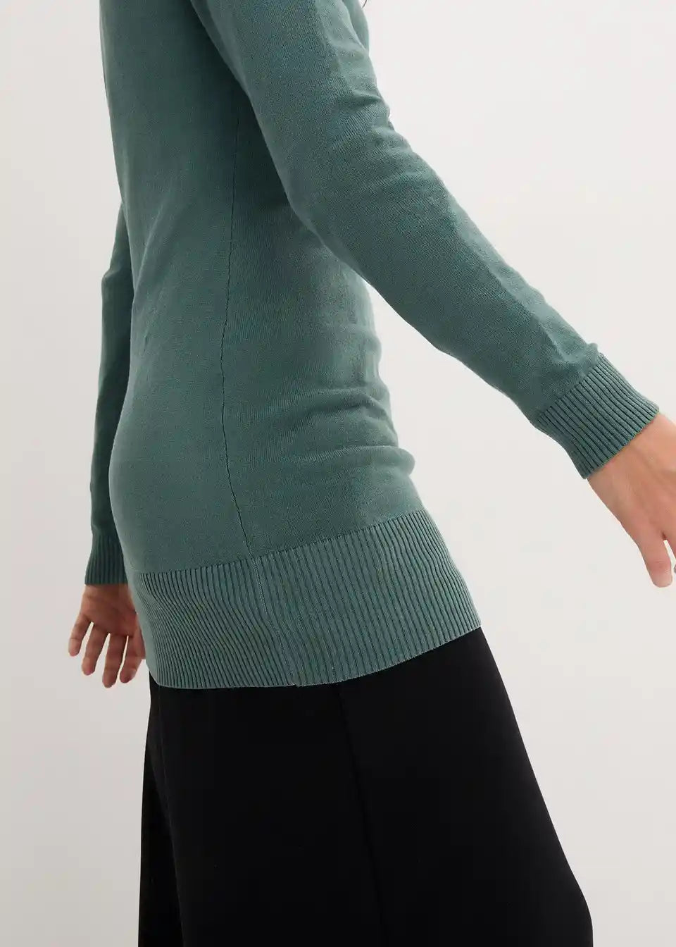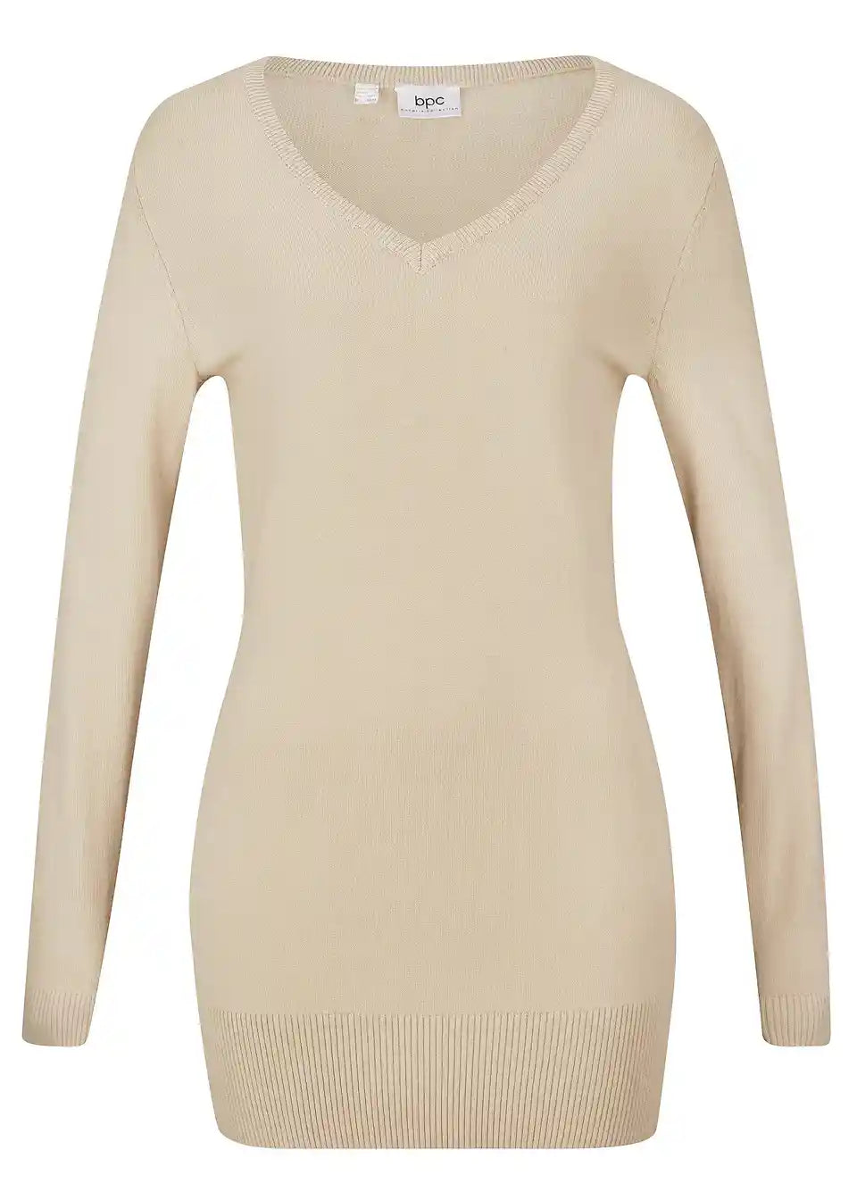 Dugi pulover iz bpc kolekcije, dostupan u svježim bojama, izrađen je od ugodnog finog pletiva. Moderan dugi kroj dobro pristaje uz uske traperice. S klasičnim V-izrezom i tijesnim krojem, pulover naglašava figuru. Ovaj pulover koji se može prati u perilici odjeće je fleksibilan osnovni odjevni predmet za ured i slobodno vrijeme. Prsluci, gilendi ili dugi lančići daju mu dodatnu atraktivnu notu.