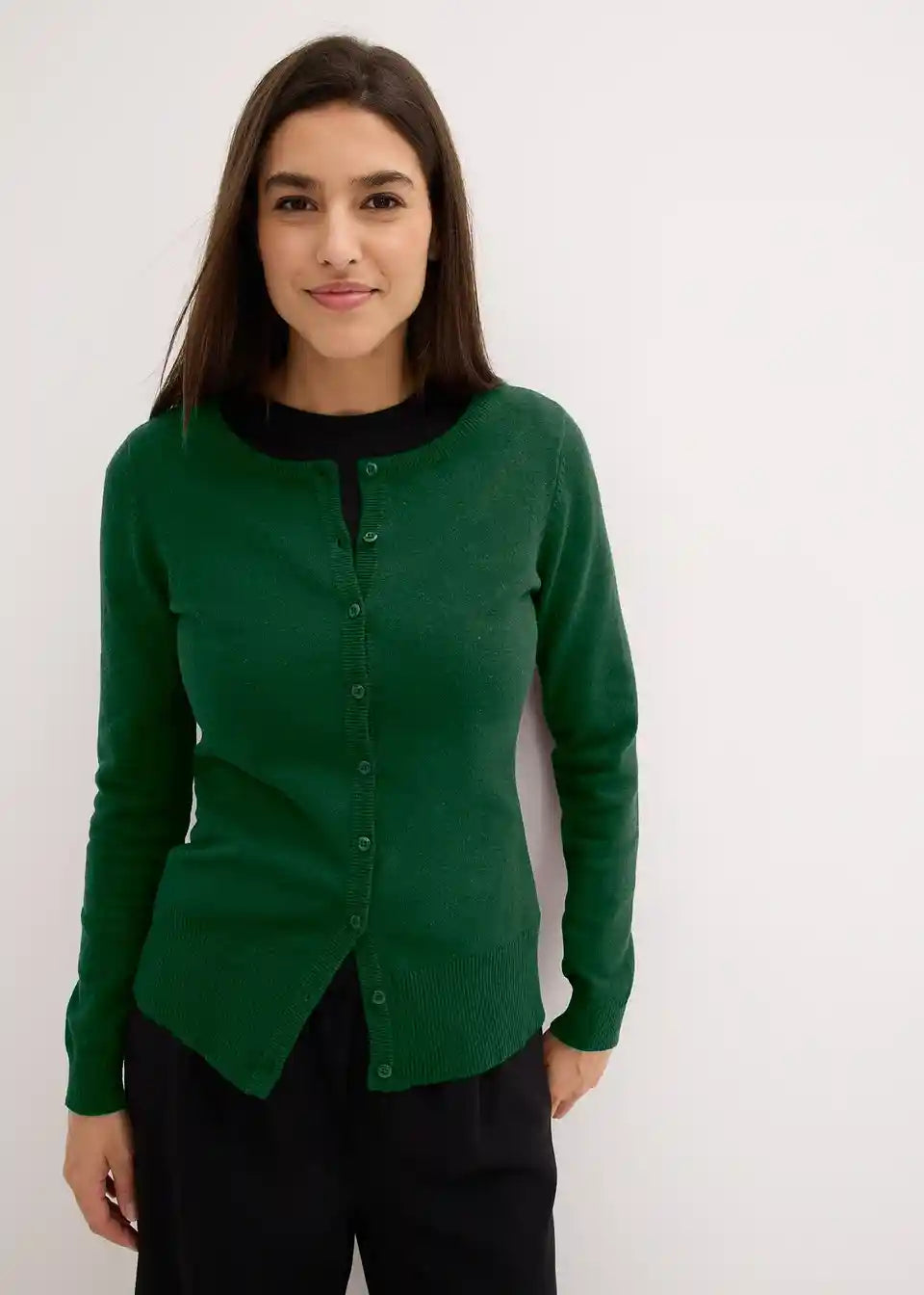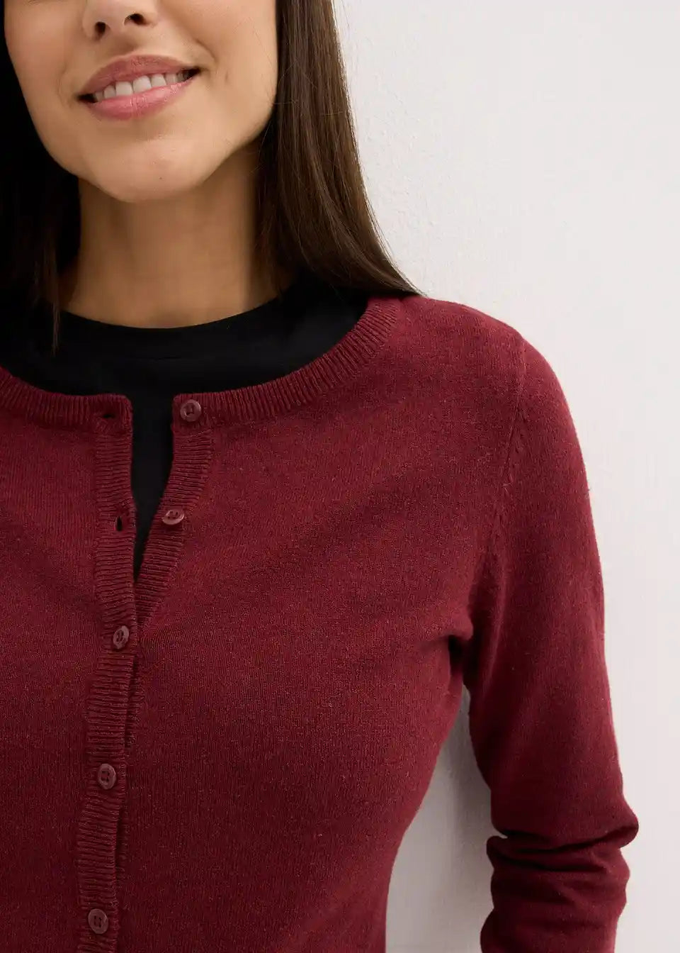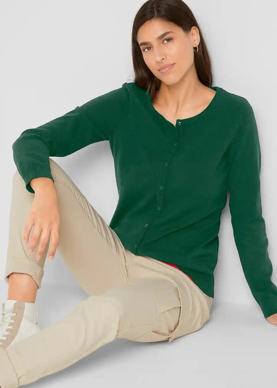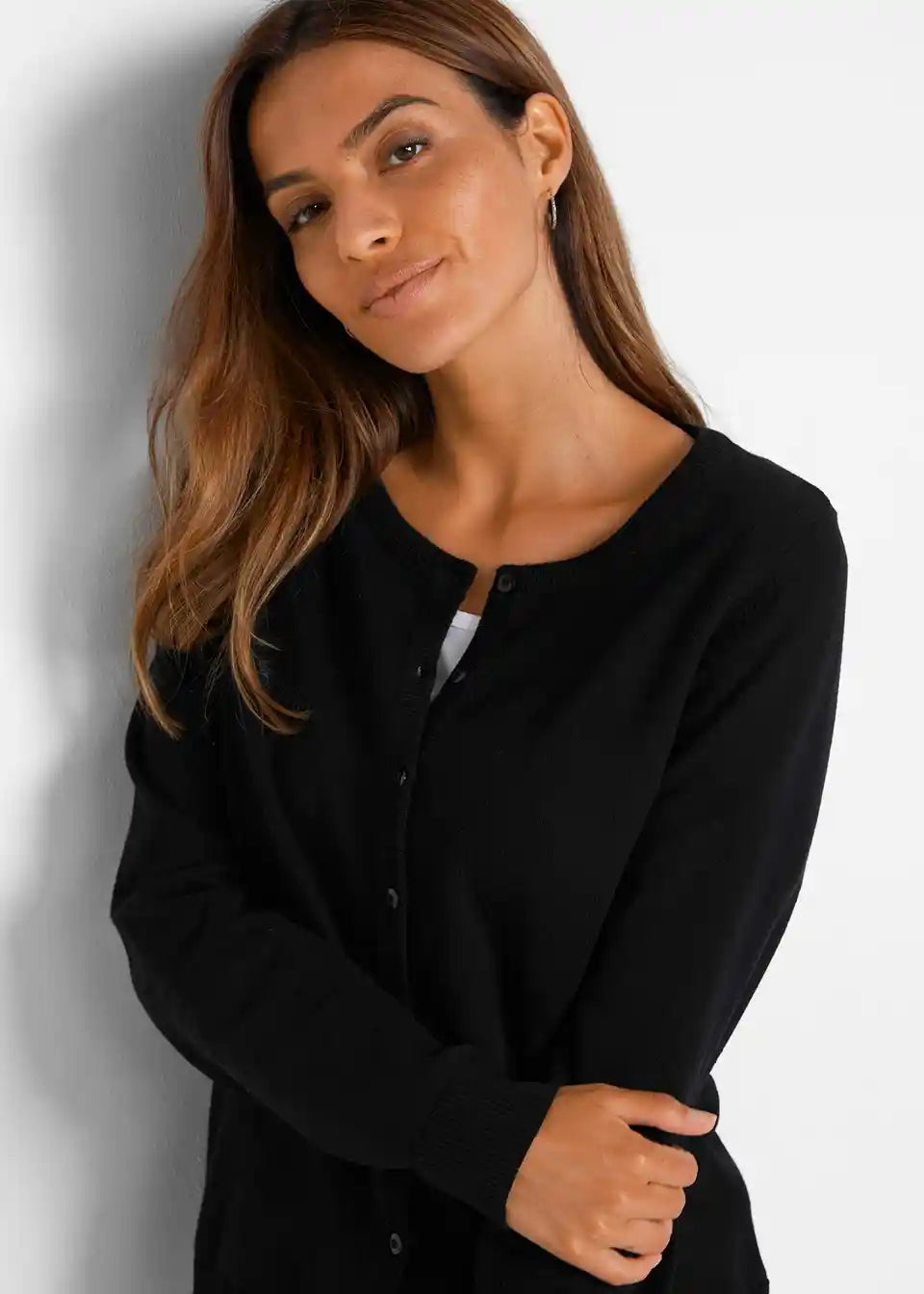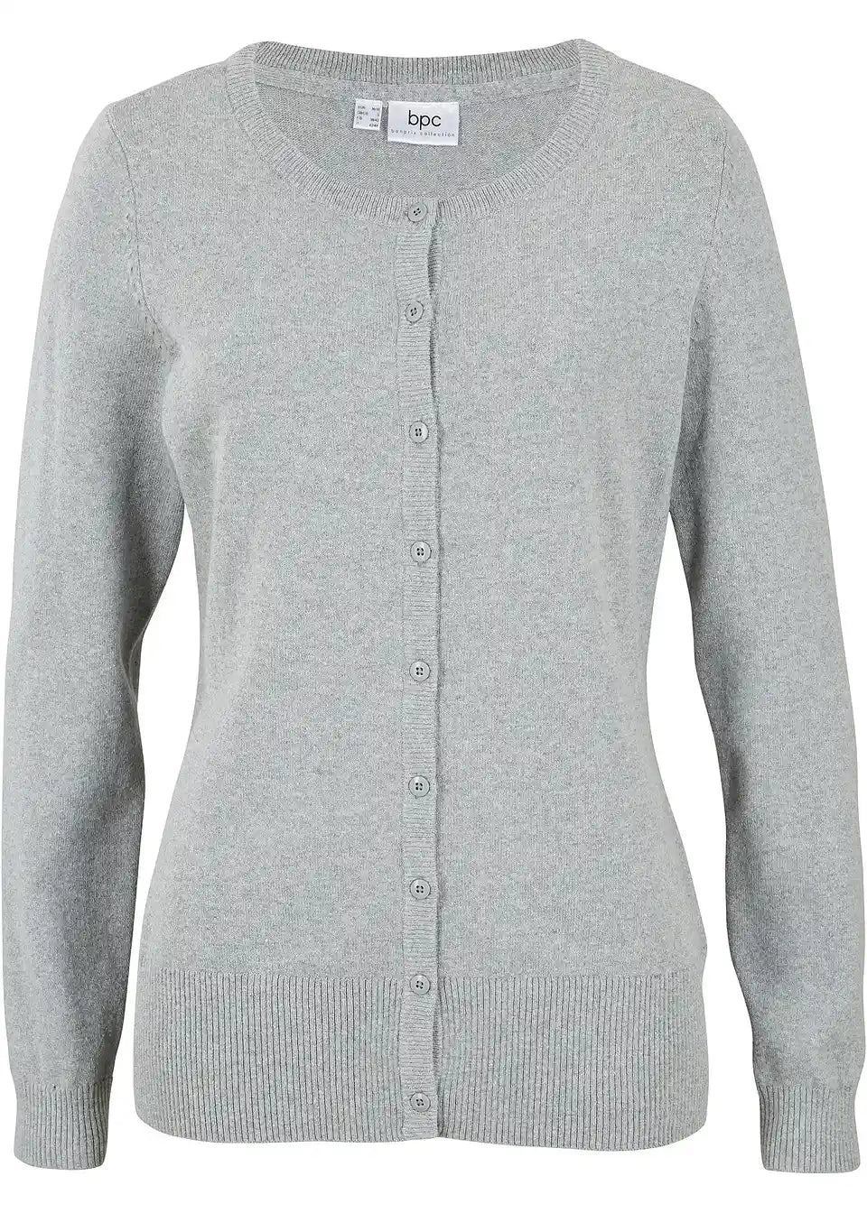 Pletena jakna marke b.p.c Casual u finom pletivu s kopčanjem na gumbe, dužine od cca 64 cm (vel.36/38) do cca 70 cm (vel.48/50), pogodna za pranje u perilici.