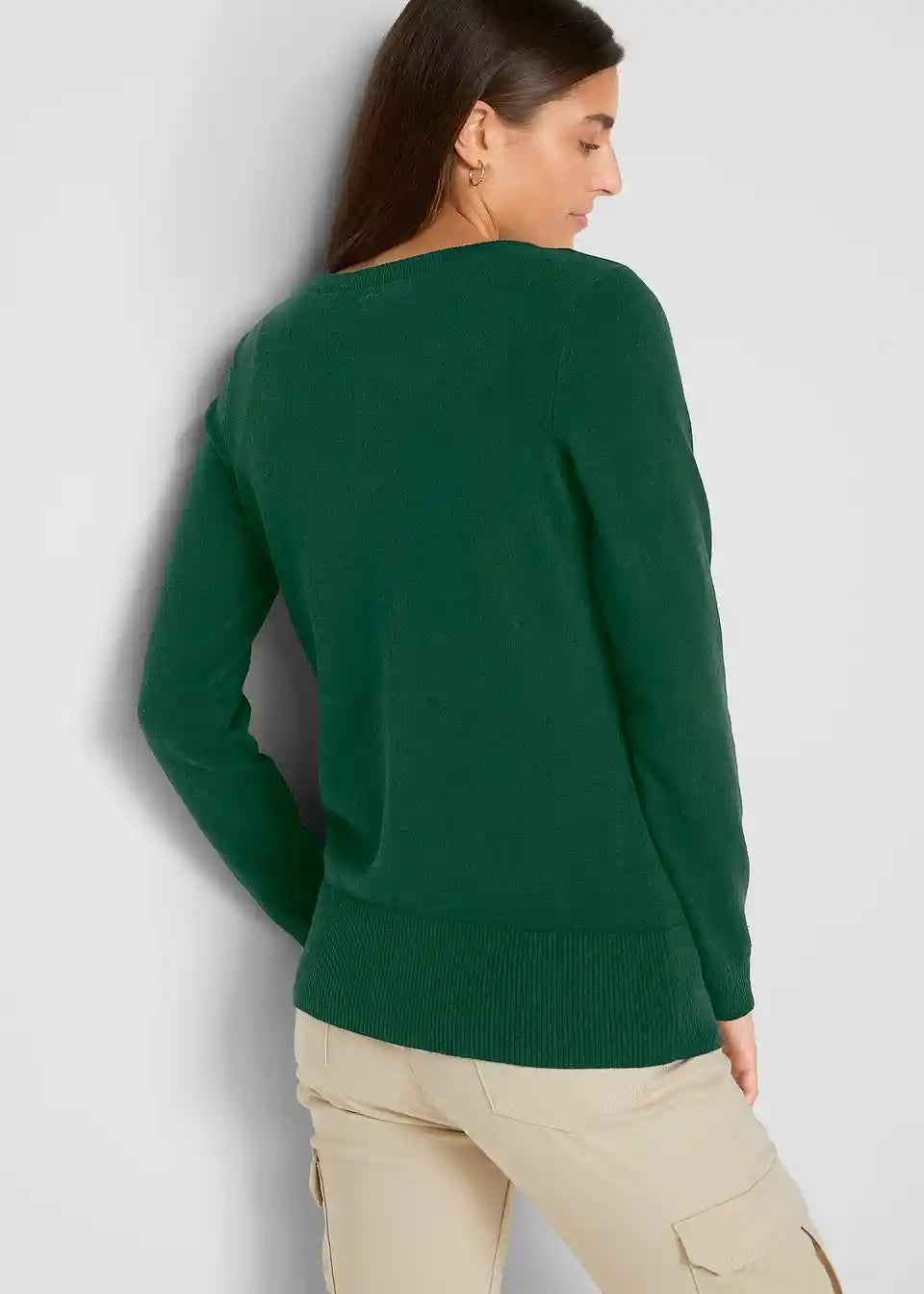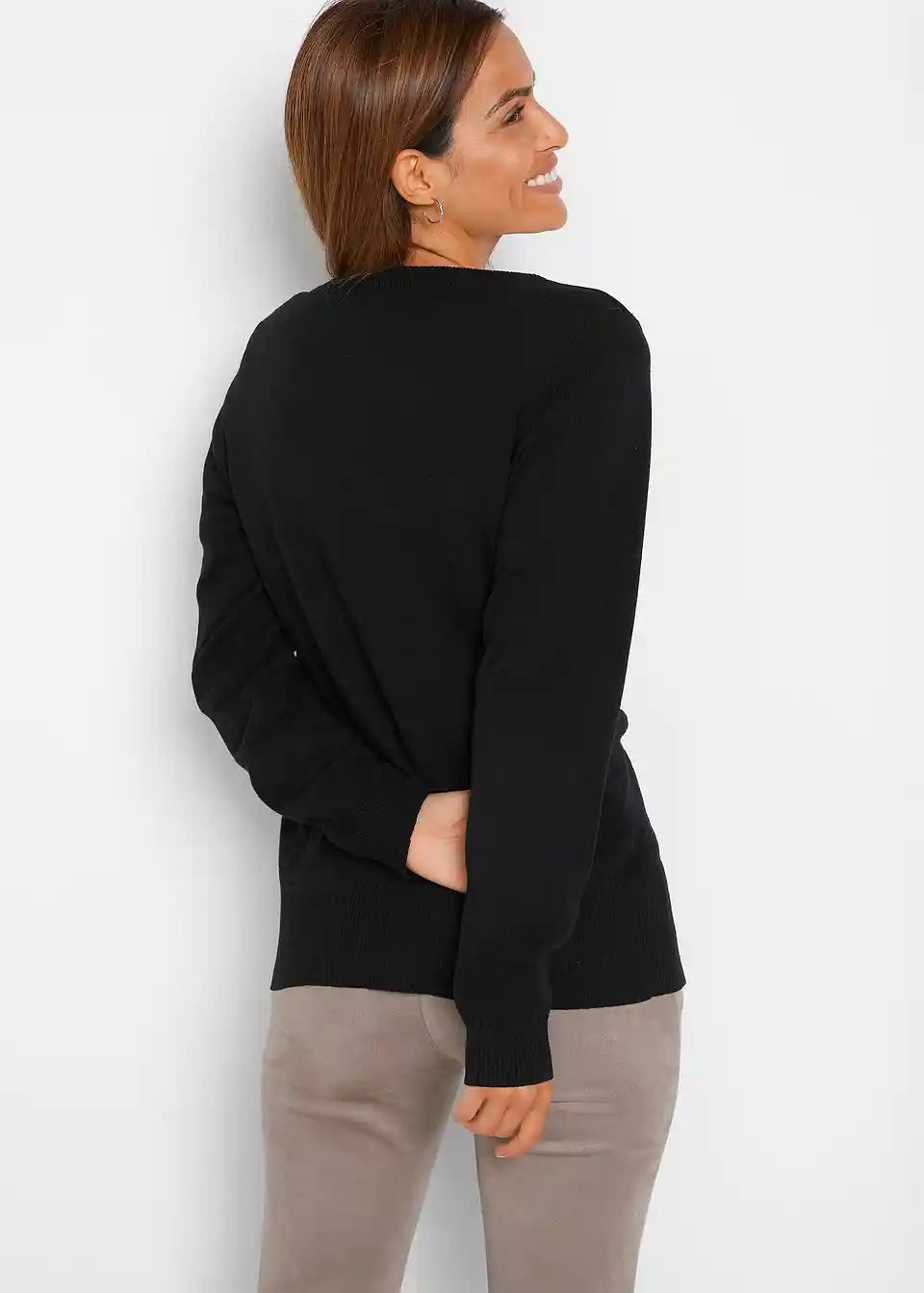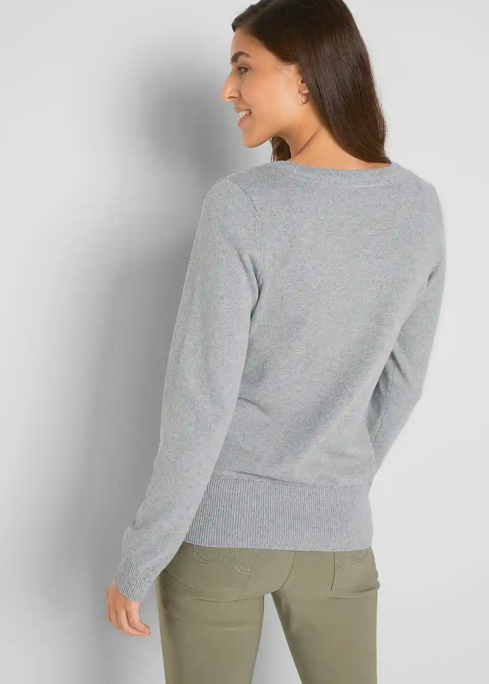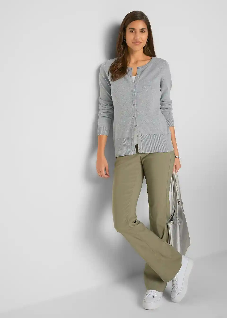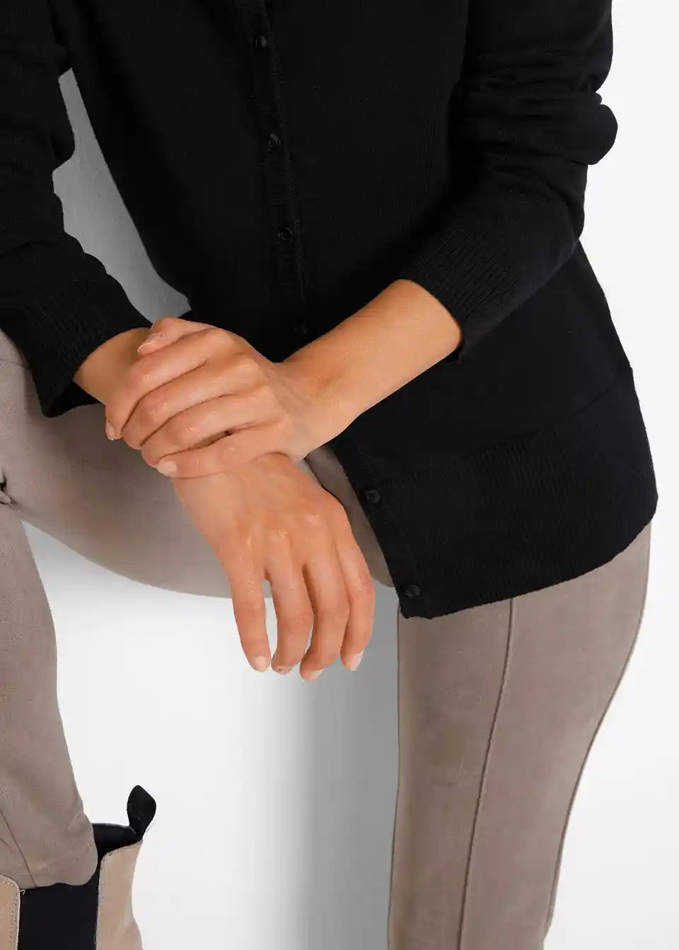 Pletena jakna marke b.p.c Casual u finom pletivu s kopčanjem na gumbe, dužine od cca 64 cm (vel.36/38) do cca 70 cm (vel.48/50), pogodna za pranje u perilici.
