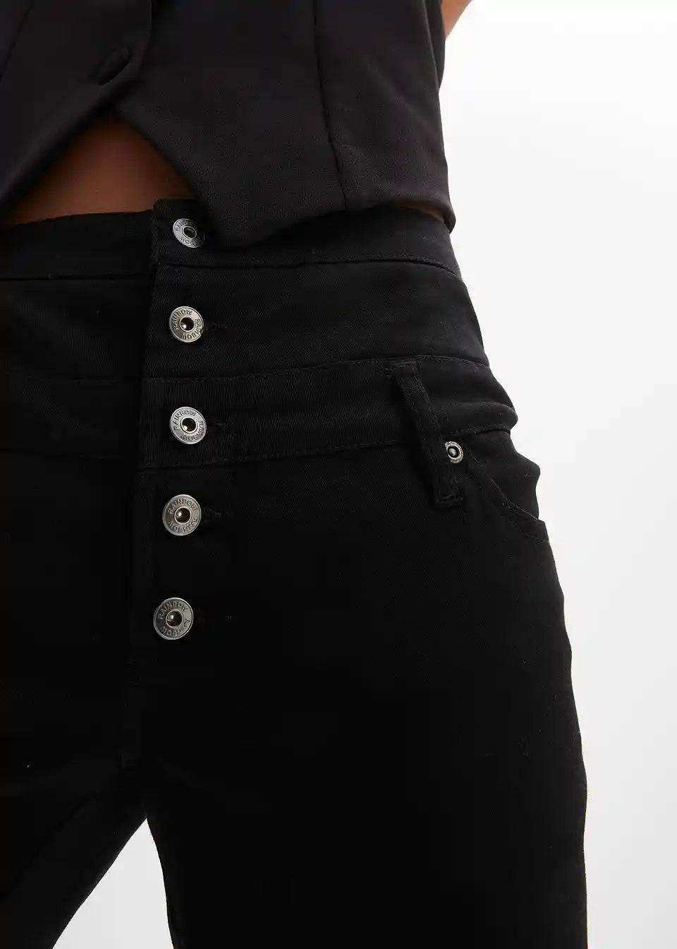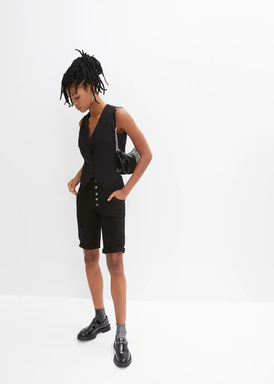 Uske bermude s visokim strukom i uočljivim redom gumba