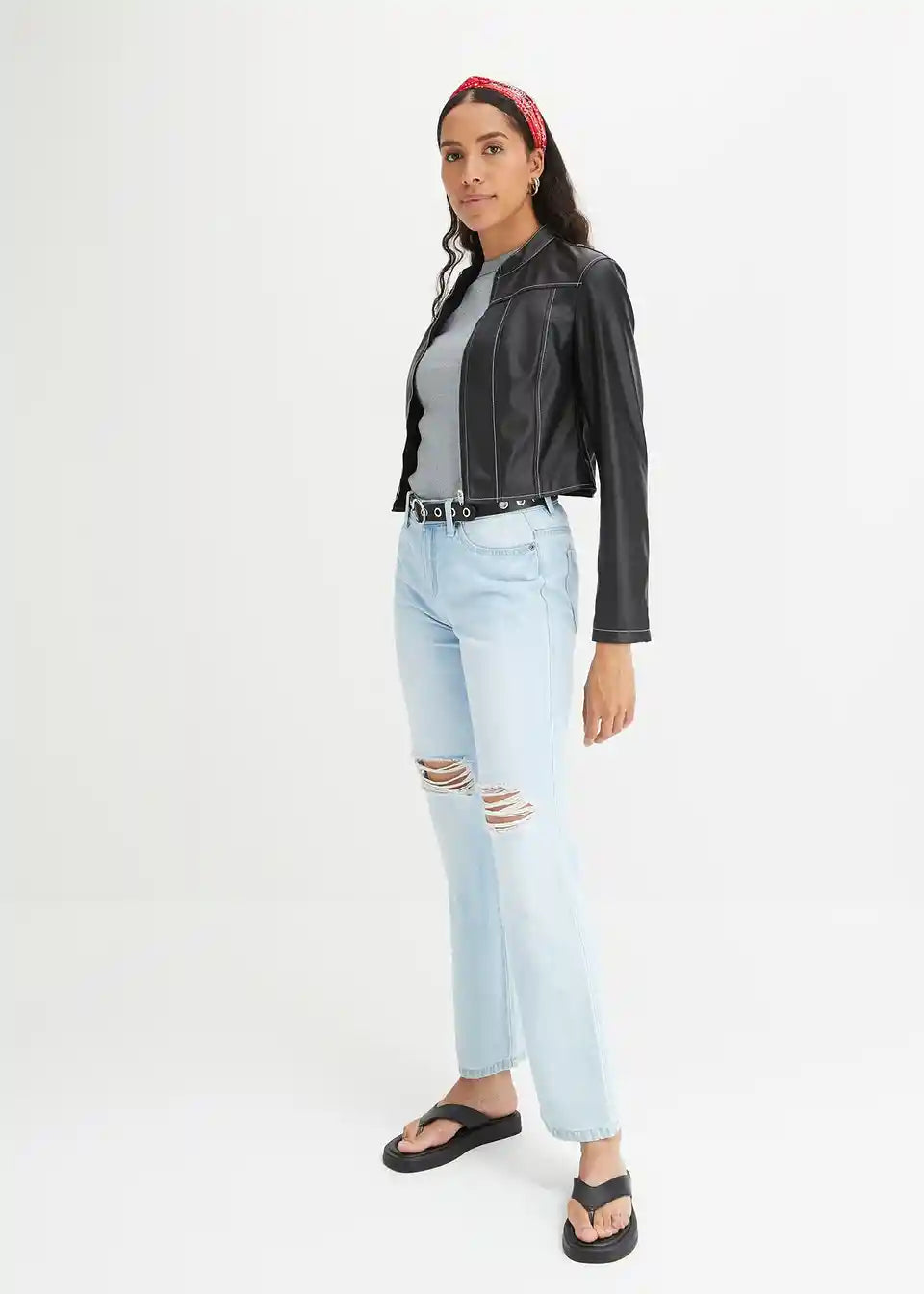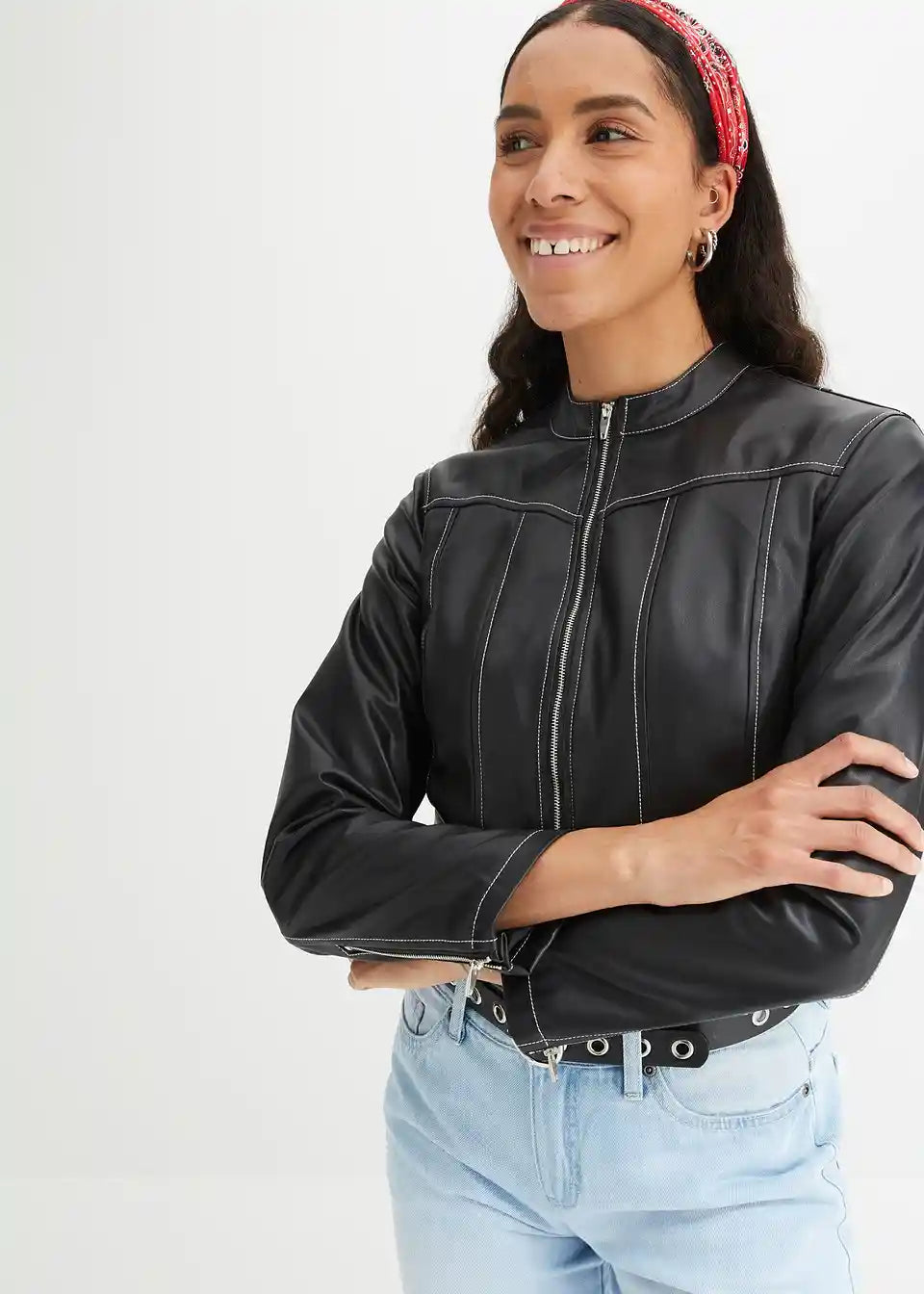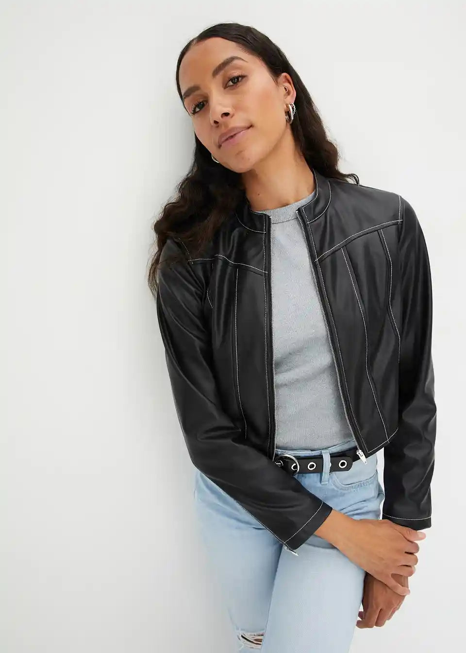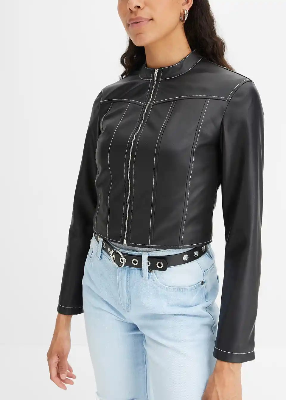 Kratka biker-jakna s kontrastnim šavovima