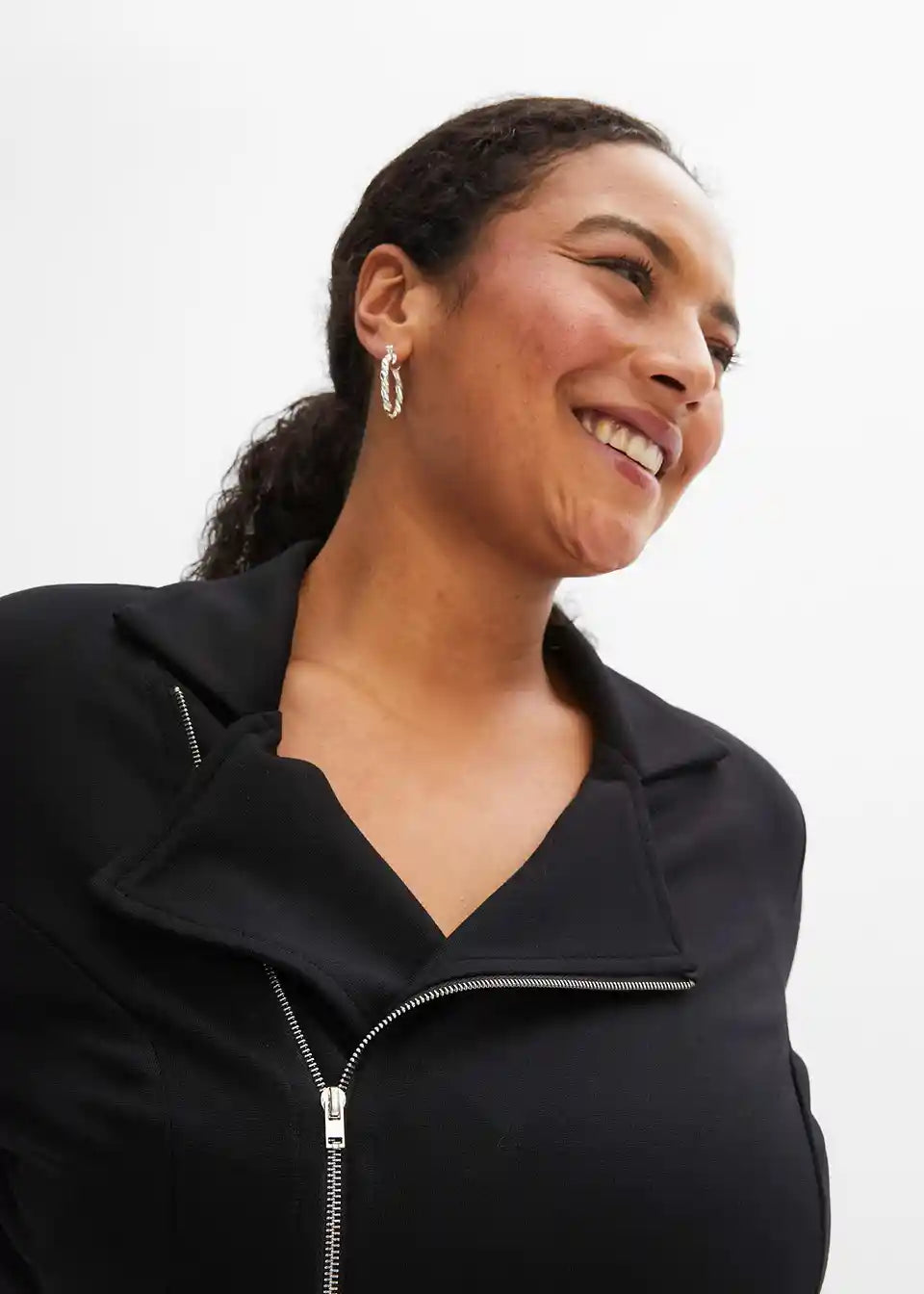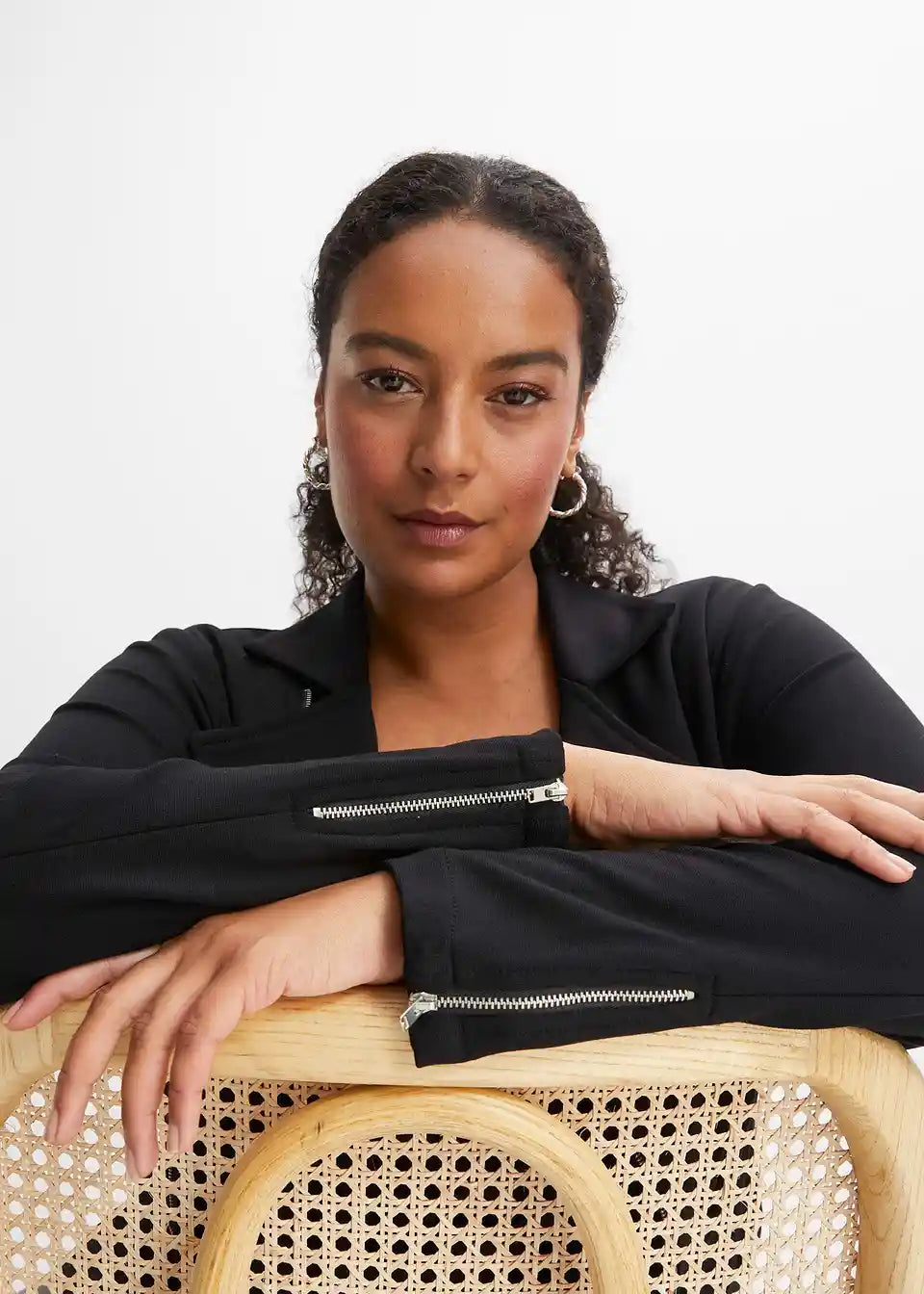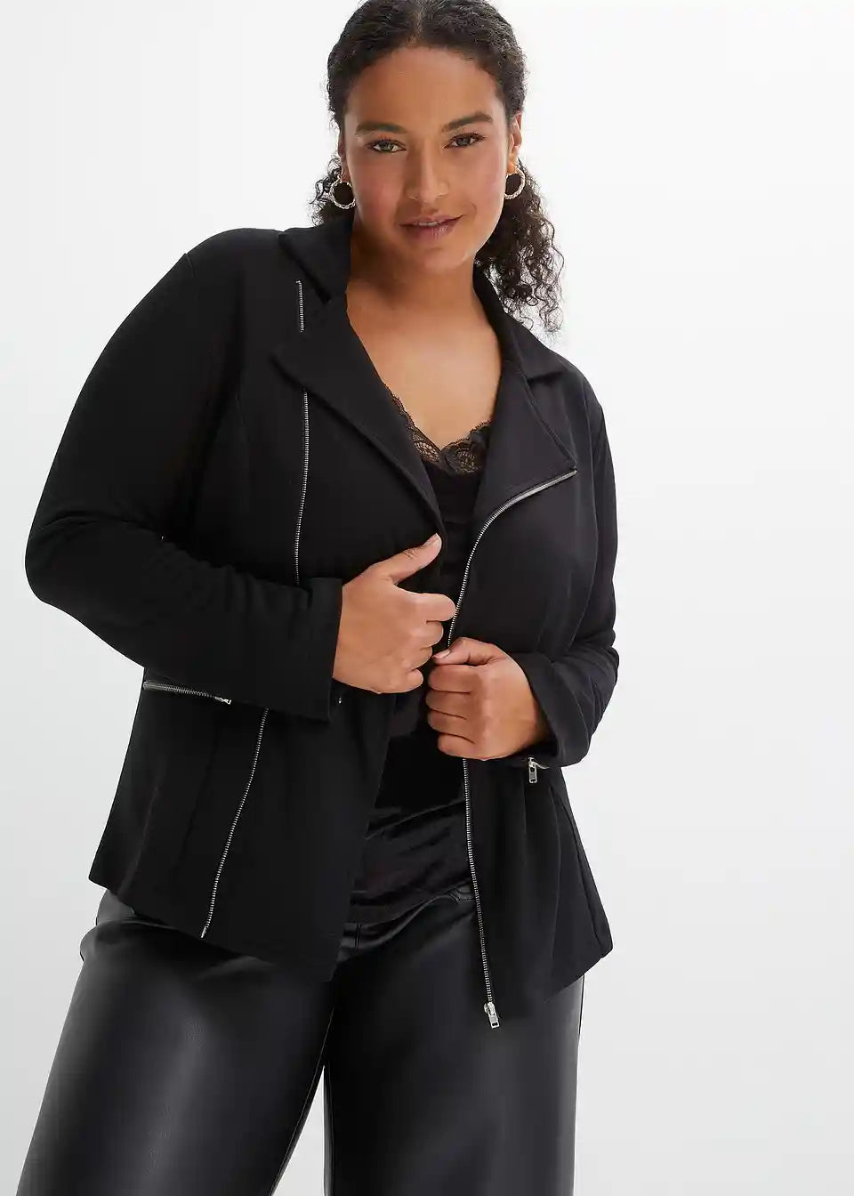 Moderna Biker-Shirtjakna s dekorativnim patentnim zatvaračima i lažnim džepovima.