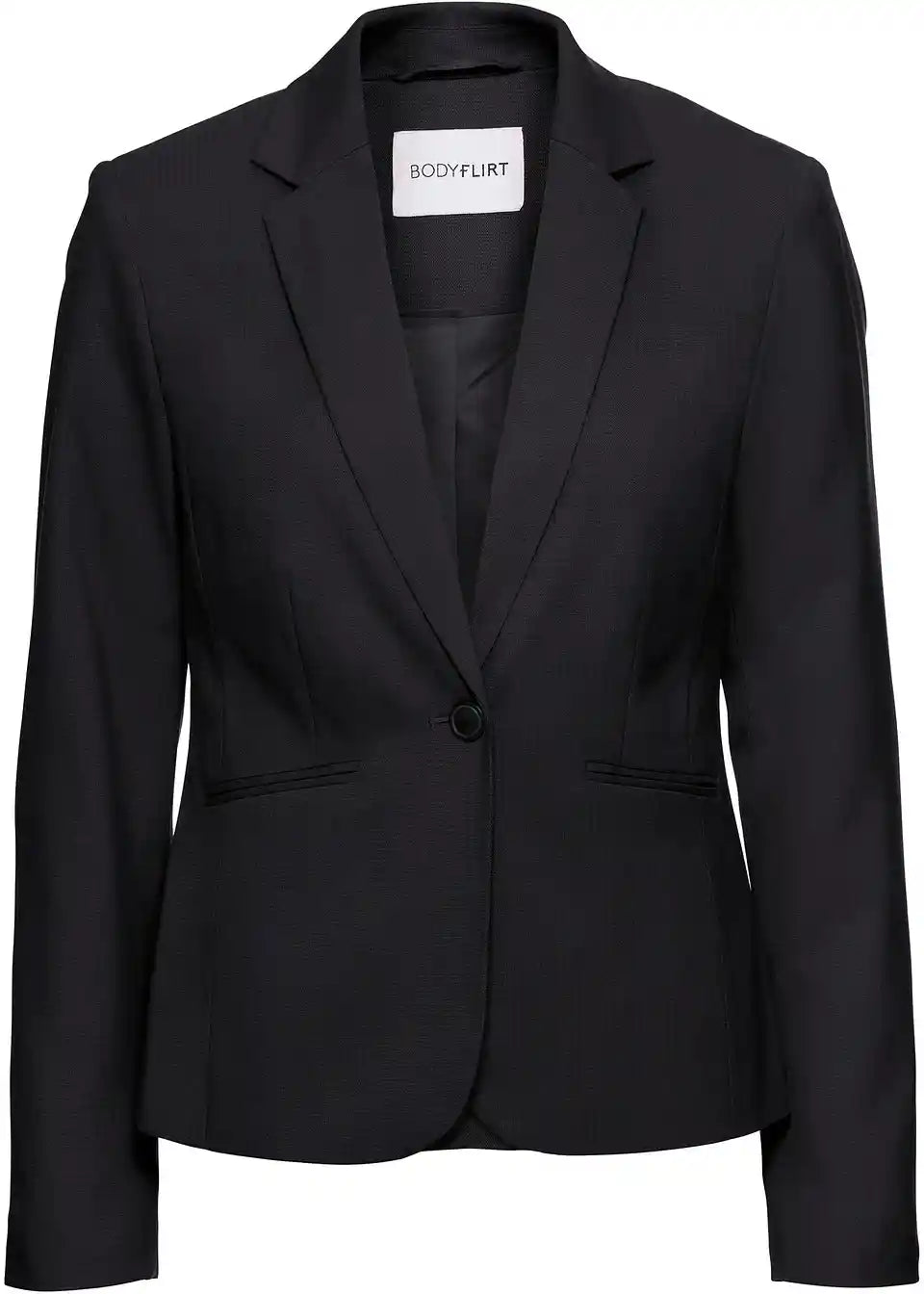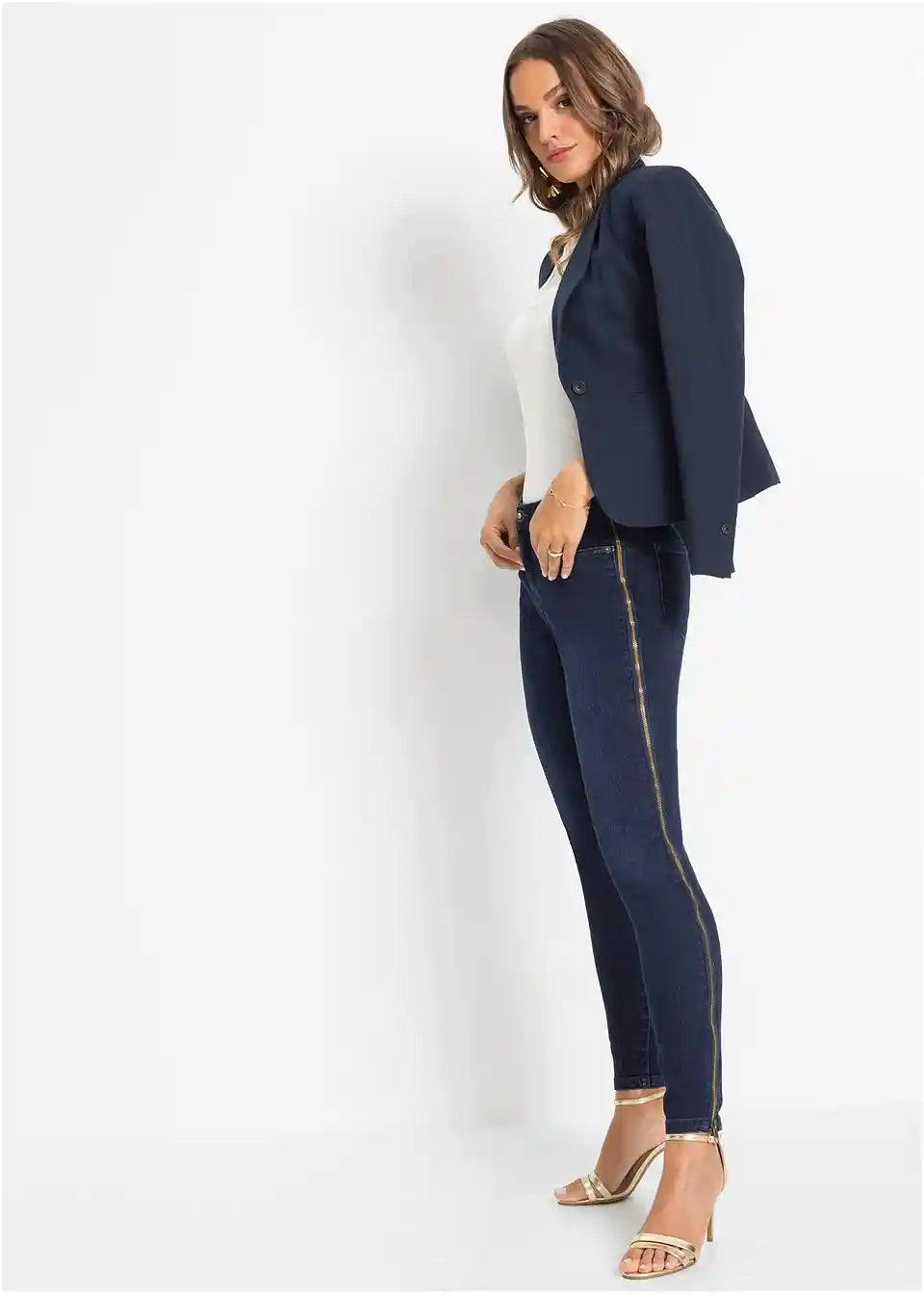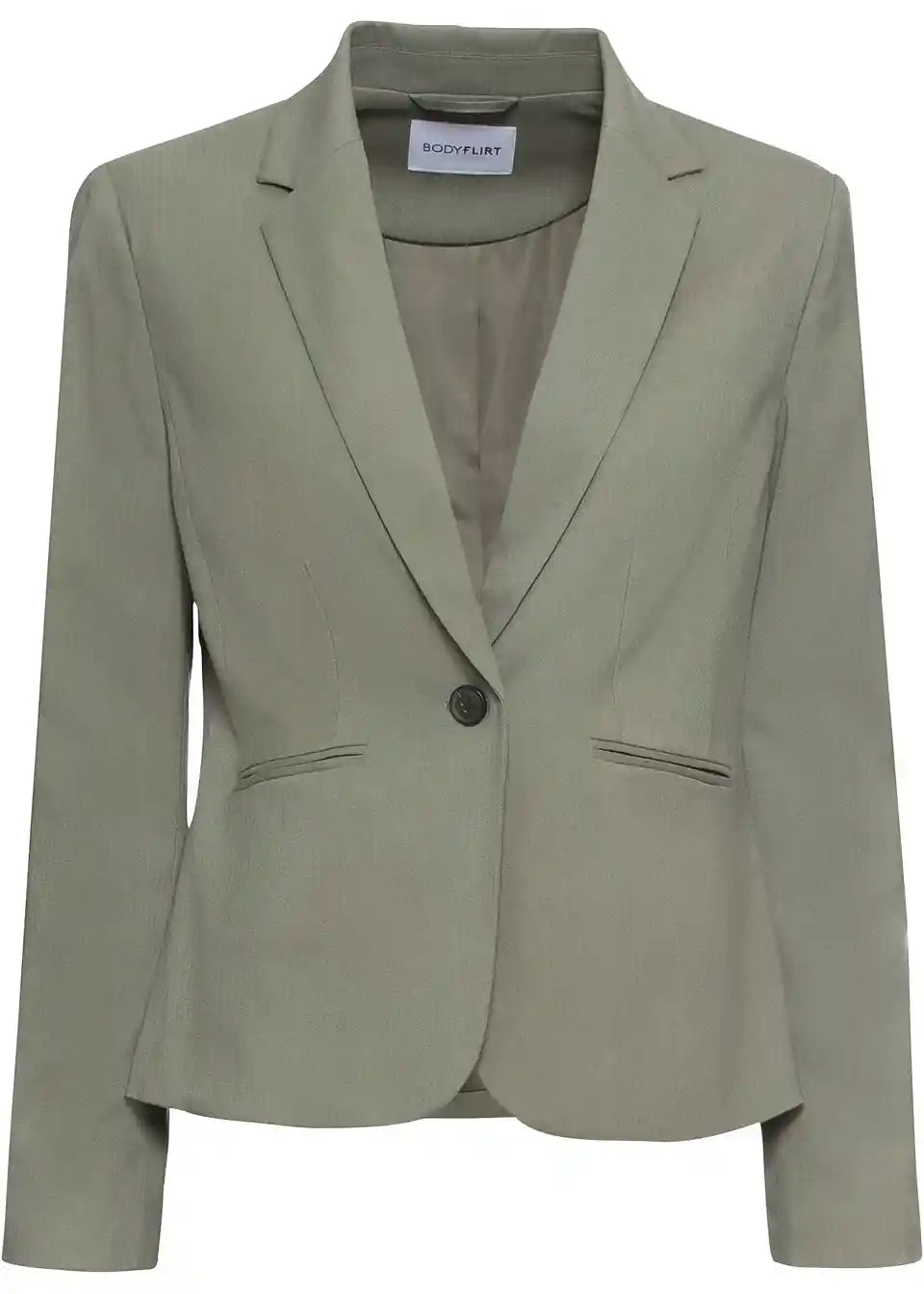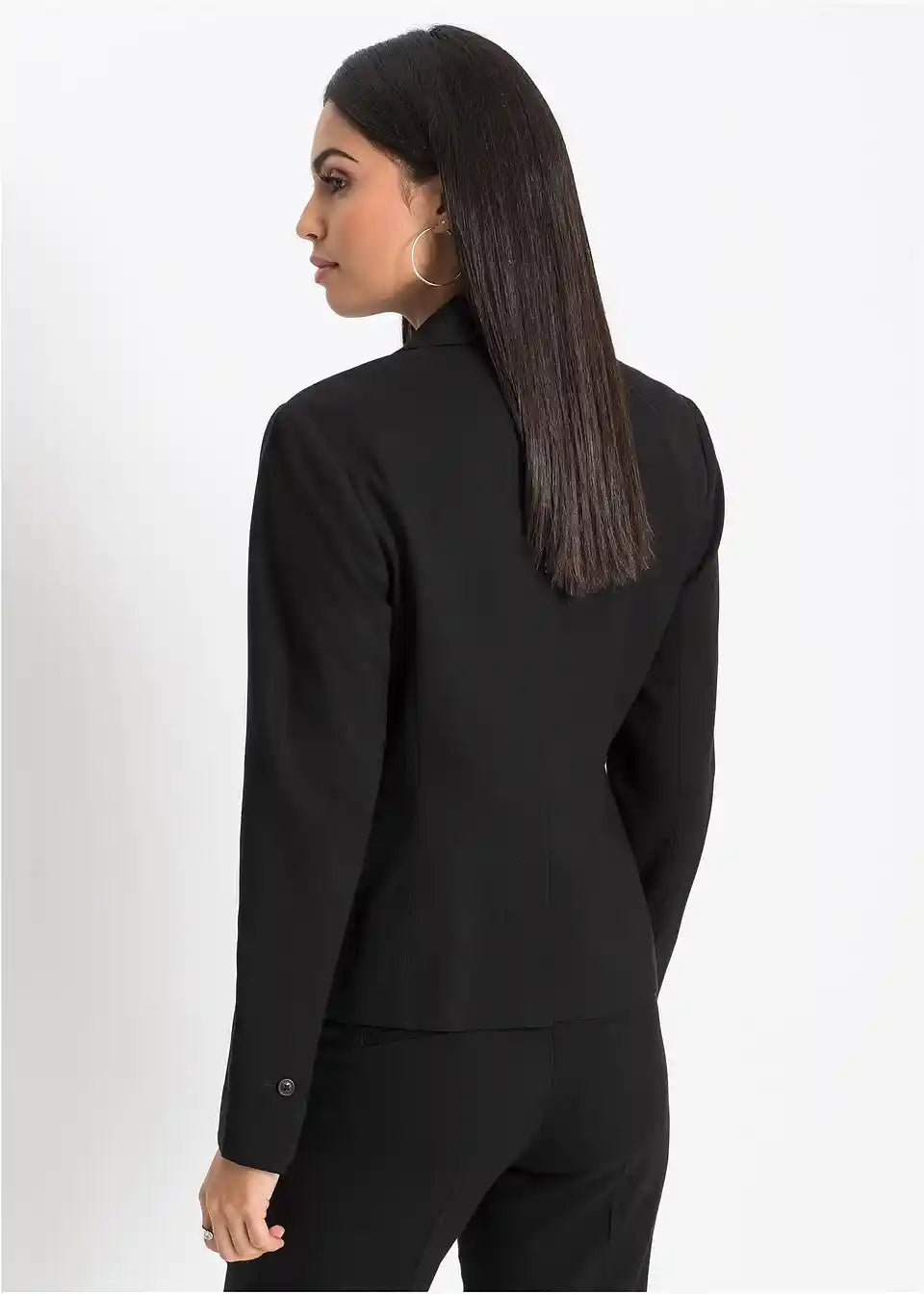 Blazer s paspuliranim džepovima u strukiranom kroju. Oba rukava imaju po jedan gumb. Duljina u veličini 38 iznosi cca 58 cm.