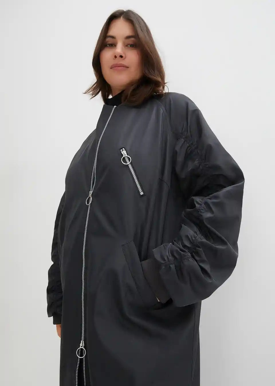 ležeran, moderan kaput s naborima na rukavima, pletenim manšetama i ukrasnim džepovima
