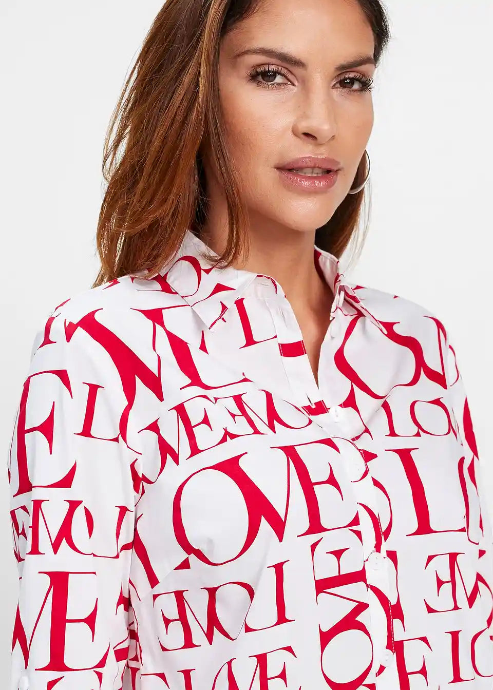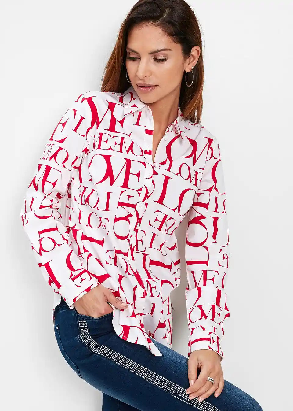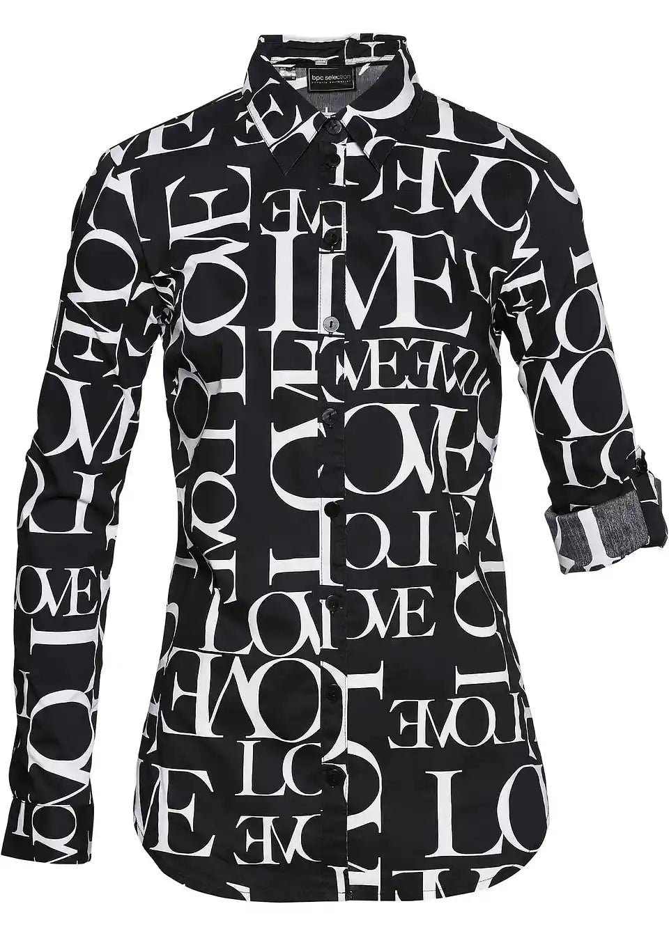 Ova šarmantna bluza s dekorativnim Love ispisom laska figuri zahvaljujući svom kroju. U kombinaciji s klasičnim njegovanim trapericama iz bpc Selection kolekcije i modernim cipelama na petu, bluza pruža moderan izgled.