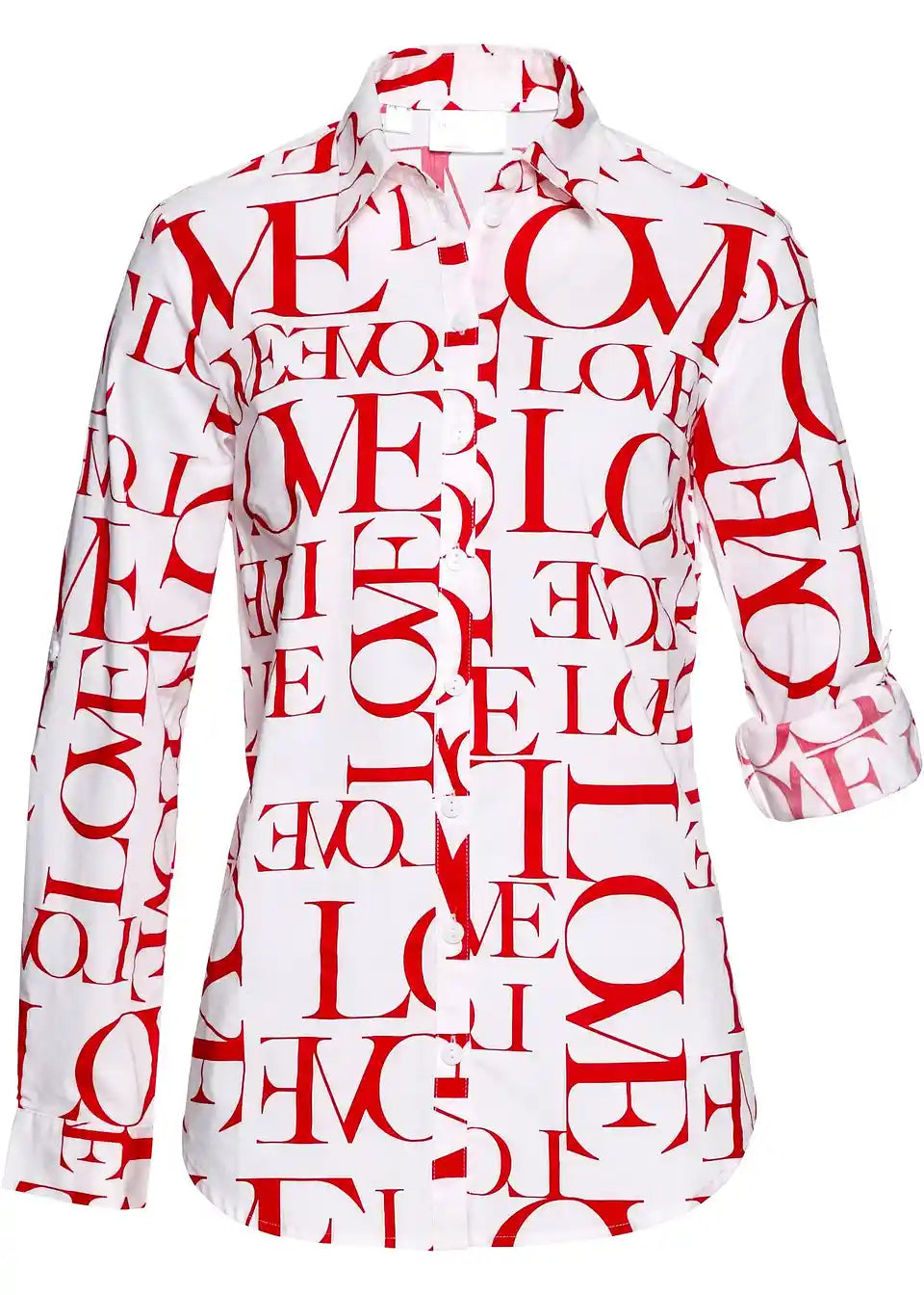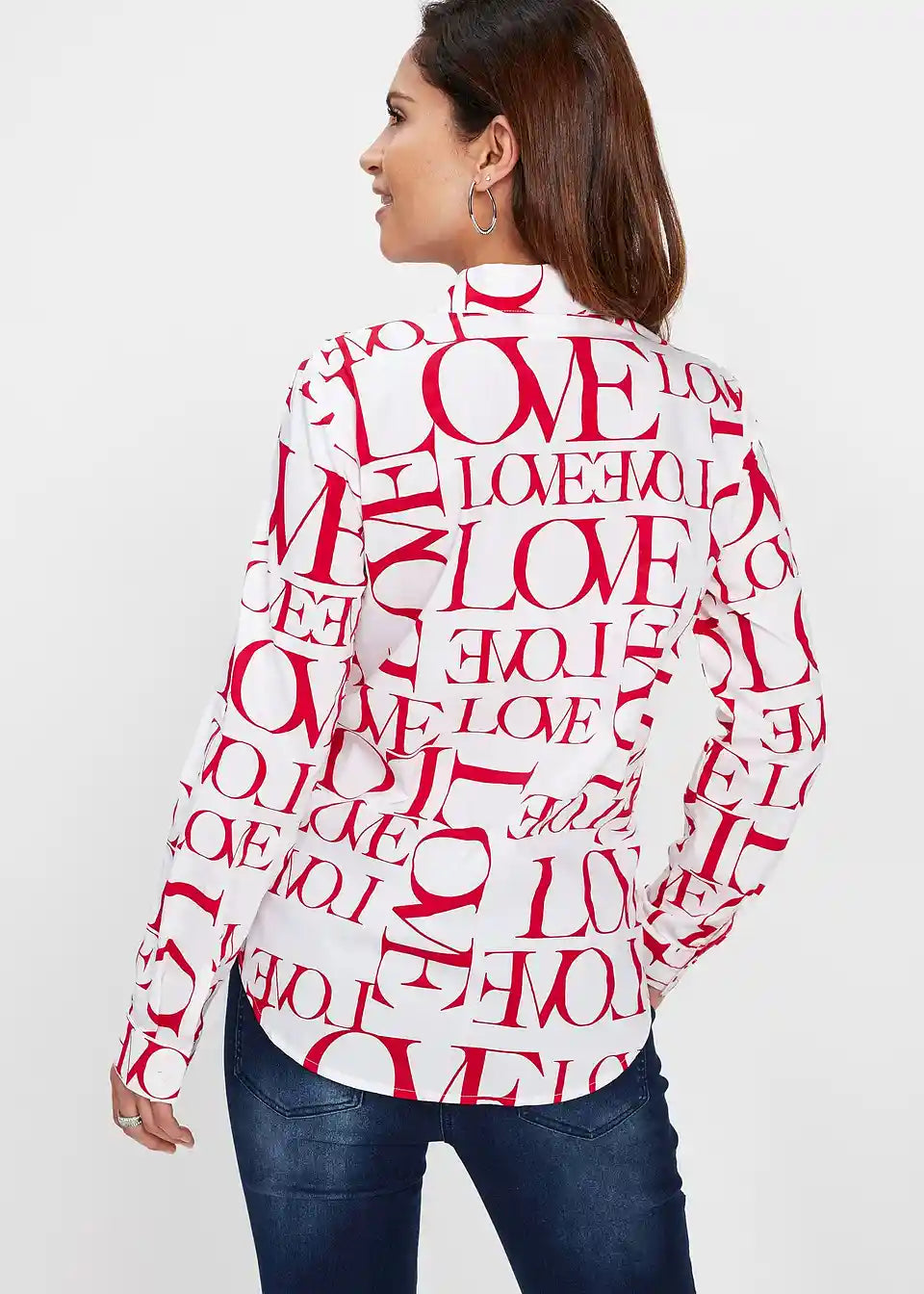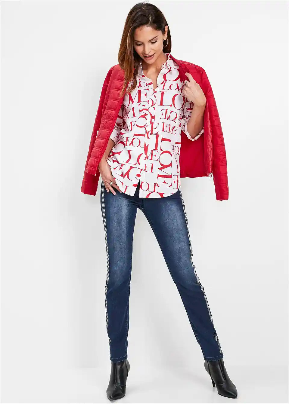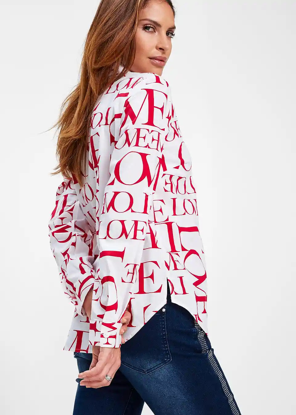 Ova šarmantna bluza s dekorativnim Love ispisom laska figuri zahvaljujući svom kroju. U kombinaciji s klasičnim njegovanim trapericama iz bpc Selection kolekcije i modernim cipelama na petu, bluza pruža moderan izgled.