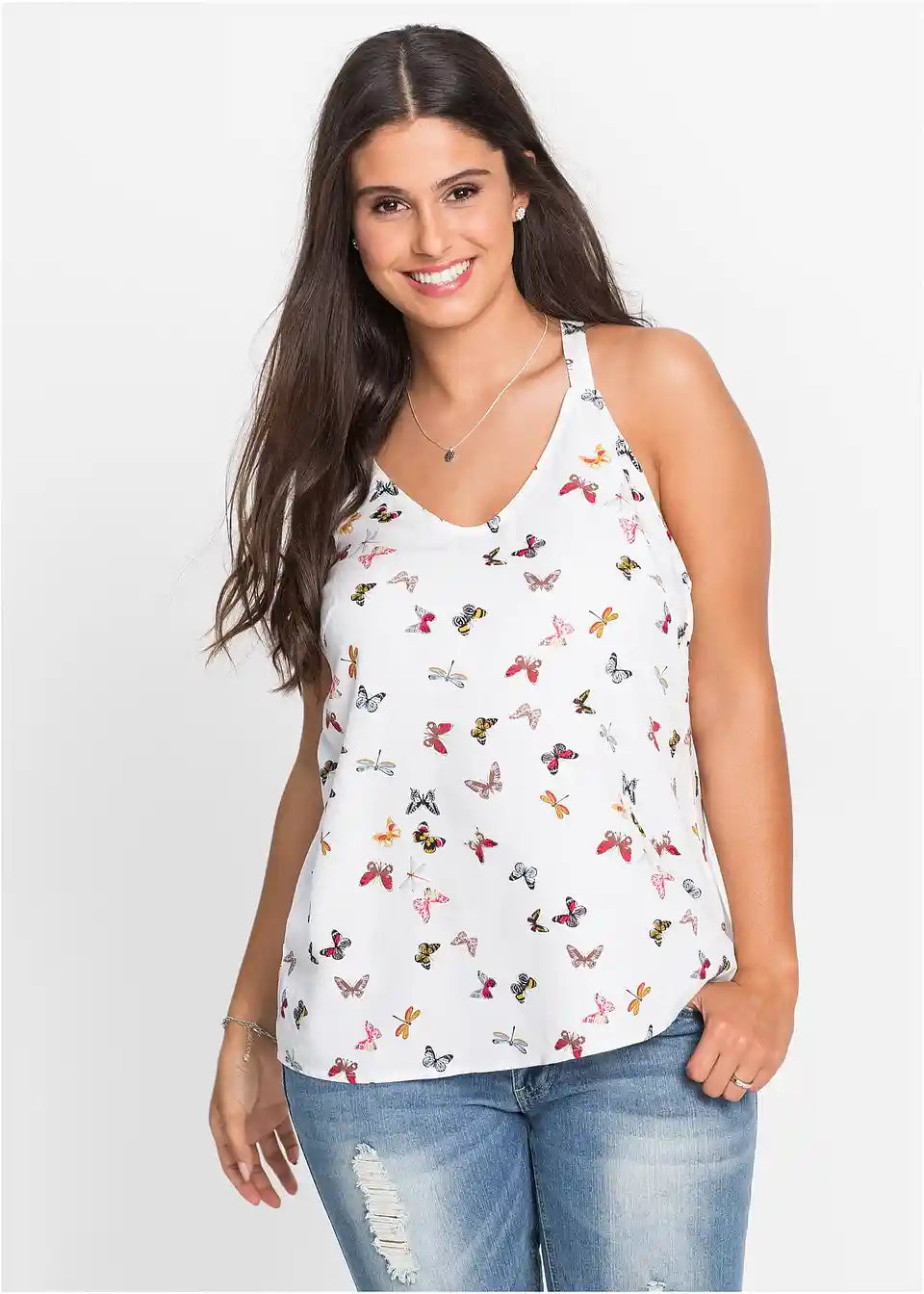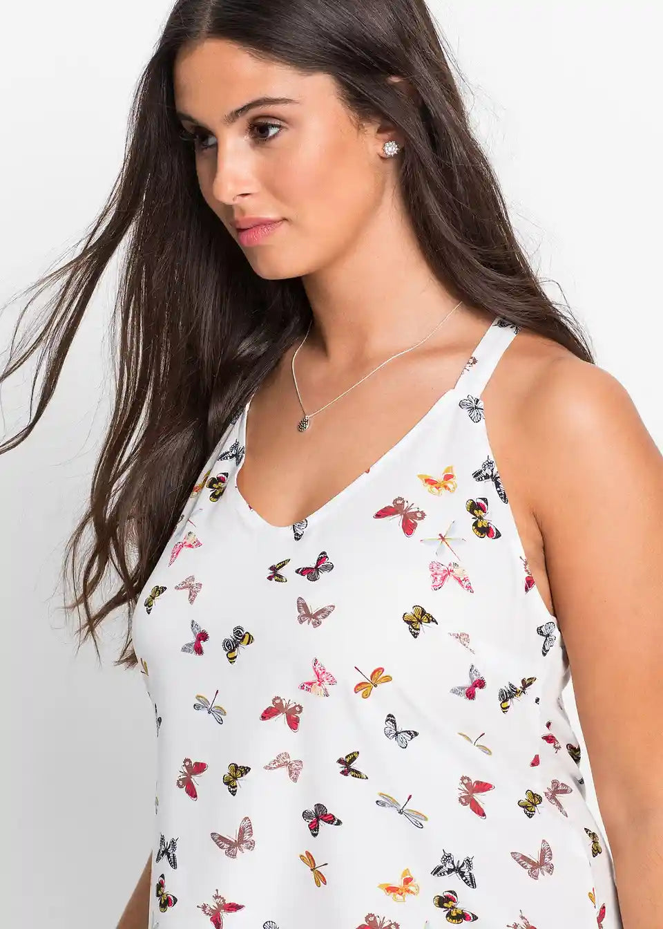 Ženska bluza u proširenom kroju, s diskretnim V-izrezom. Duljina u veličini 38 cca 53 cm.