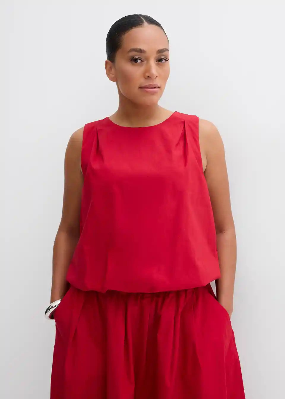 Lagana bluza bez rukava s okruglim izrezom i balon-rubom od čiste pamuka