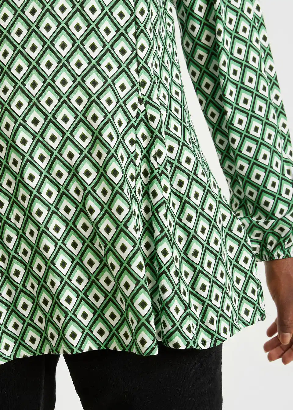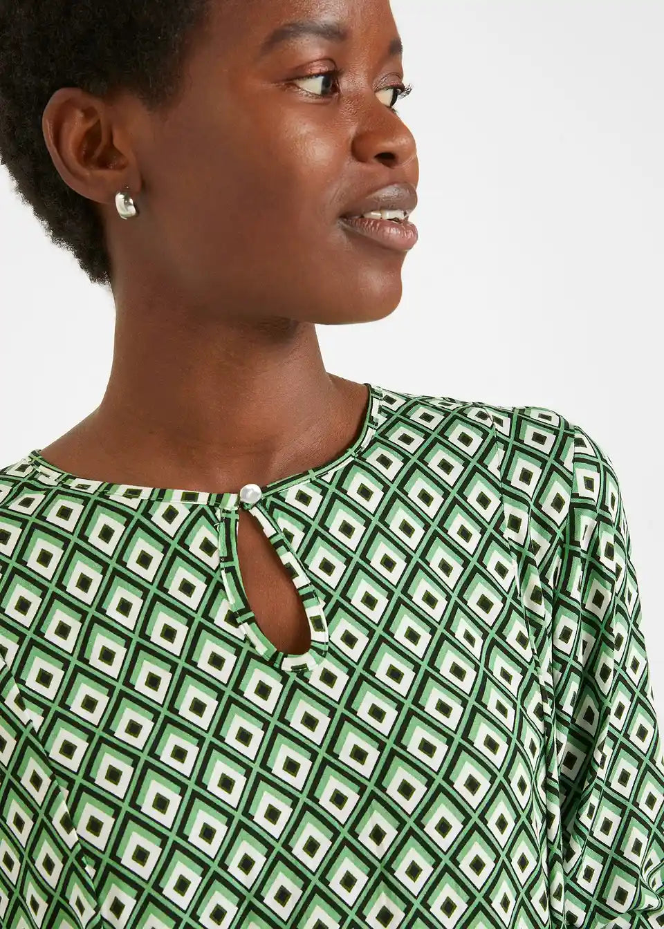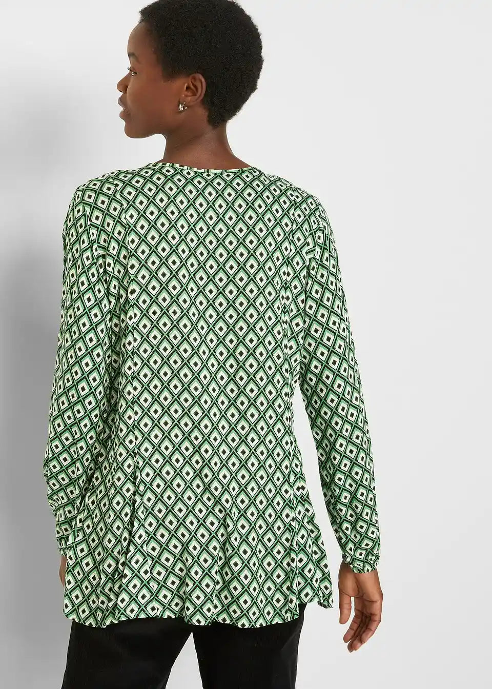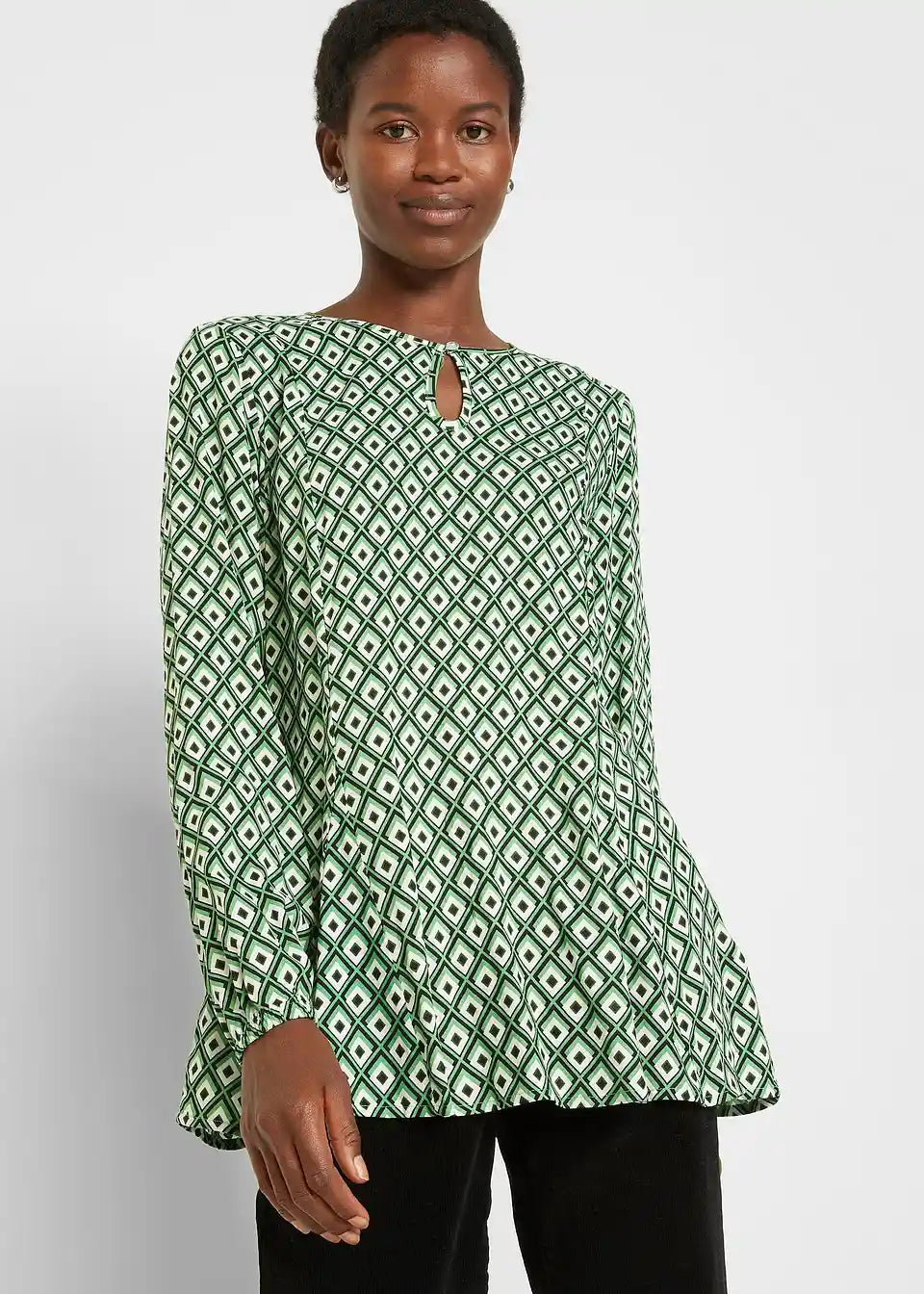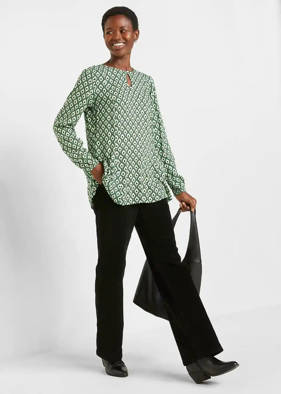 Dobro kombinirajuća bluza s dugim rukavima i diskretnim detaljem na izrezu, napravljena od održive viskoze