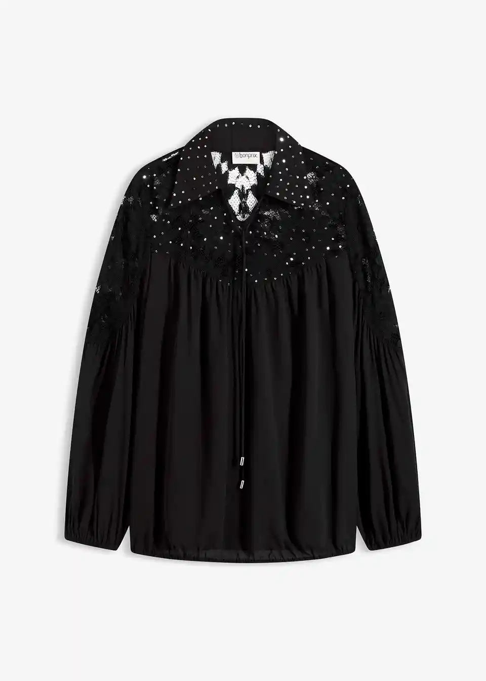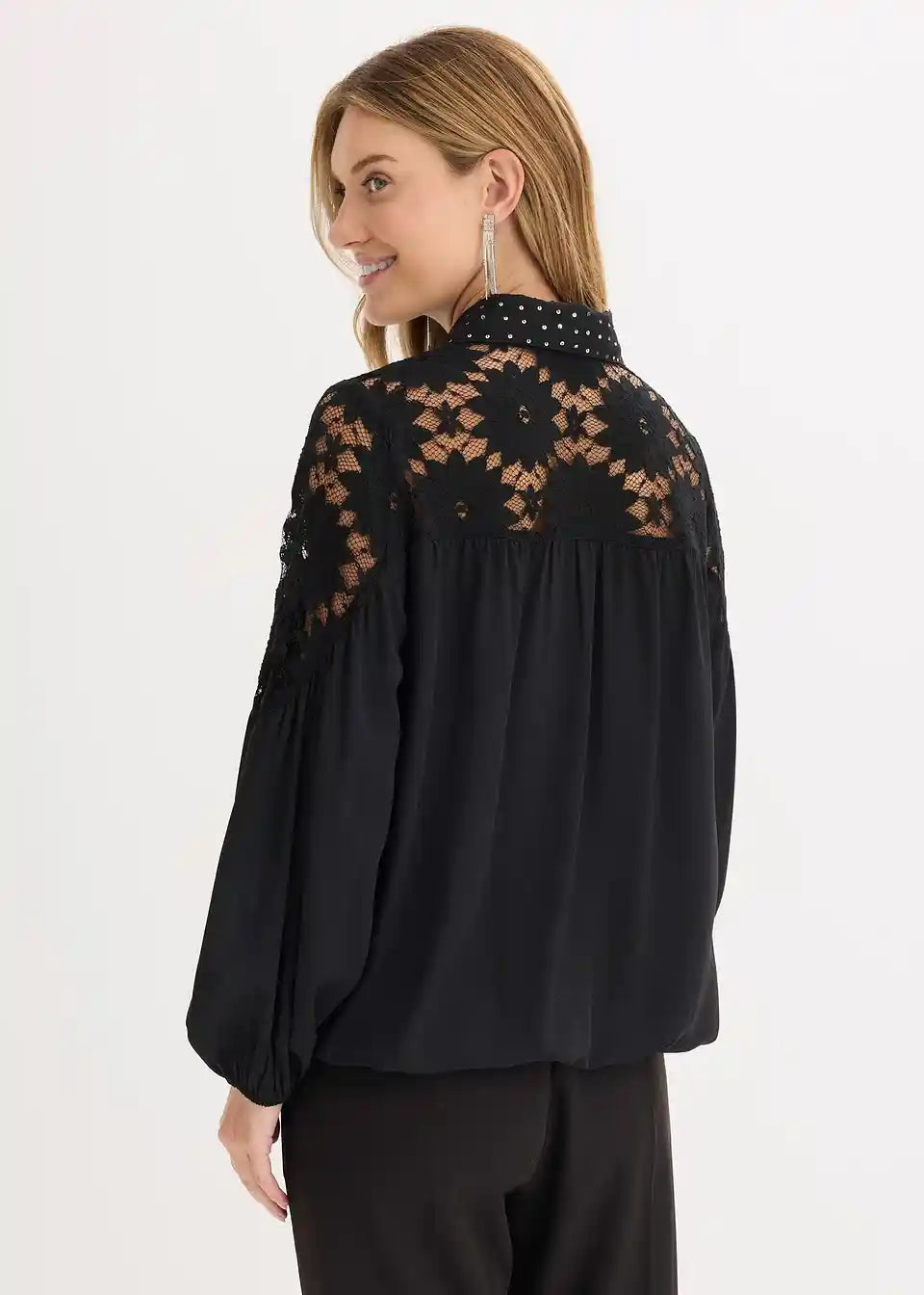 Razigrana i moderna: bluza s čipkastim umecima i vezicama na ovratniku