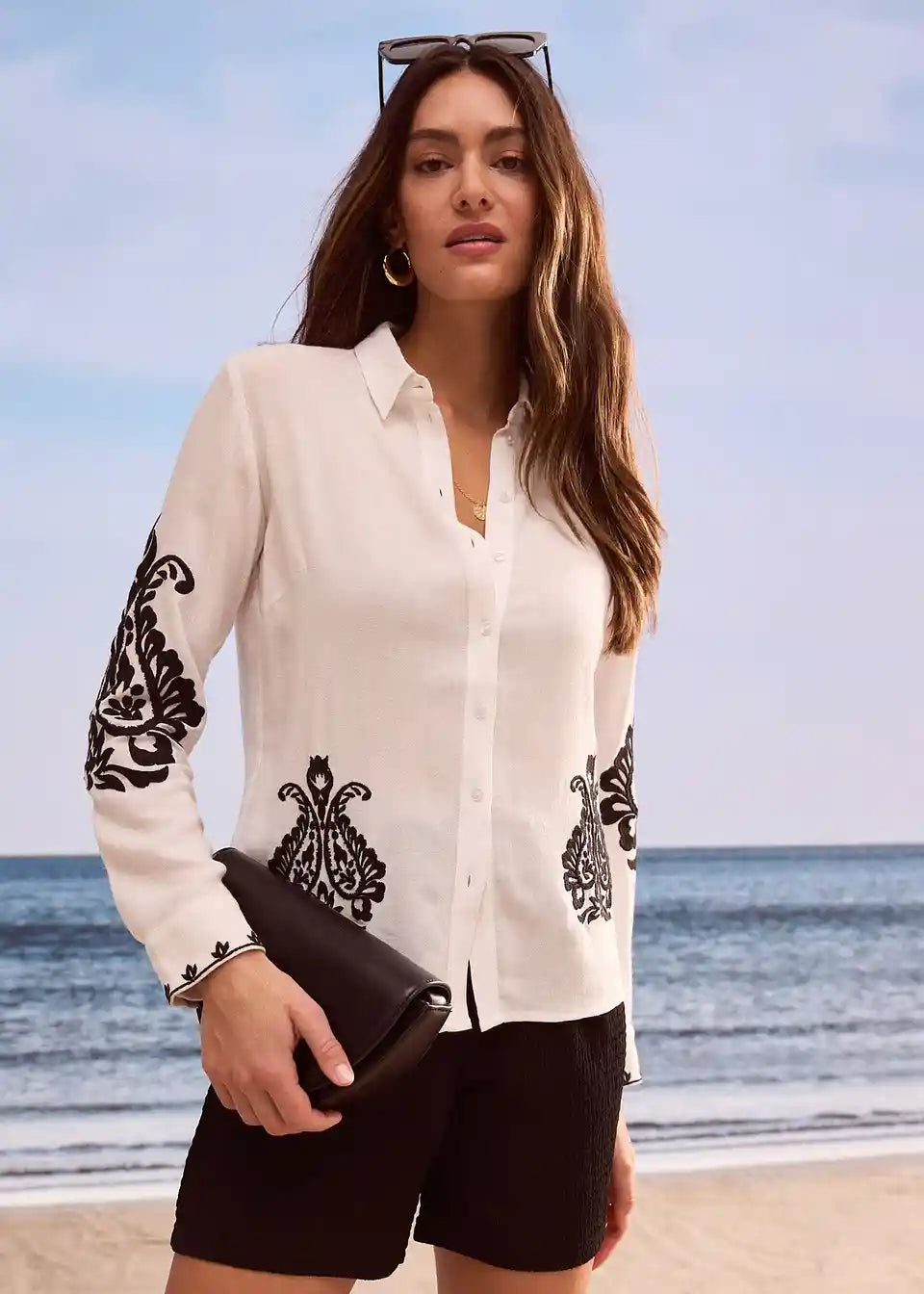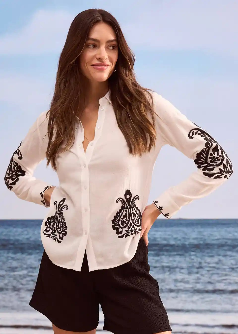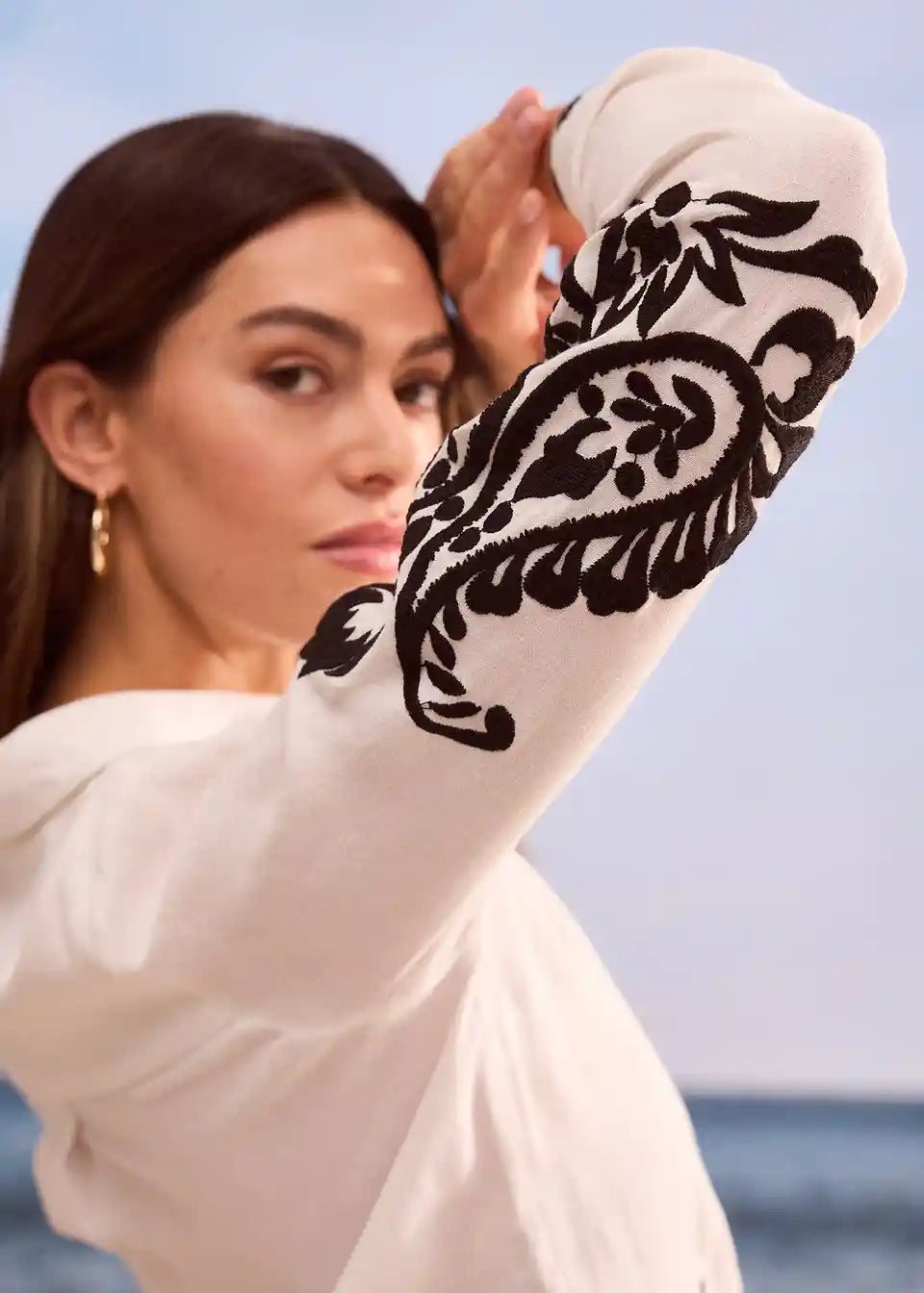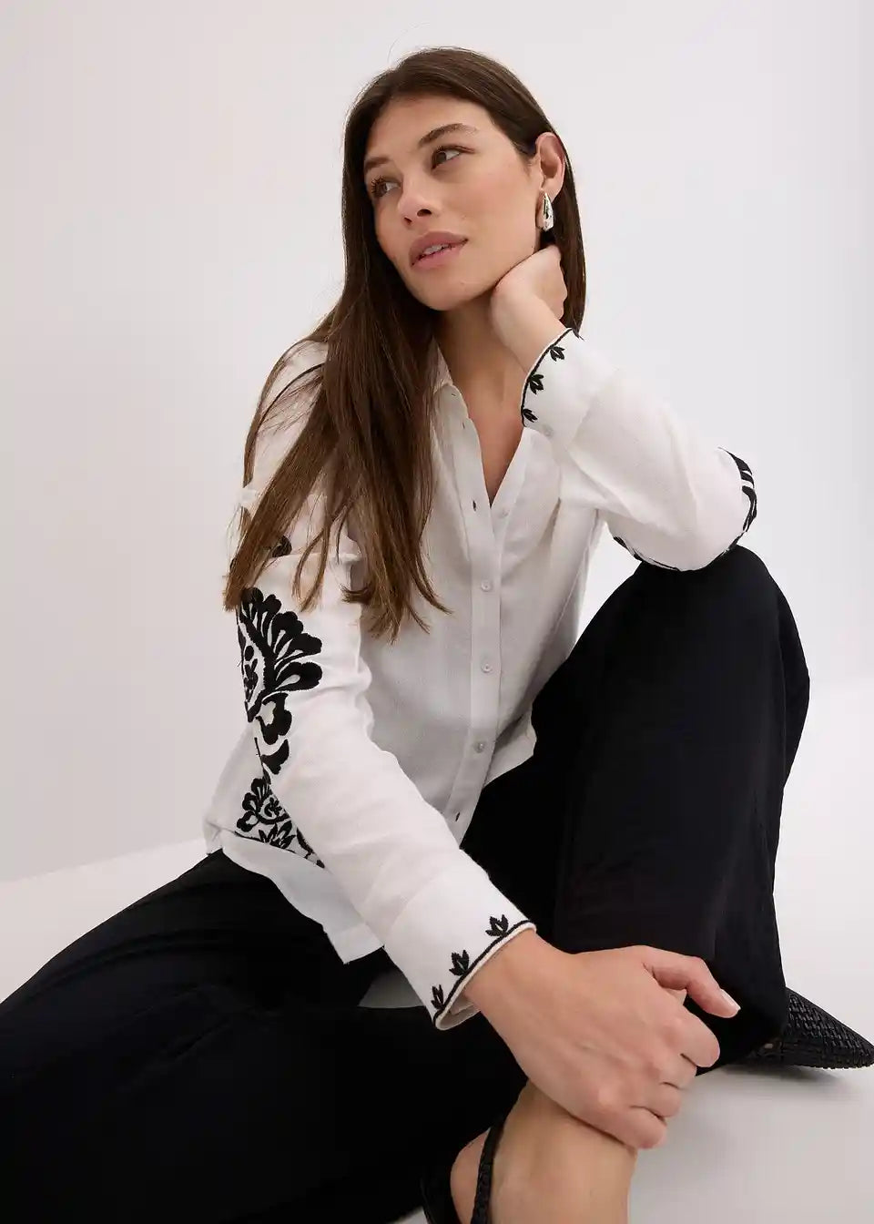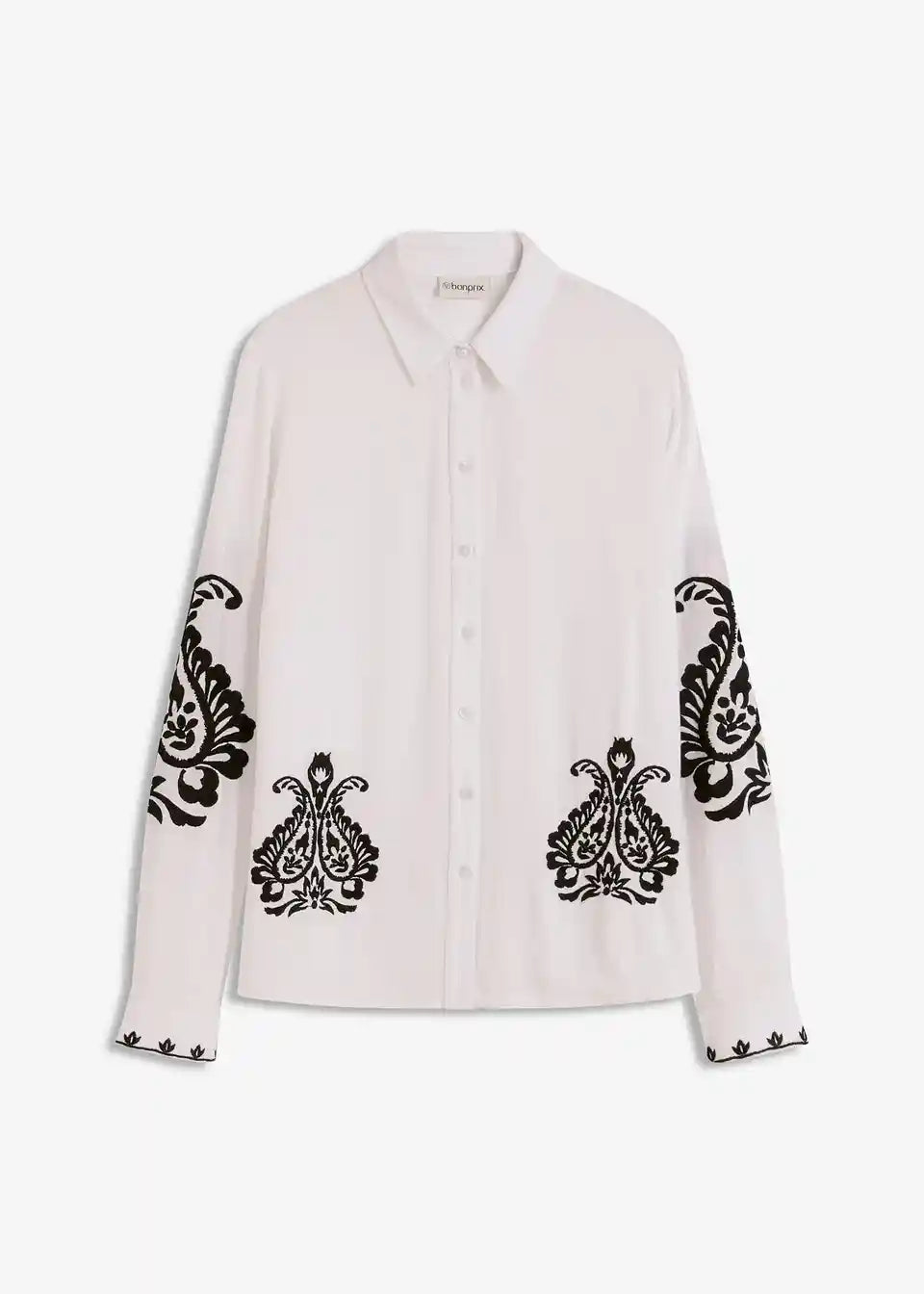 moderna bluza od meke mješavine viskoze s dekorativnim vezom u kontrastnoj boji