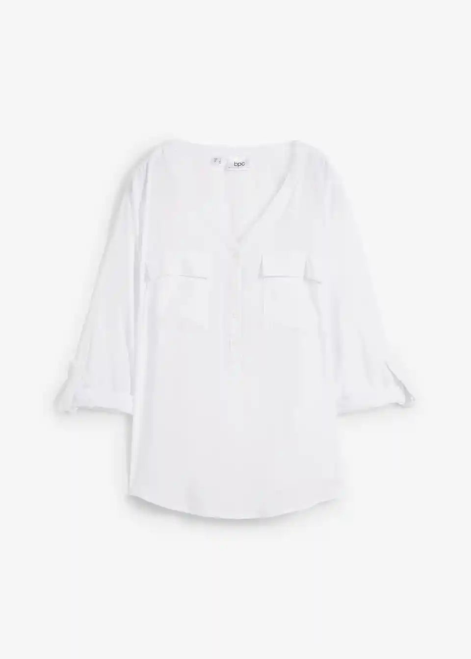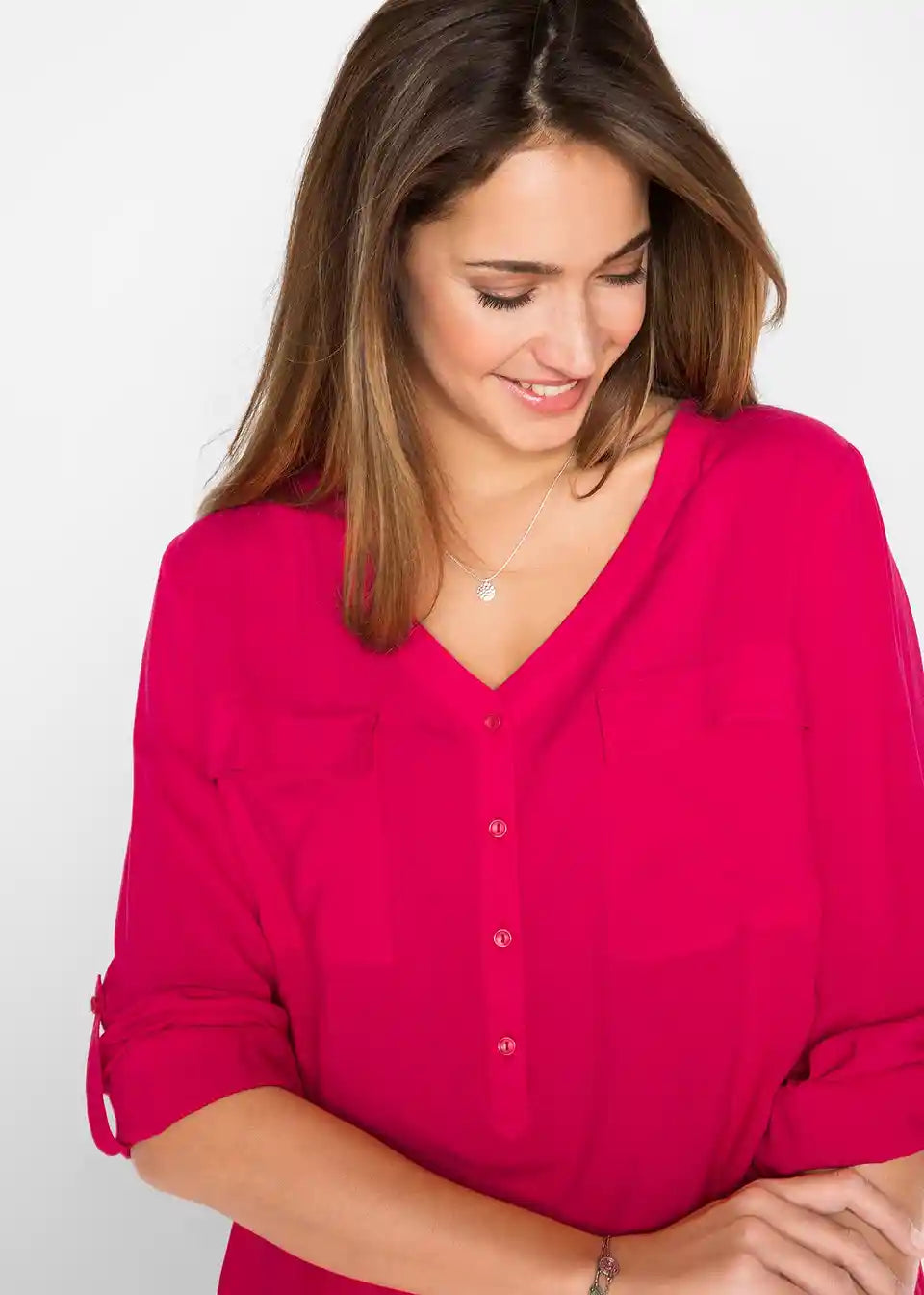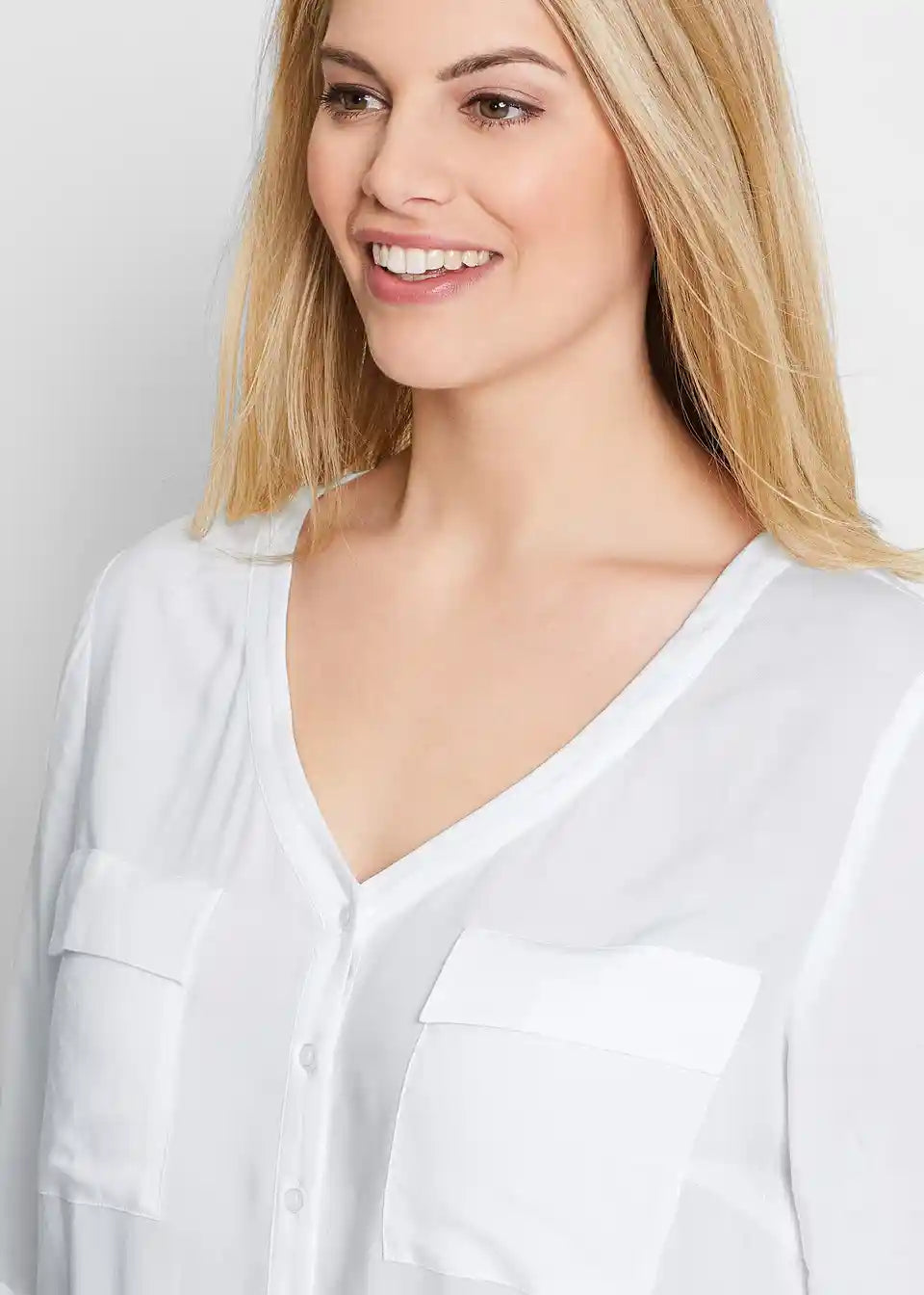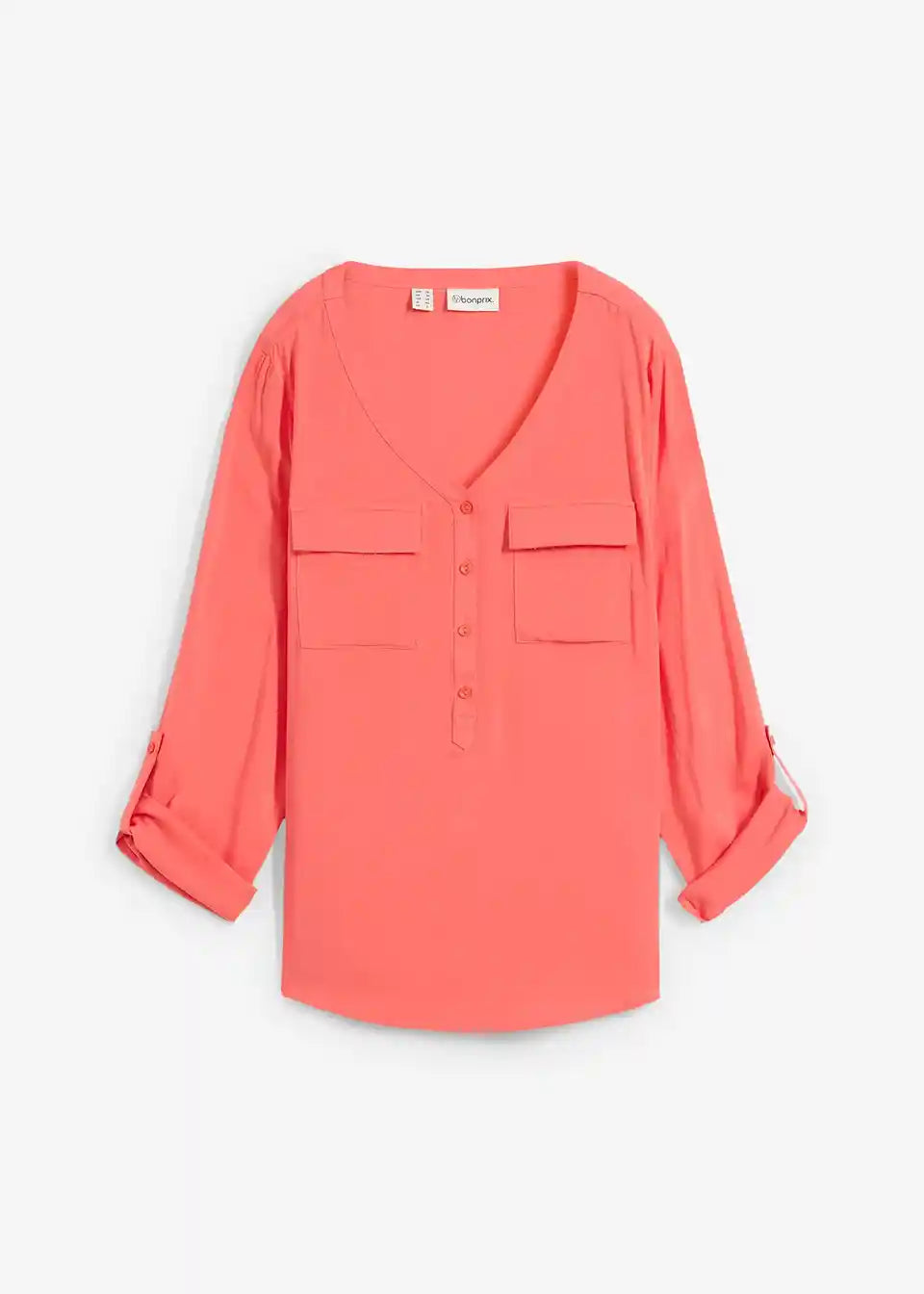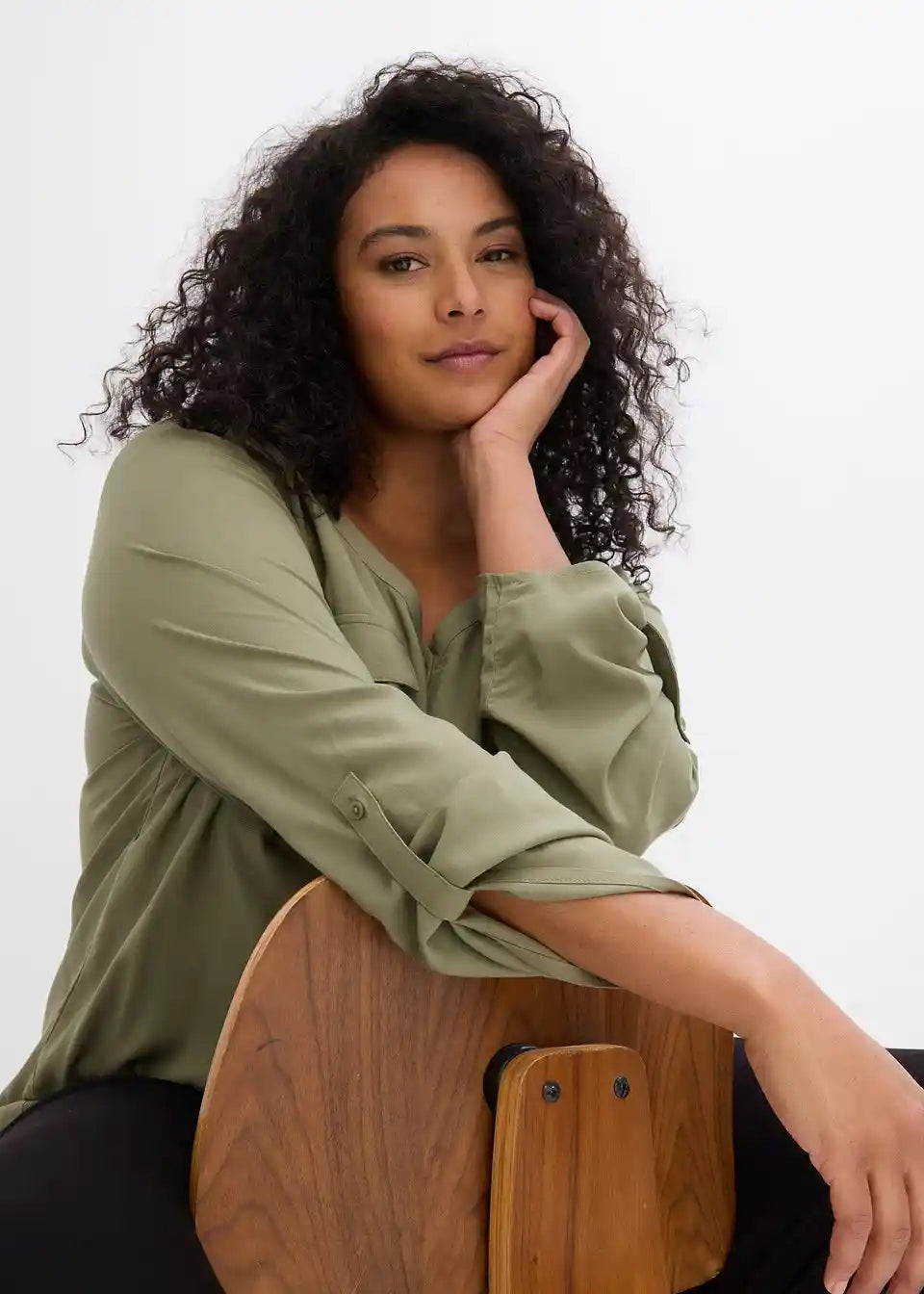 Maskirna bluza s dugim rukavima od viskoze. Rukavi se mogu zavrnuti i pričvrstiti trakom s gumbom.