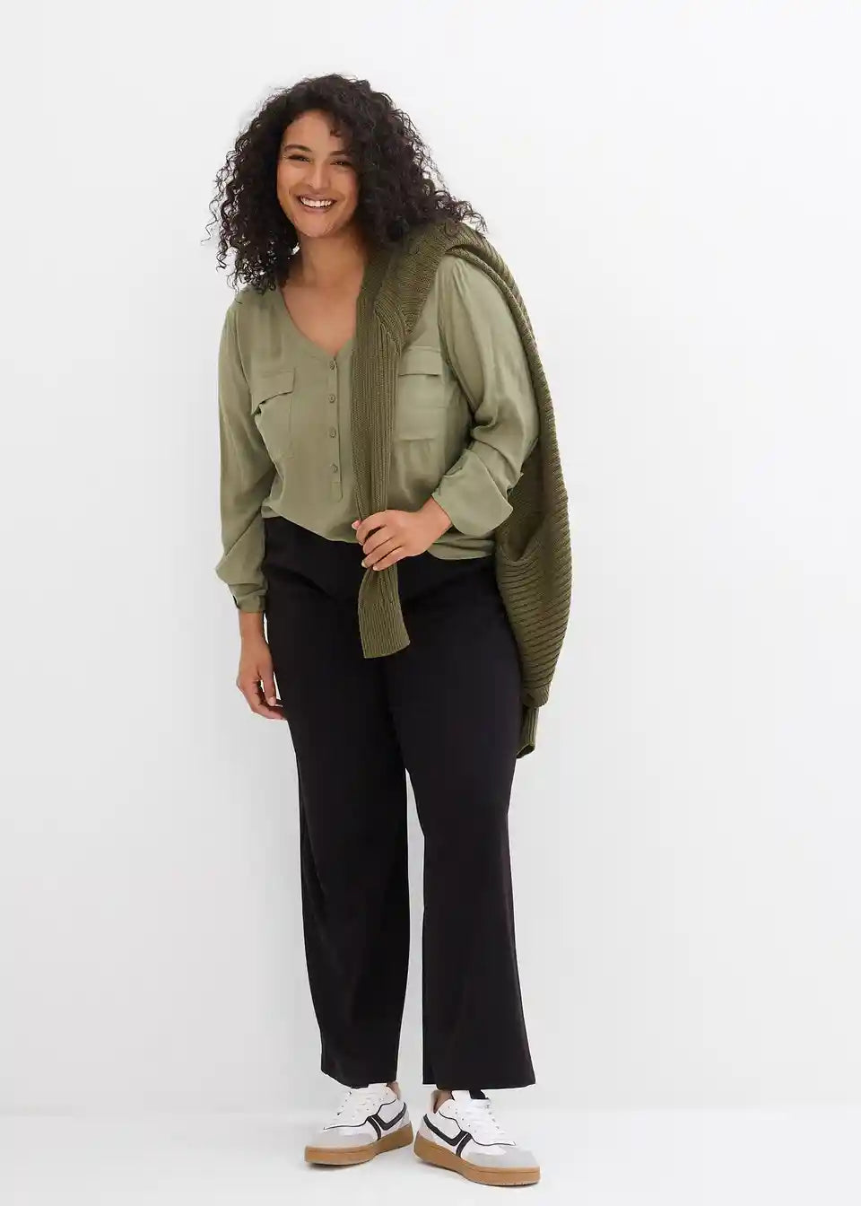 Bluza s dugim rukavima i V izrezom od padajuće viskoze