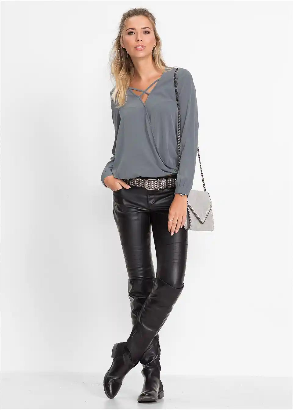 Dugorukavna bluza s omotanim izgledom i ležernim krojem