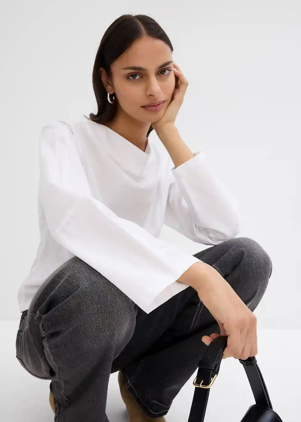 Popelin bluza s vodopad izrezom