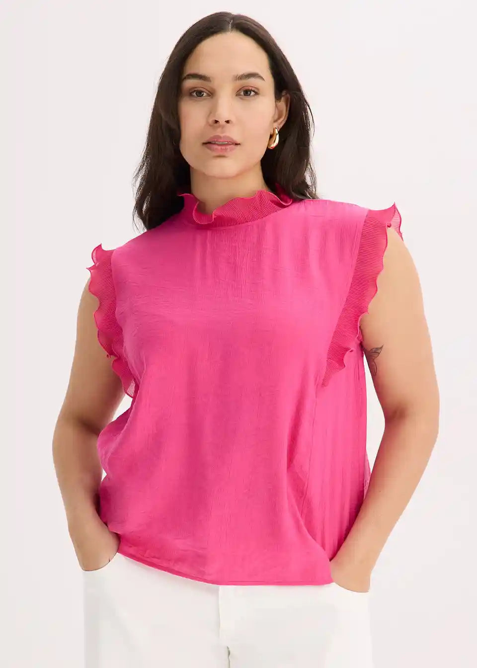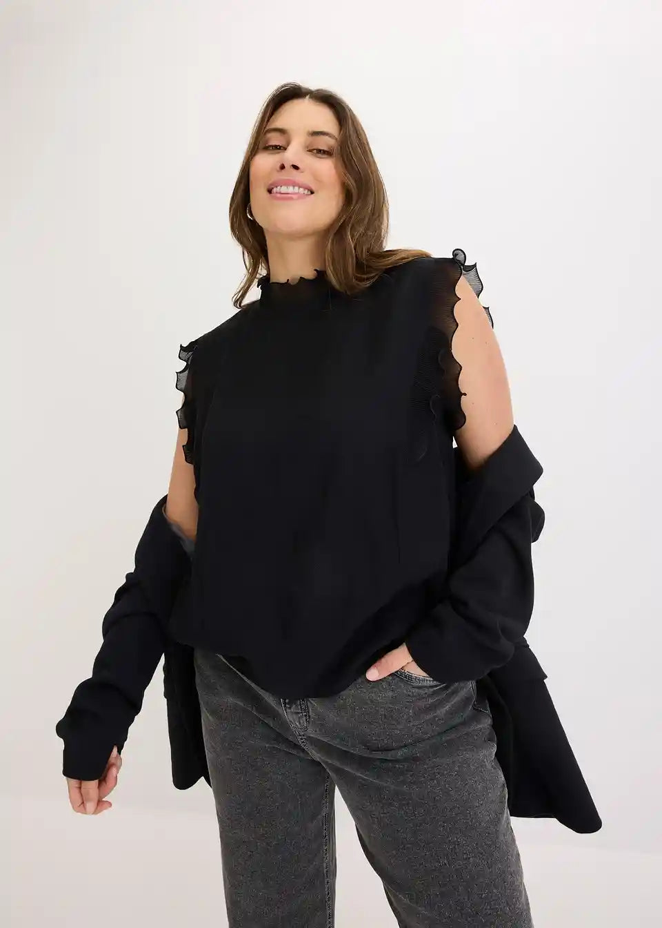 moderna bluza s plisiranim volanima na izrezu i rukama
