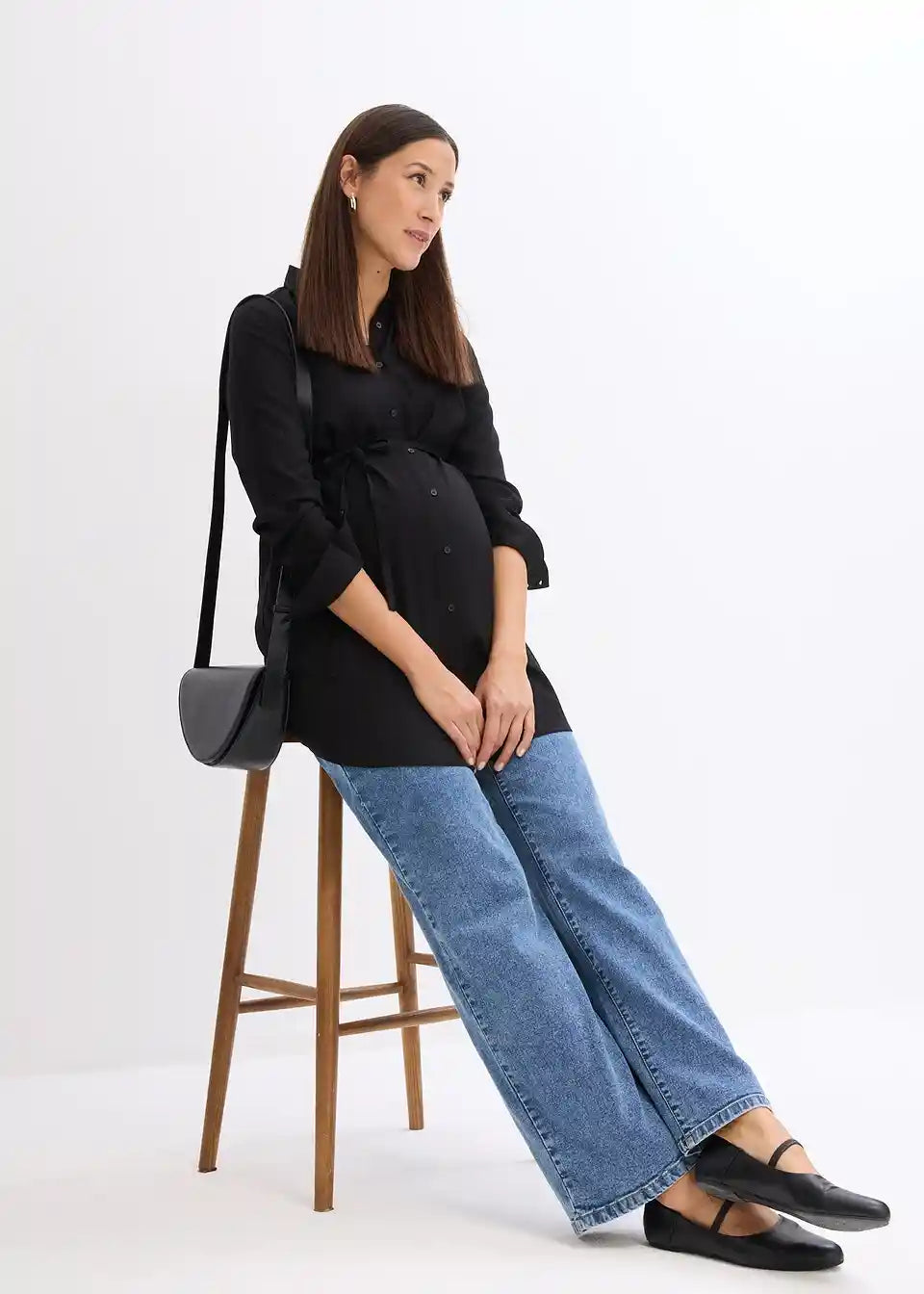 Bluza dugih rukava koja prekriva bokove, s dugmadima i trakom za vezanje