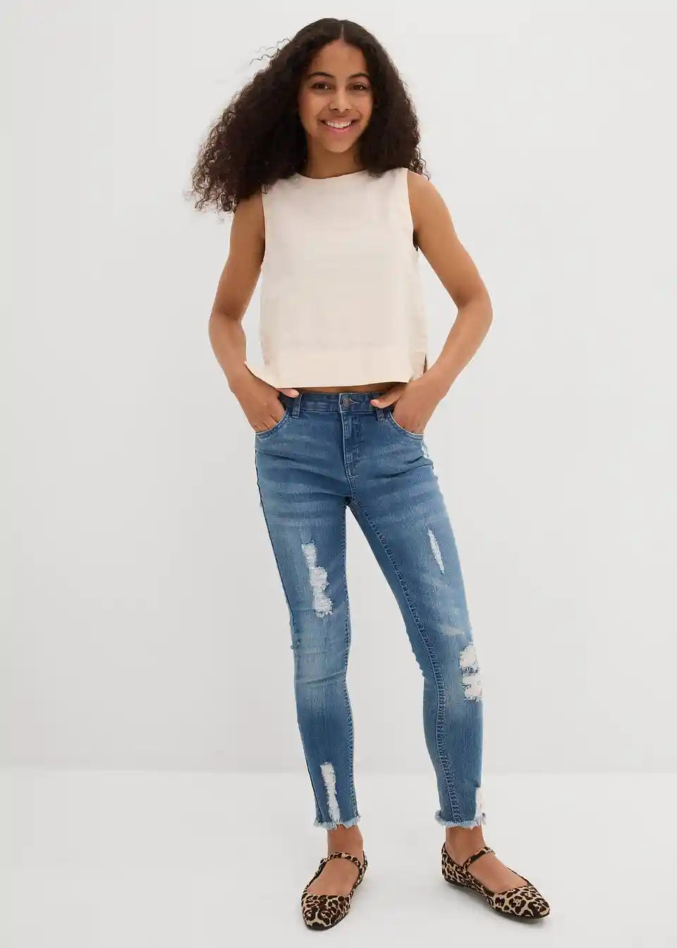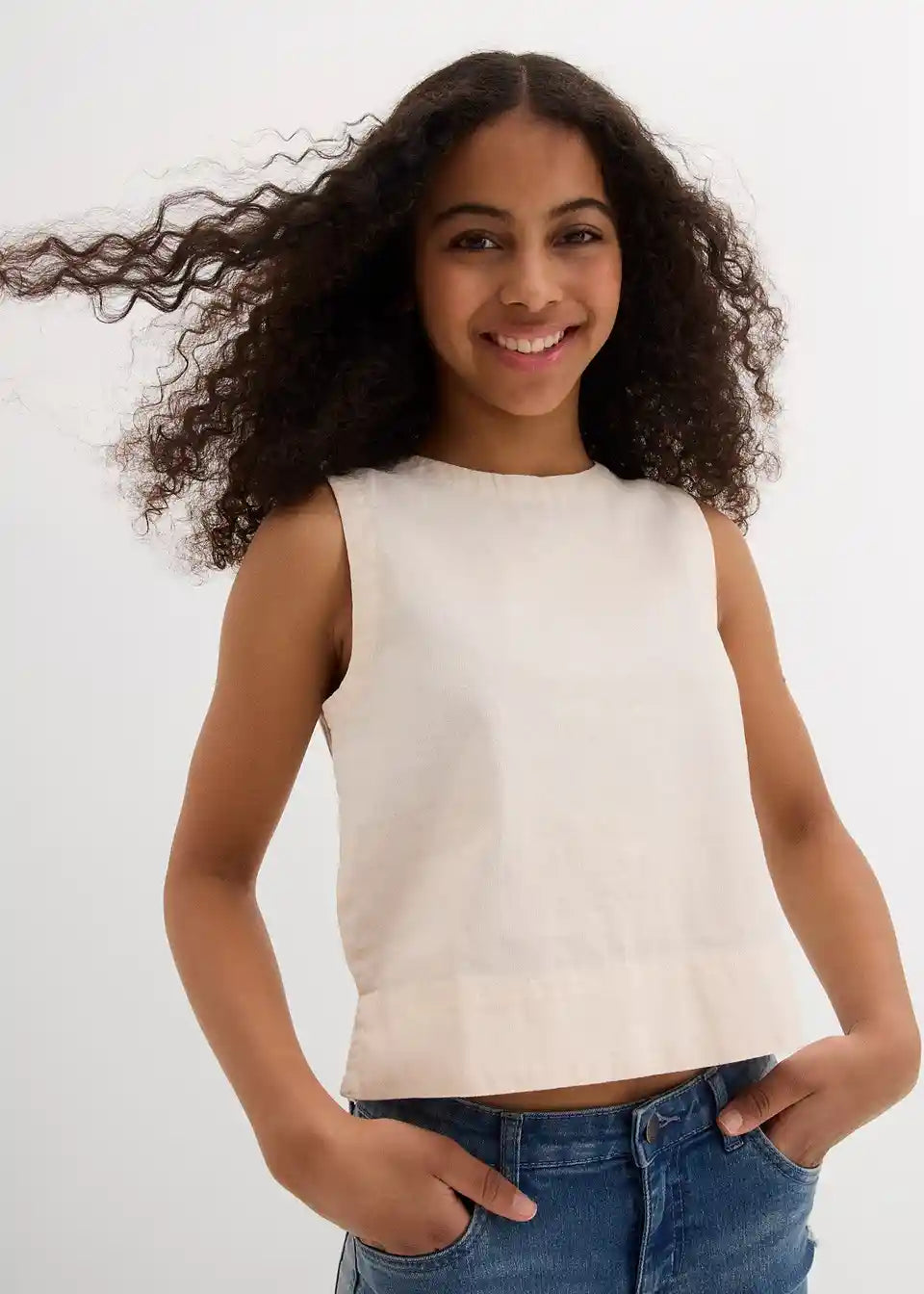 Jednostavan bluzasti top za djevojčice od prozračne mješavine lana