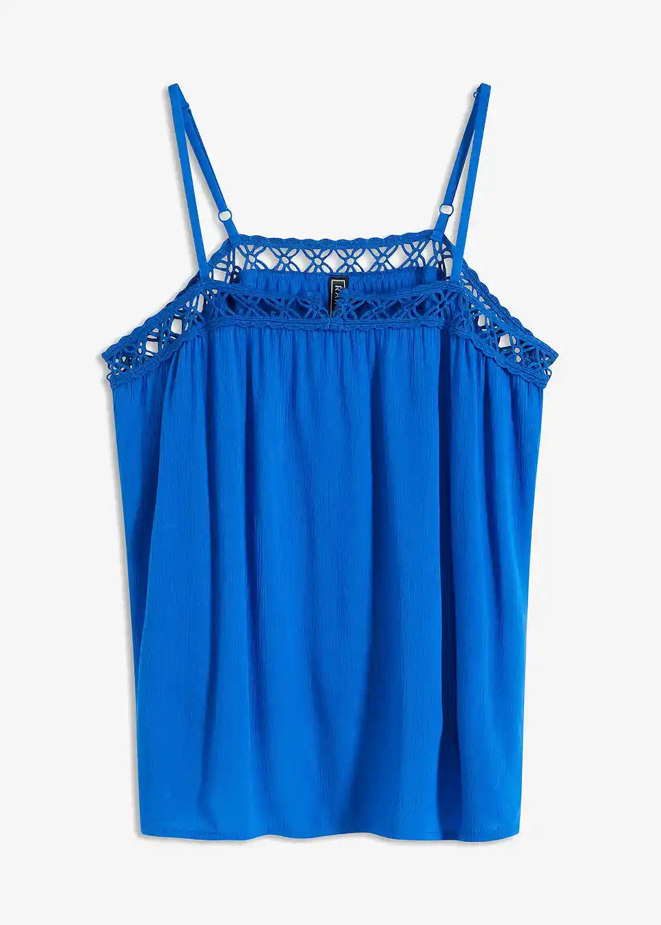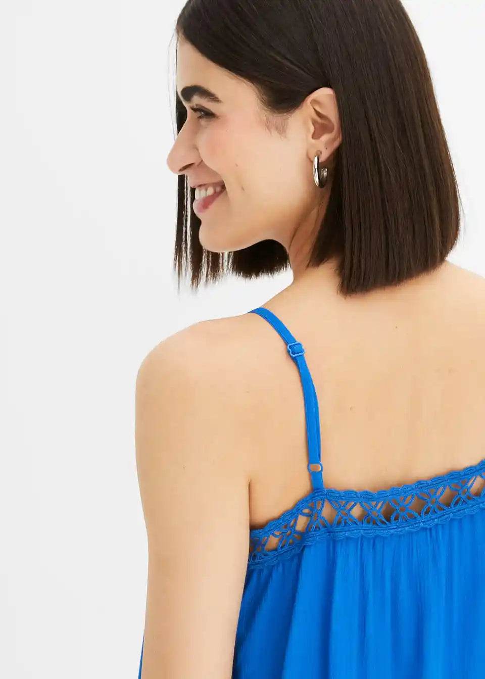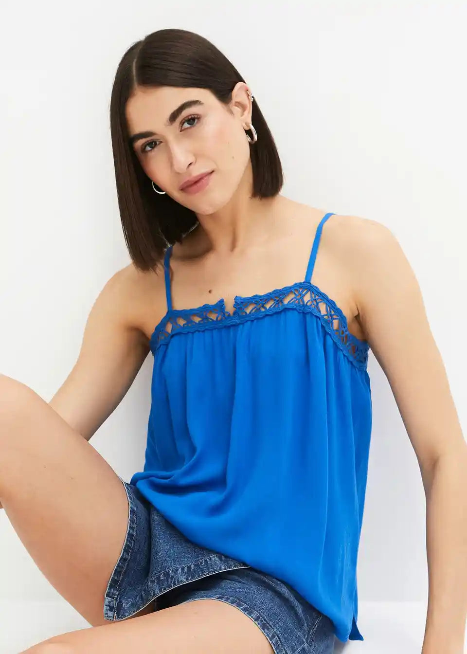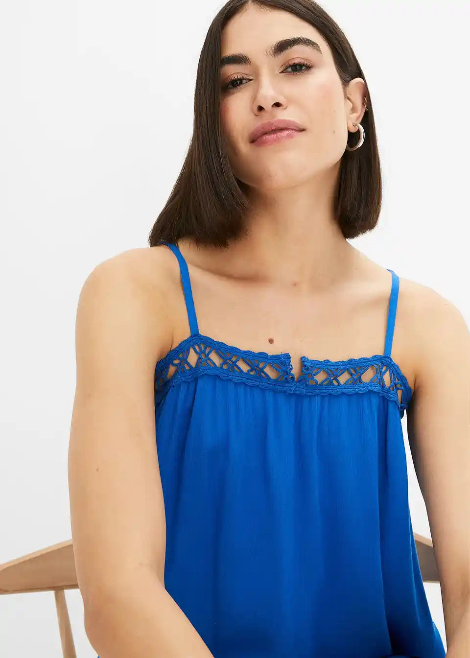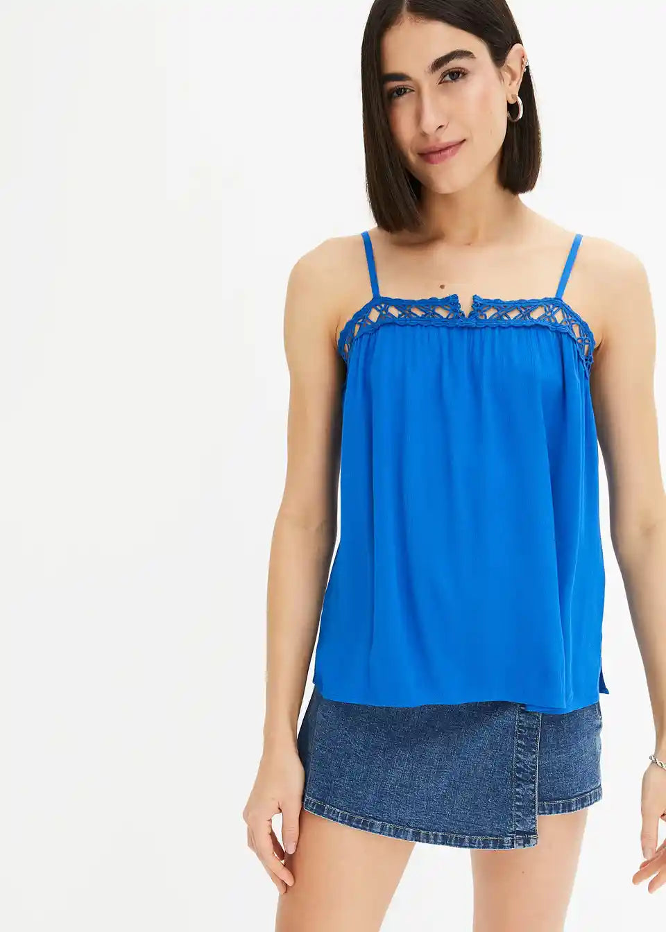 Razigrani bluzasti top s čipkom na izrezu i podesivim naramenicama
