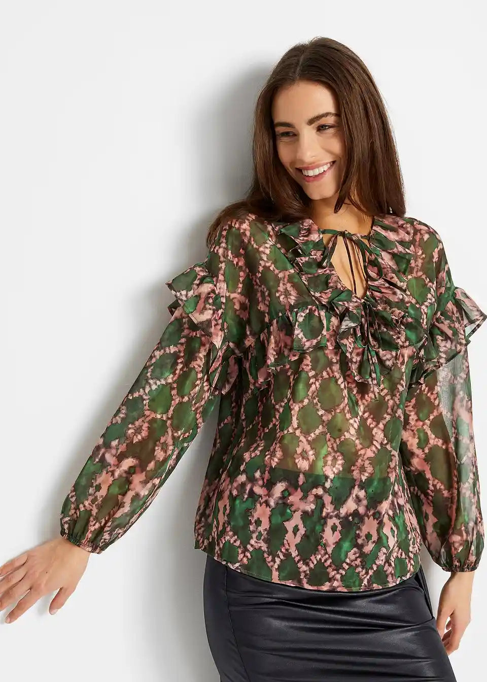 Čarobna bluzica na navlačenje u prozirnoj kvaliteti s prekrasnim volanima.