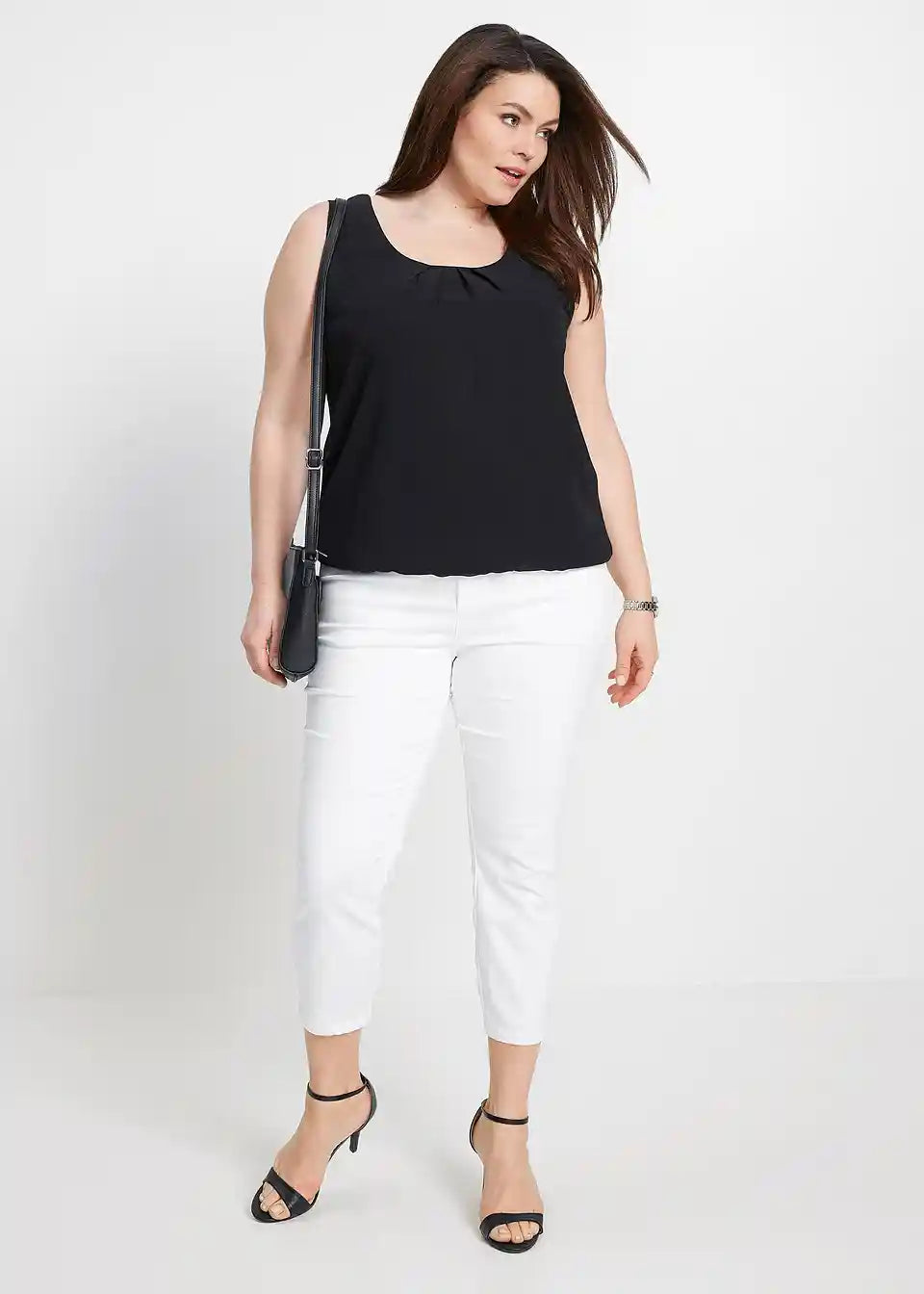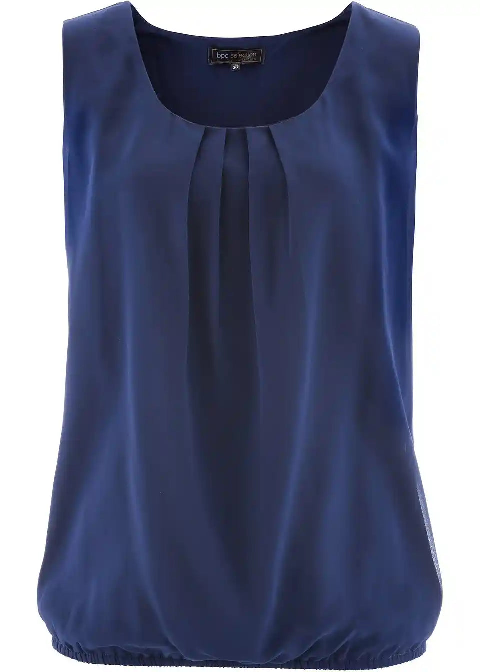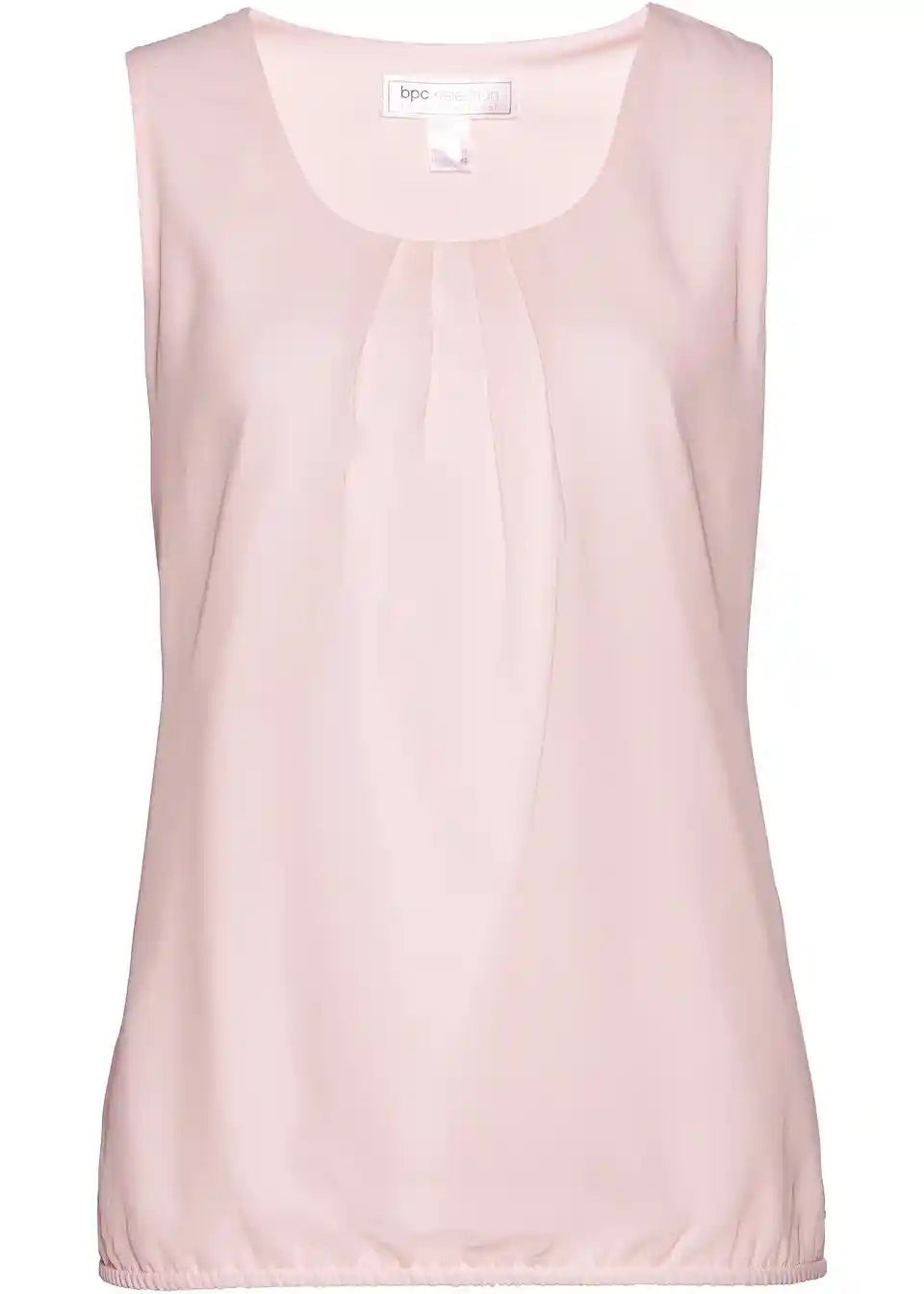 Lagani nabori na dekolteu, elastični porub na rubu, bez rukava, dužina oko 65 cm (veličina 36) do oko 74 cm (veličina 54), perivo u perilici rublja,