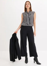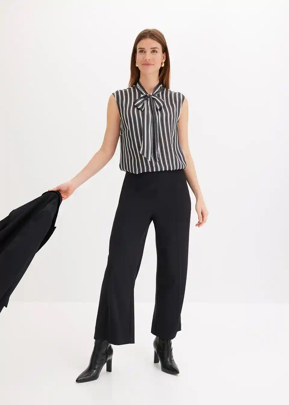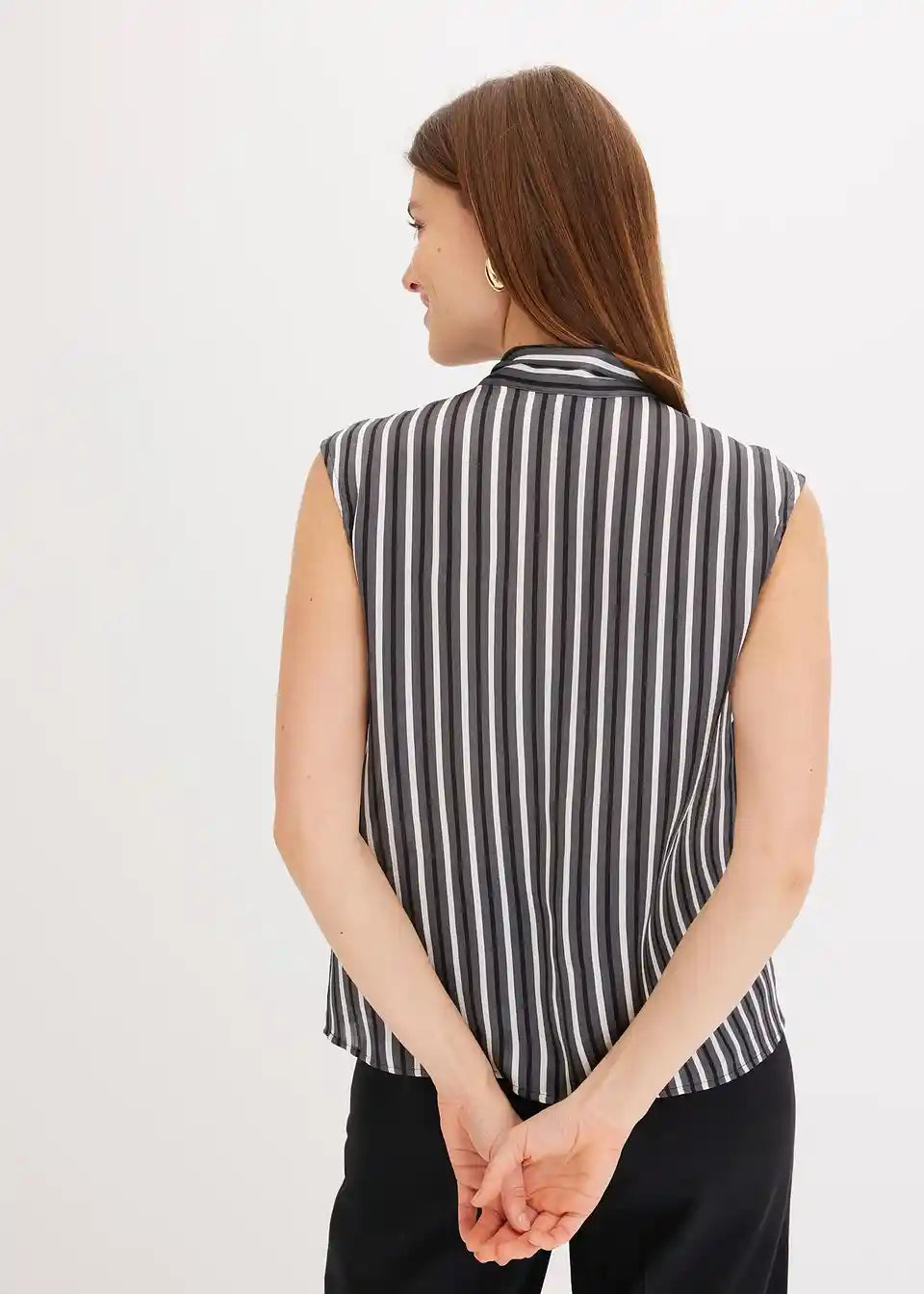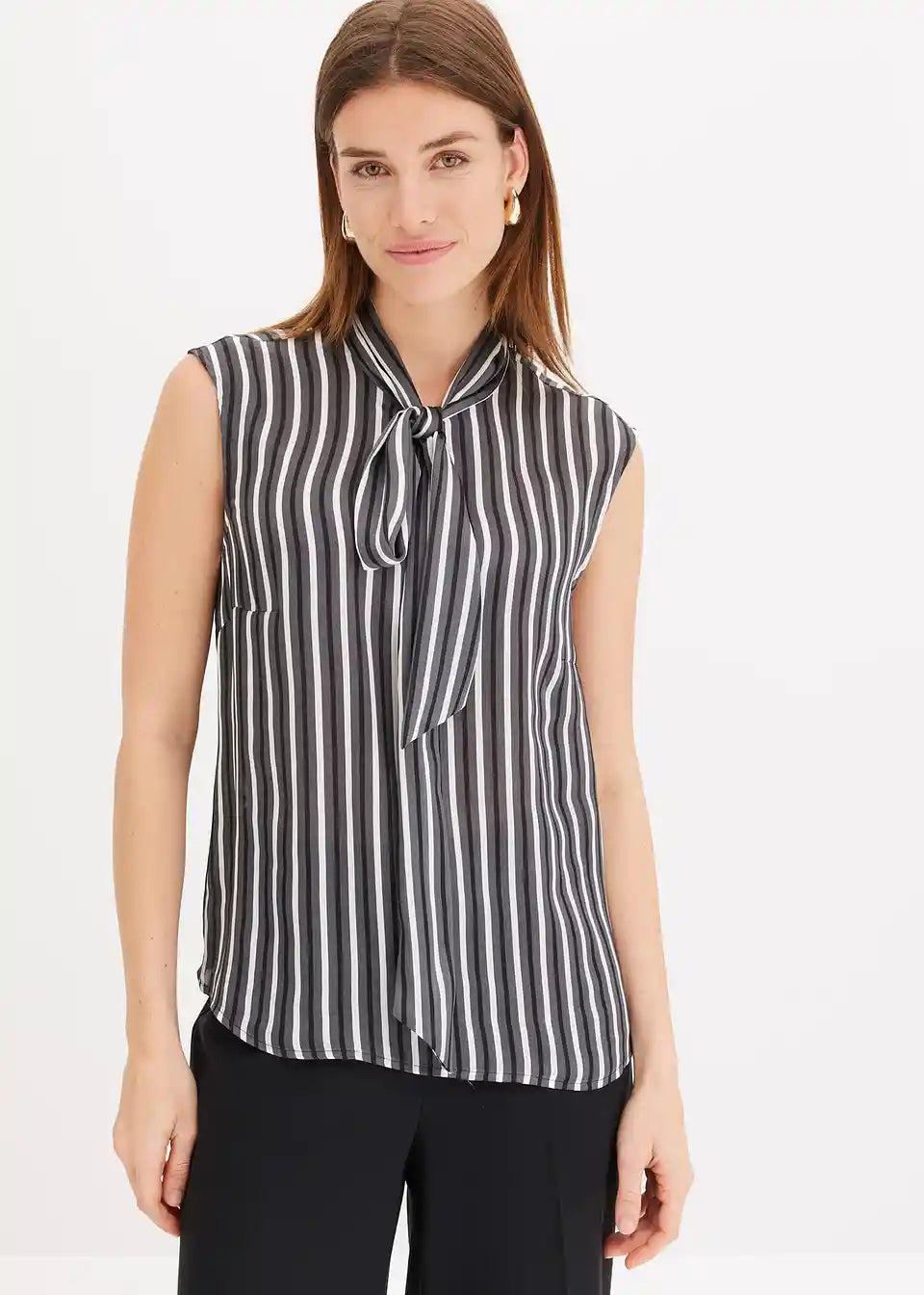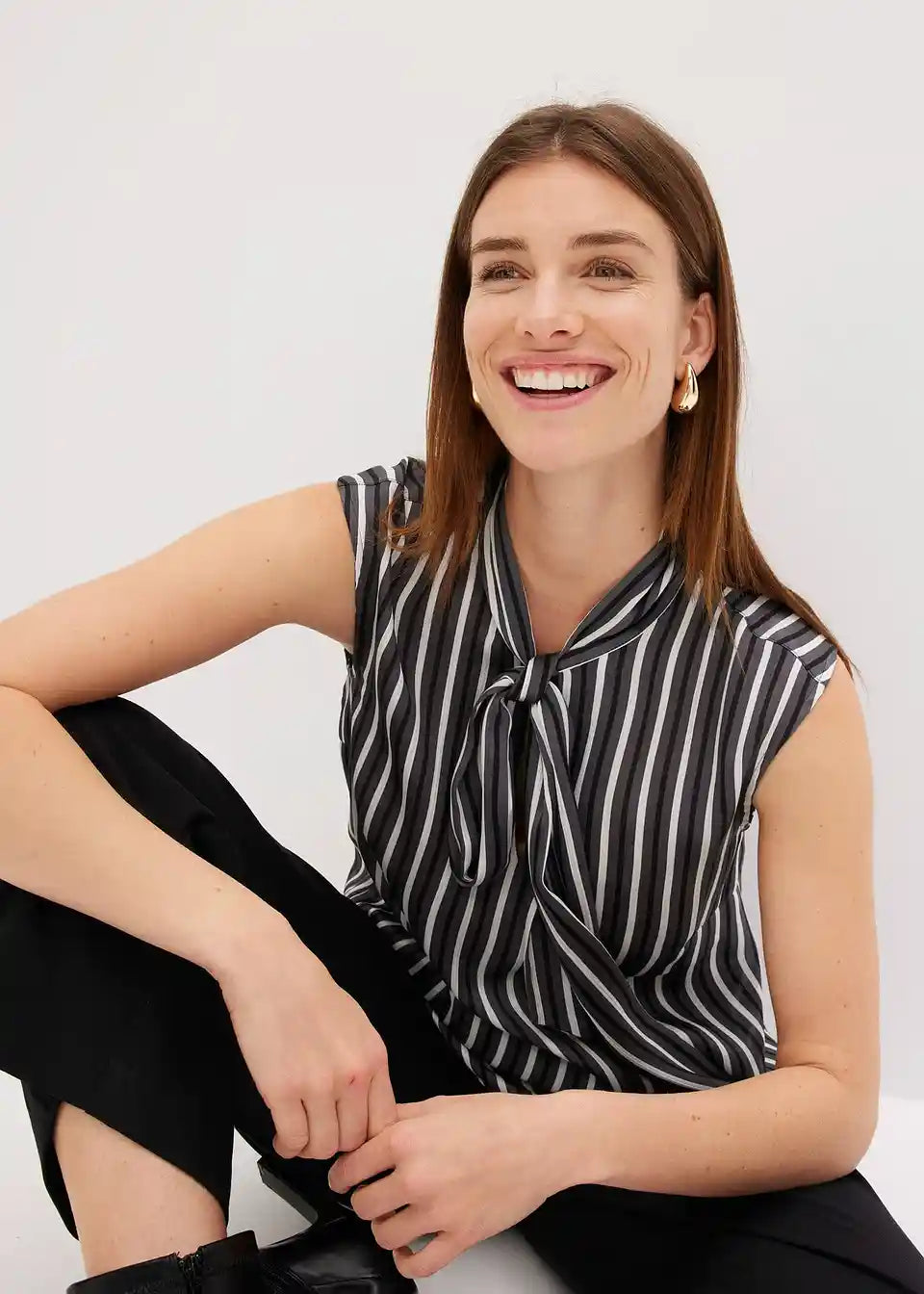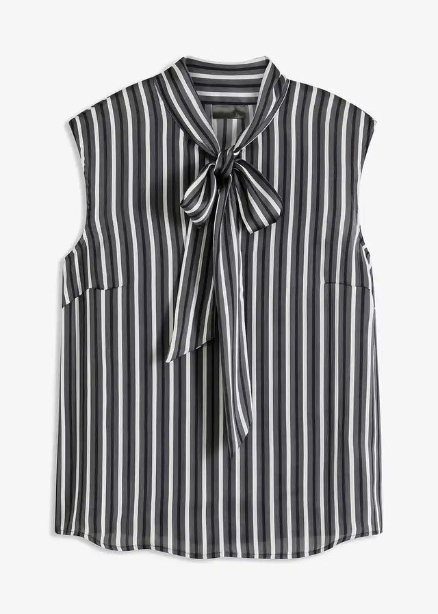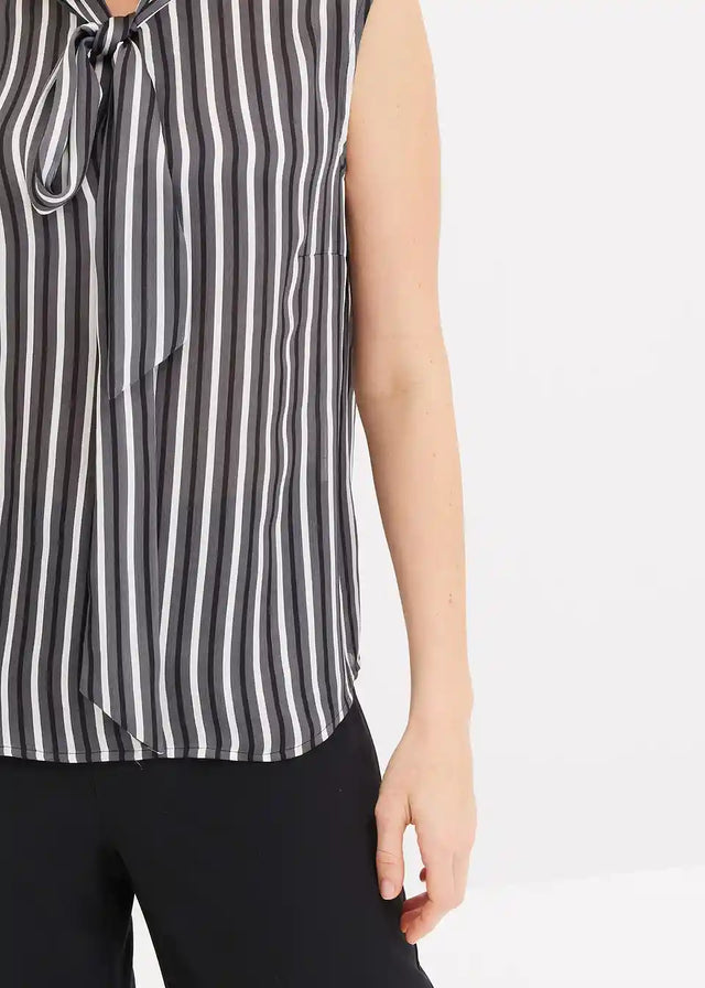 Bluzni top s kragnom na vezanje i modernim prugastim uzorkom