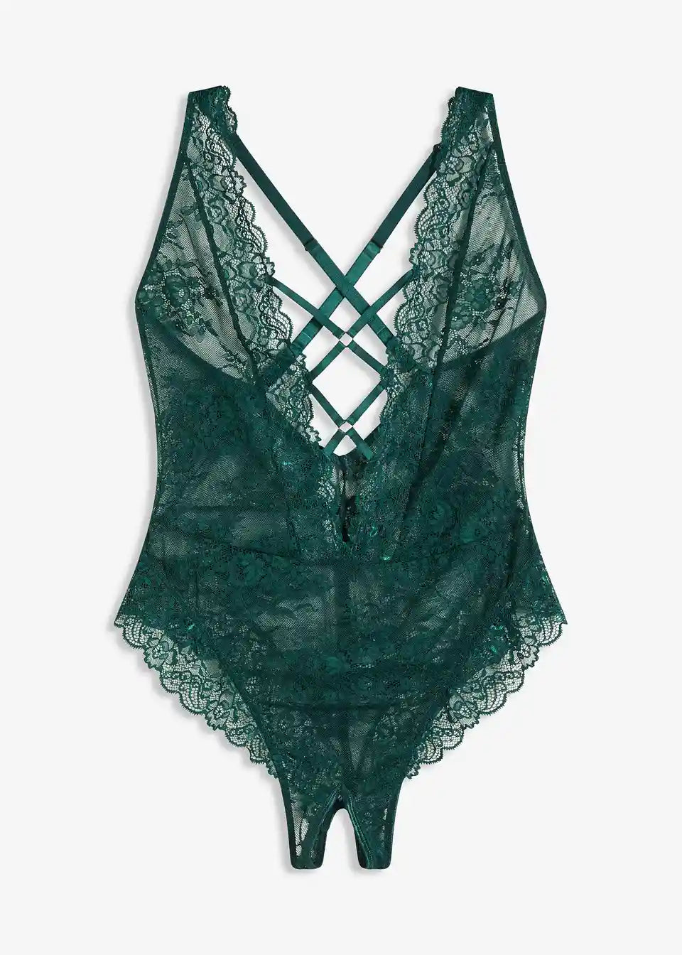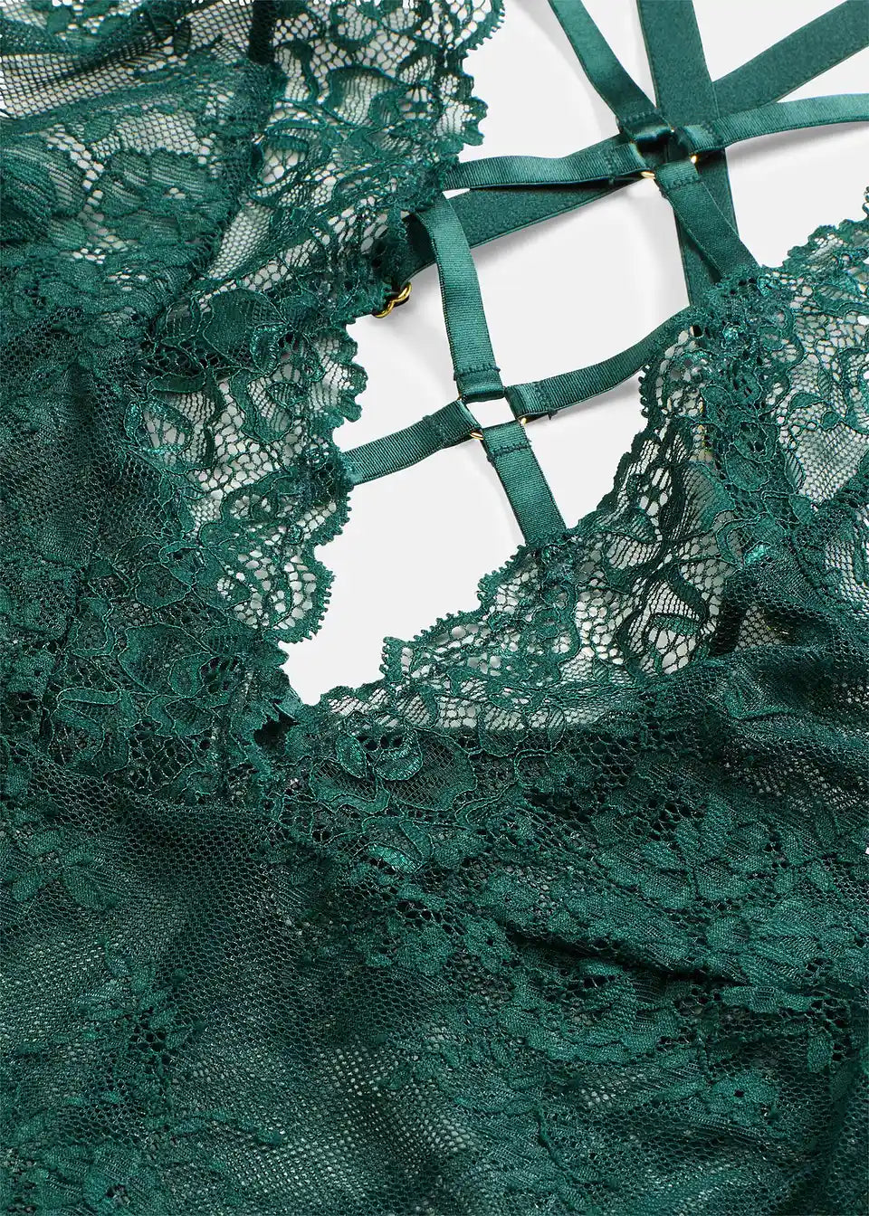 Ouvert body od fine čipke s ukrasnim prstenovima.