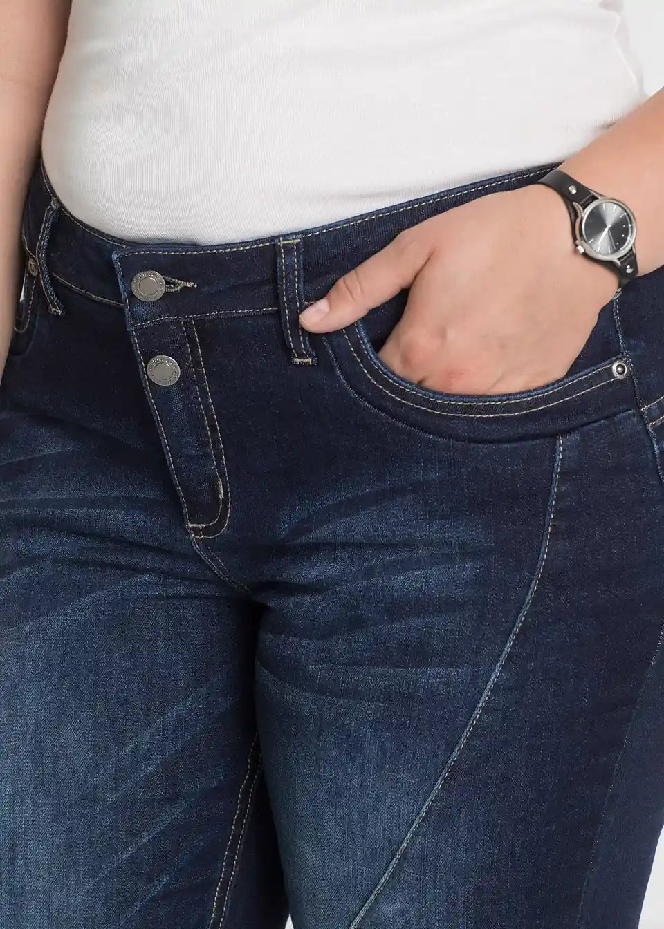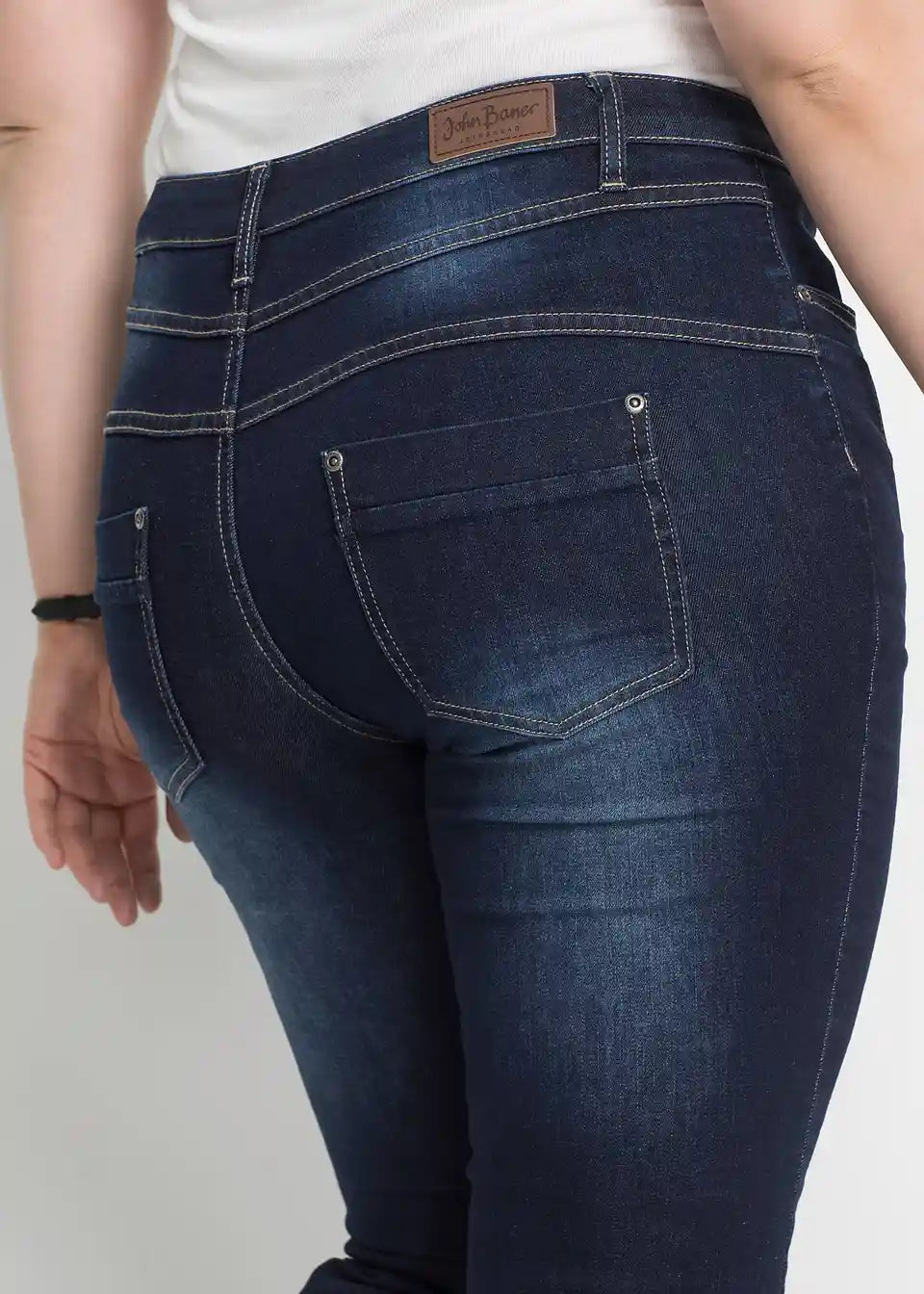 Model hlača koji se može nositi u mnogim prilikama u svakodnevici - to su Stretch traperice BOOTCUT brenda John Baner. Posebne značajke traperica s formiranim pojasom su upadljivi dijeljeni šavovi na prednjem dijelu i lijepo pranje. Traperice s dva prednja kosa džepa i dva stražnja našivena džepa idealne su za niže žene. Bootcut kroj optički izdužuje noge.