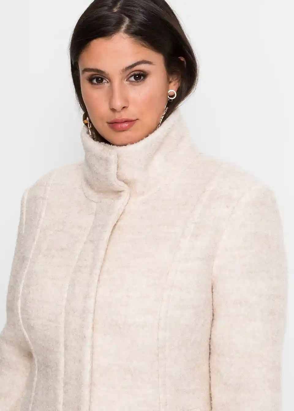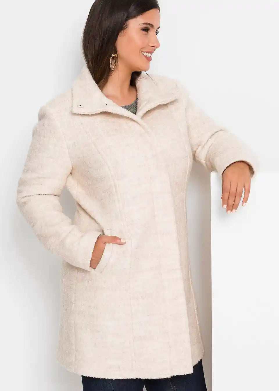 Šarmantni Bouclé kaput na kopčanje izrađen u klasičnom dizajnu.