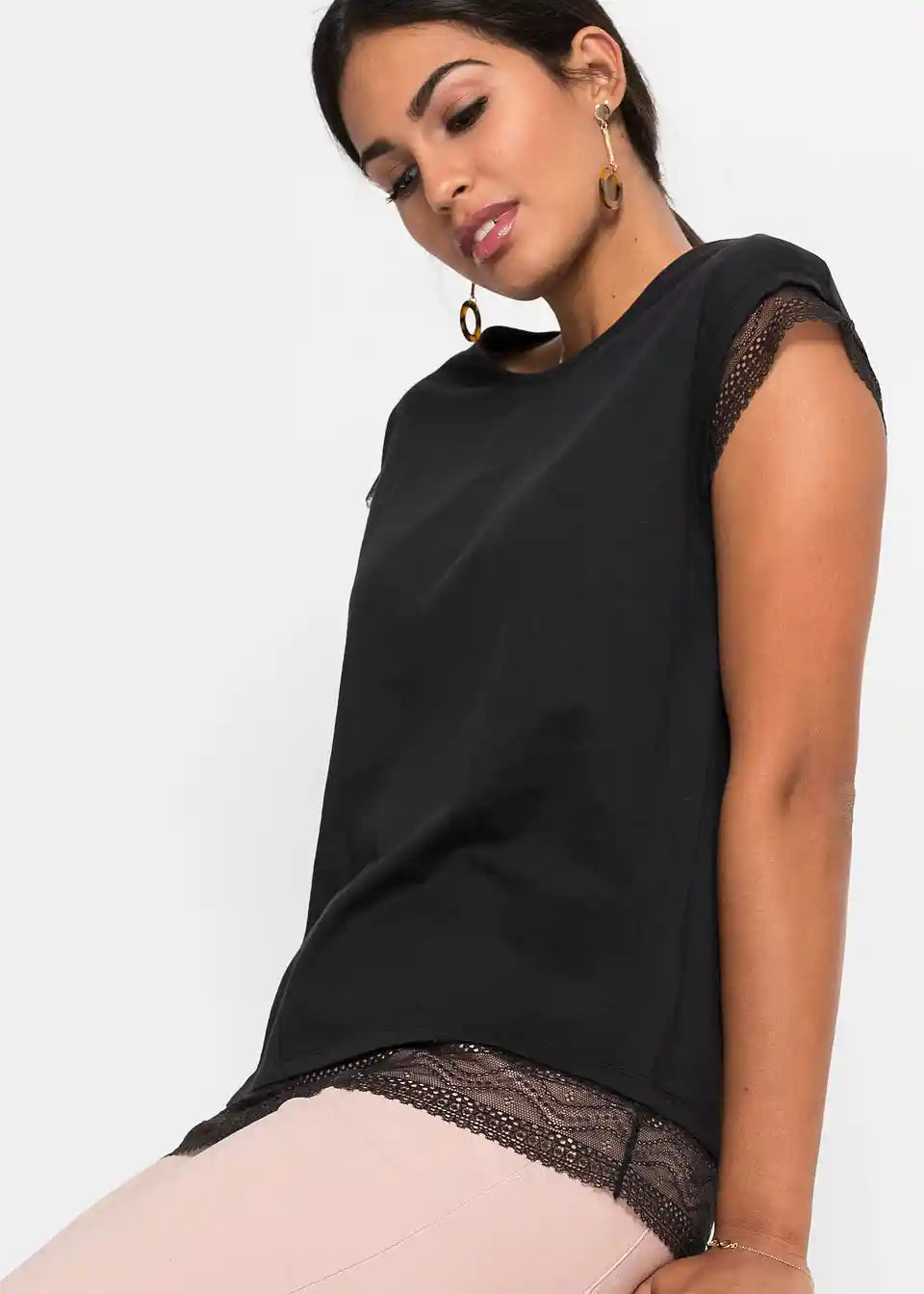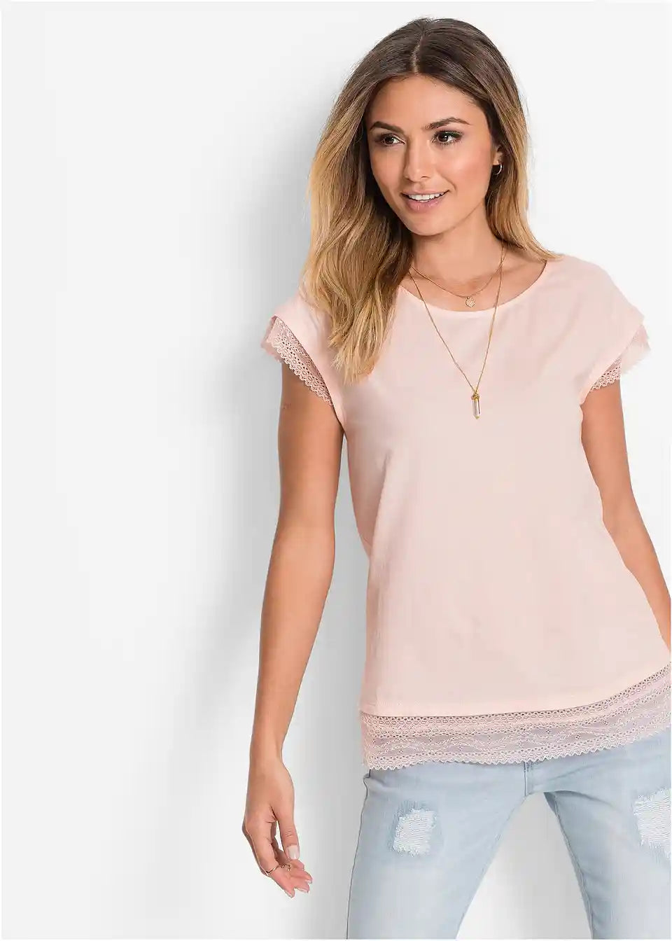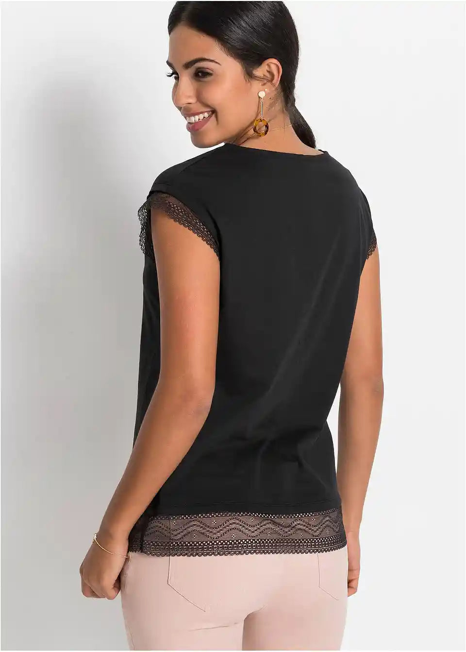 Moderna Boxy-majica s razigranim detaljima od čipke.
