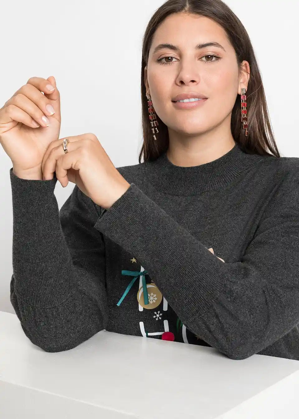 Udoban pulover s božićnim motivom i balon rukavima