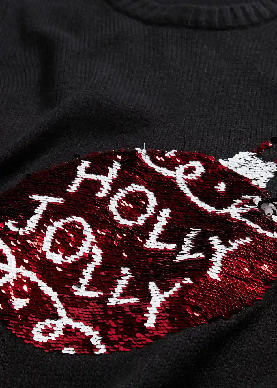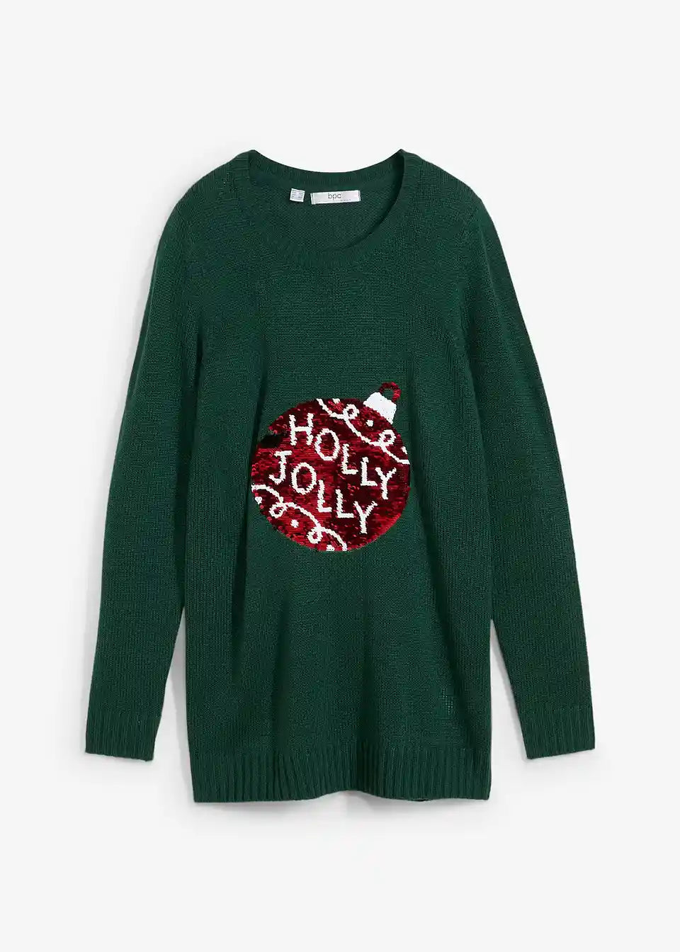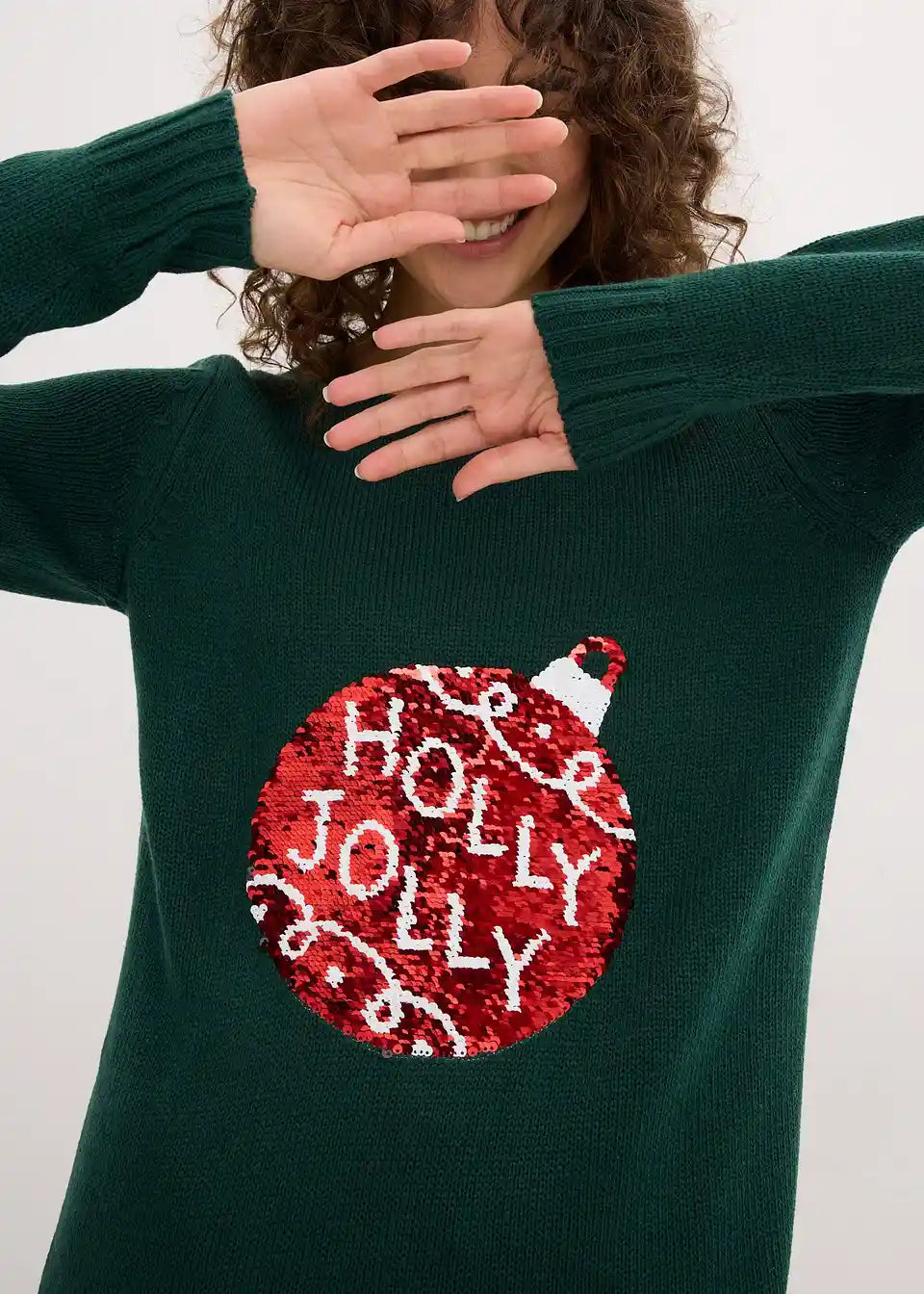 Udobno krojen božićni pulover s okruglim izrezom i reverzibilnim šljokicama