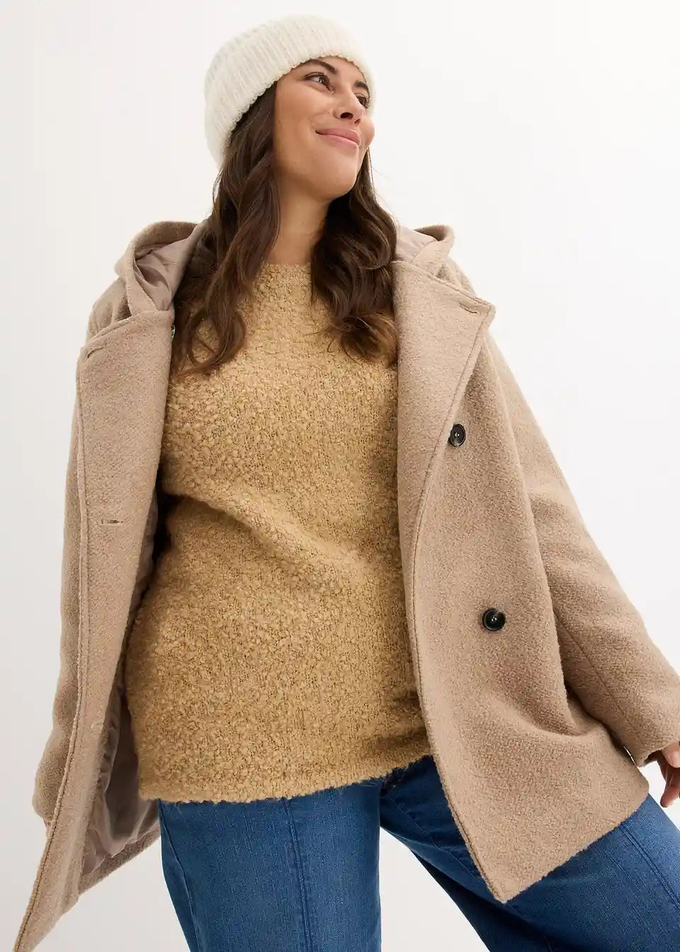 Jakna s dvostrukim kopčanjem od mekanog buklea
