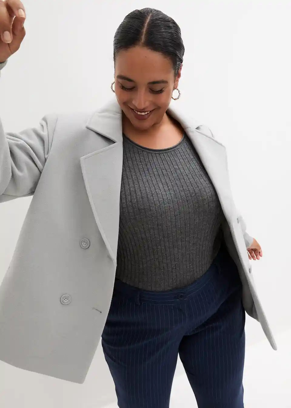 Jakna s dvostrukim kopčanjem i pletenim rukavima
