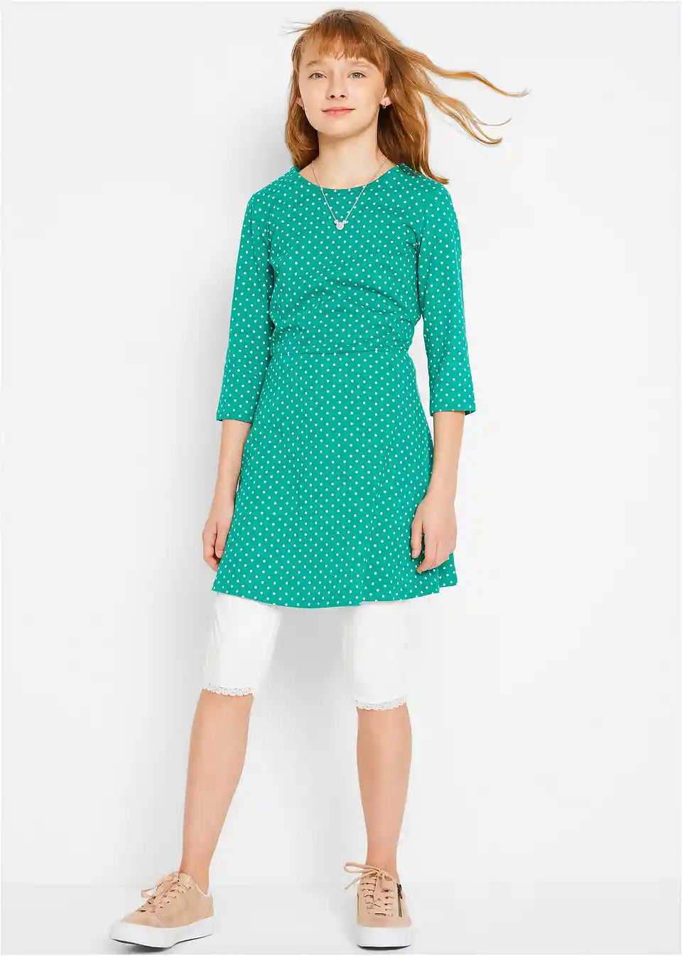 S lijepim dizajnom i suptilnim detaljima, ove Capri-leggings od bpc-a imaju potencijal postati omiljeni komad. Model u 3/4 dužini osvaja djevojčice slatkom čipkom na završecima nogavica. Elastični pojas s gumom osigurava udobno pristajanje. Capri-legginsi s čipkastim obrubom dolaze u dvostrukom pakiranju u različitim nijansama boja, pružajući mogućnost raznolikih kombinacija.