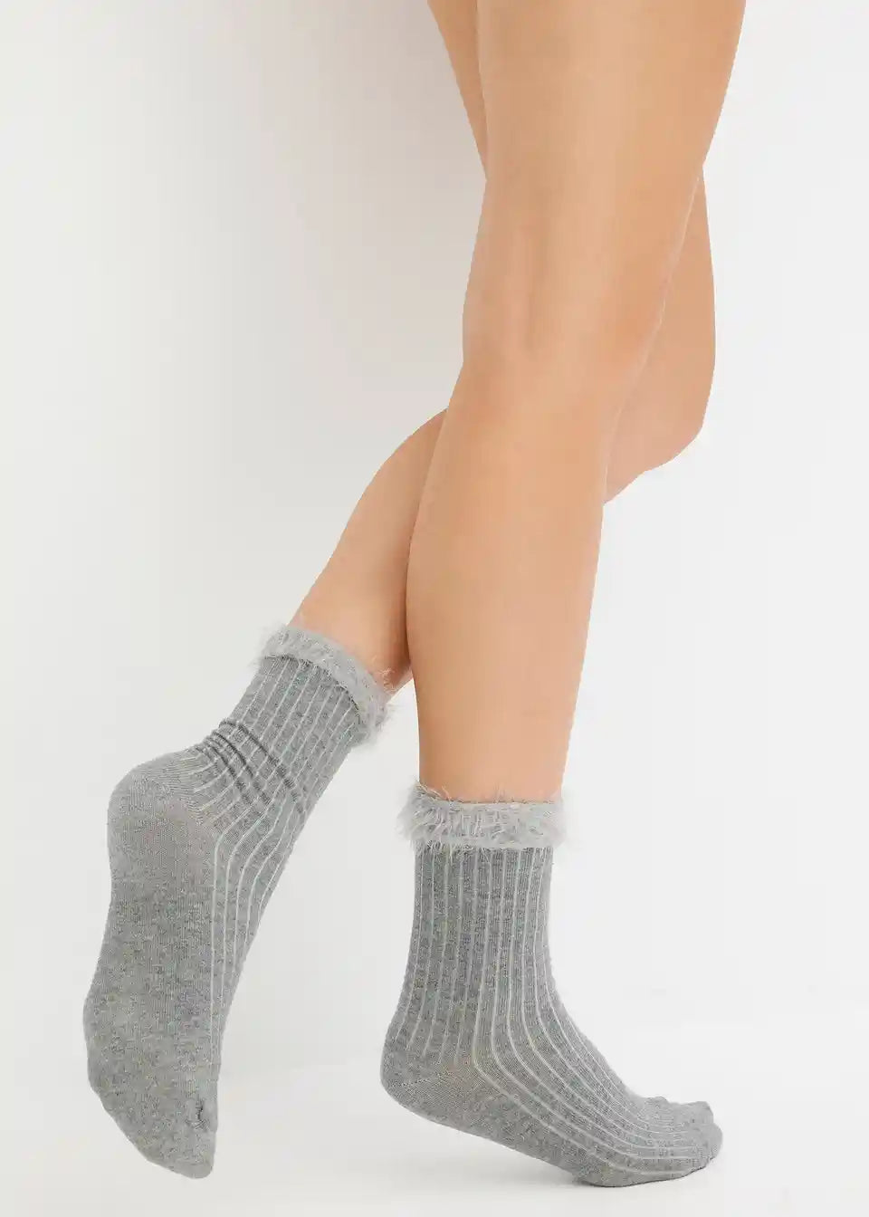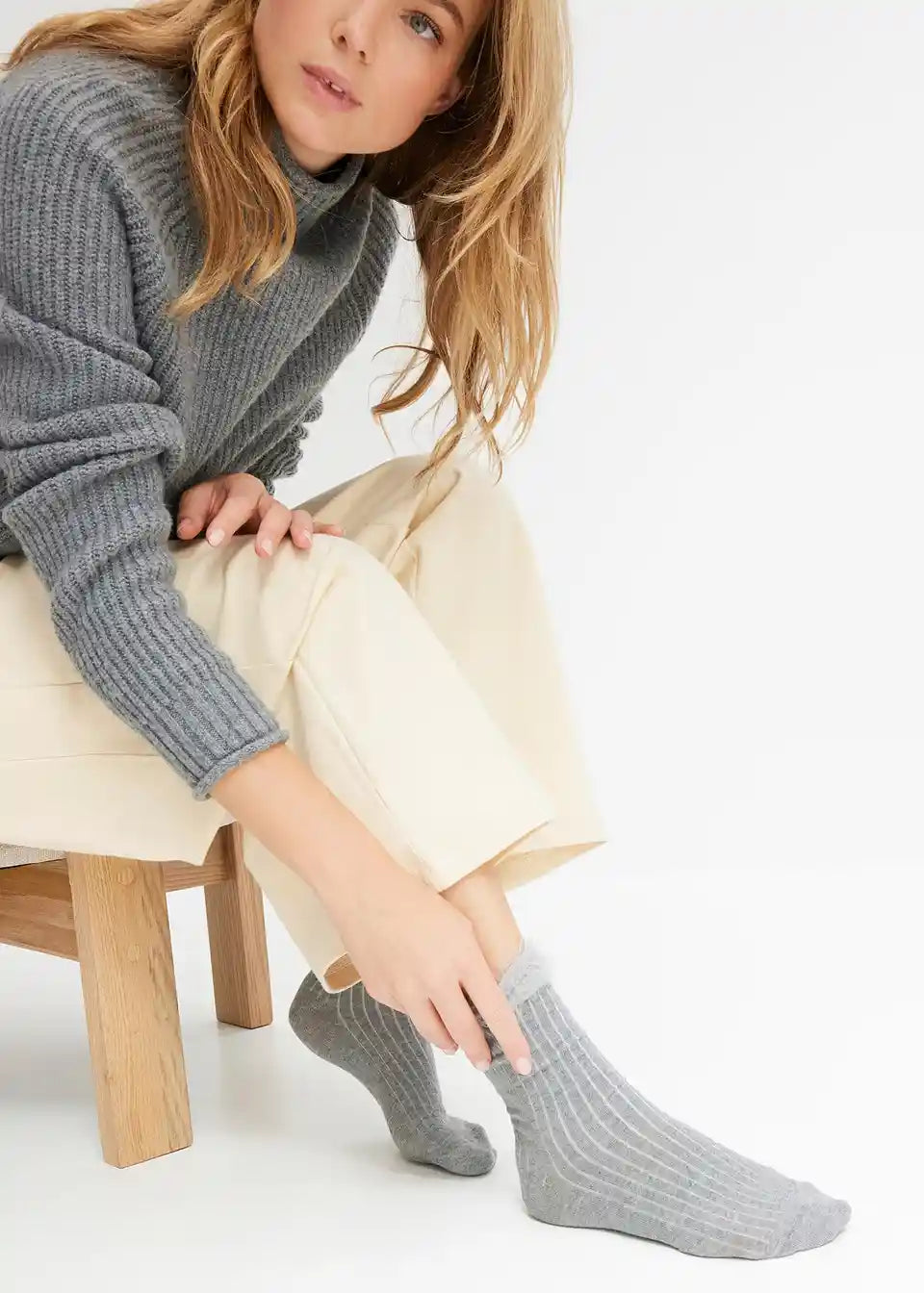 Fluffy čarape s rebrastom strukturom i preklopnim rubom