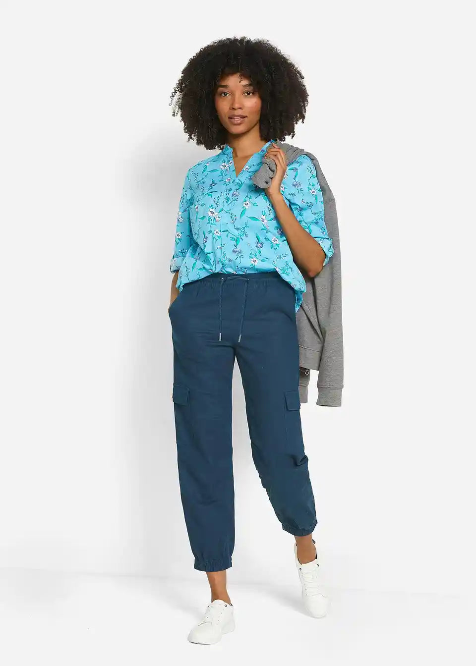 Ležerne hlače s elastičnim pojasom, bočni džepovi i našiveni bočni džepovi, elastični rub na nogavicama