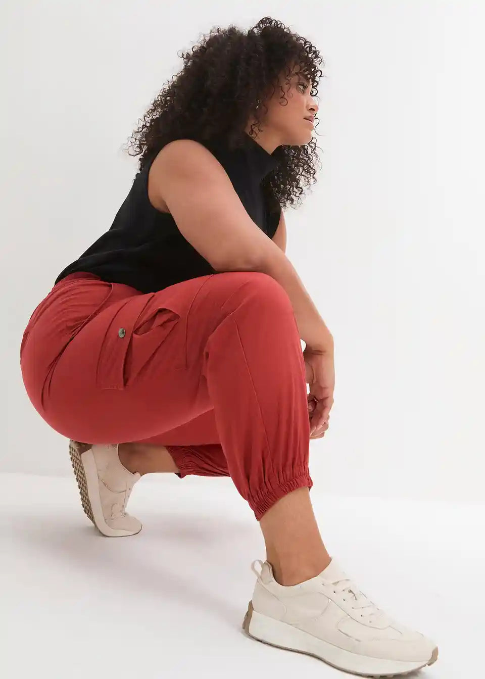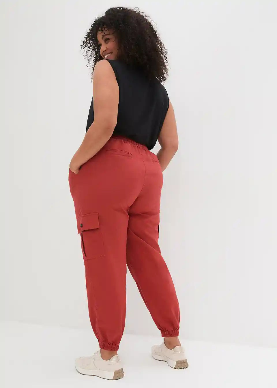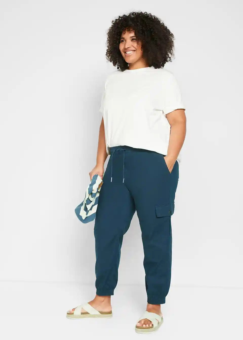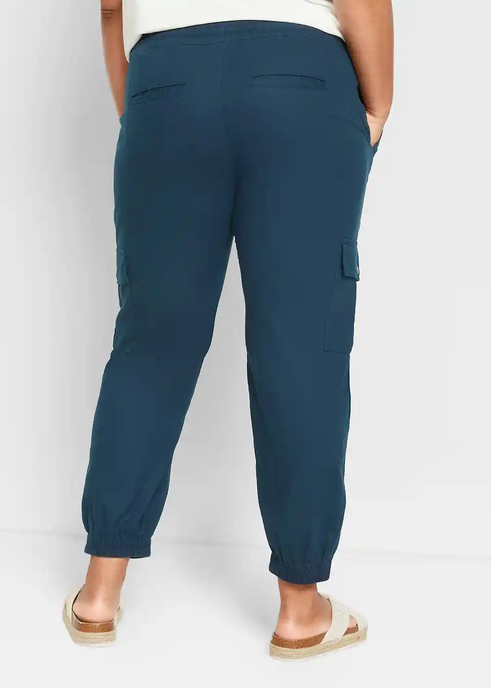 Ležerne hlače na navlačenje s elastičnim pojasom, bočni džepovi i našiveni bočni džepovi, elastična manžeta na rubu