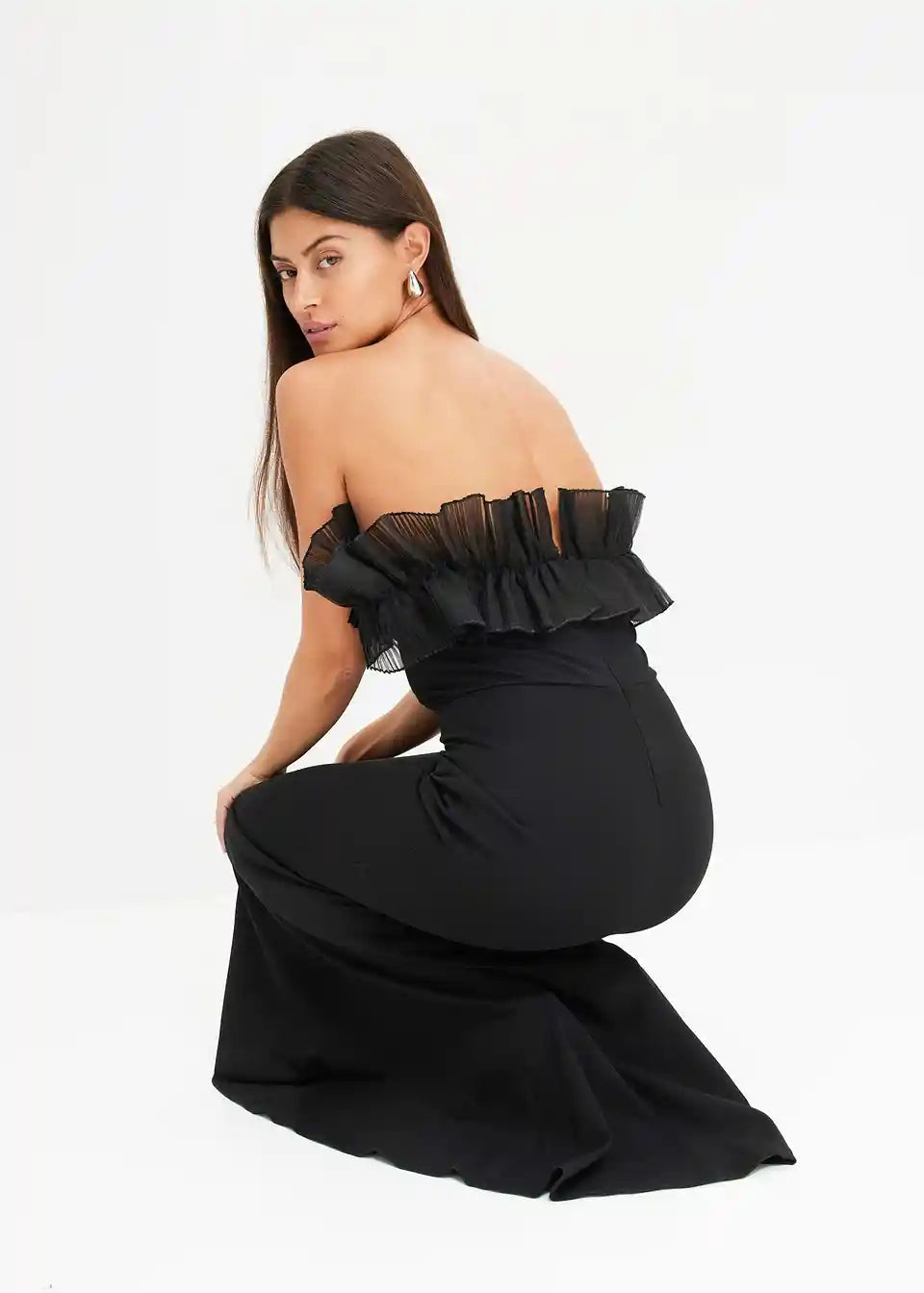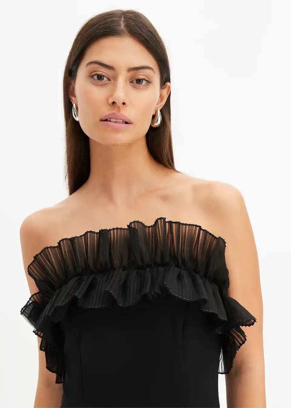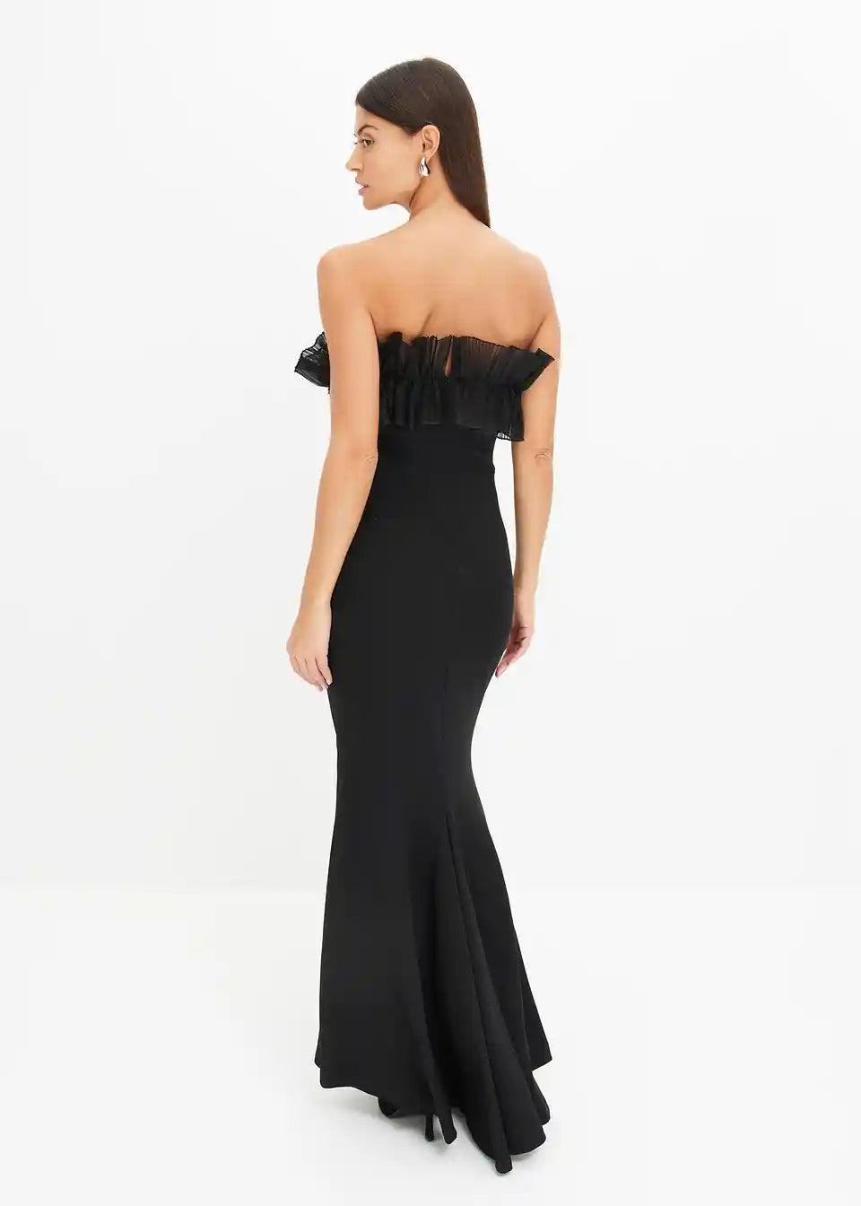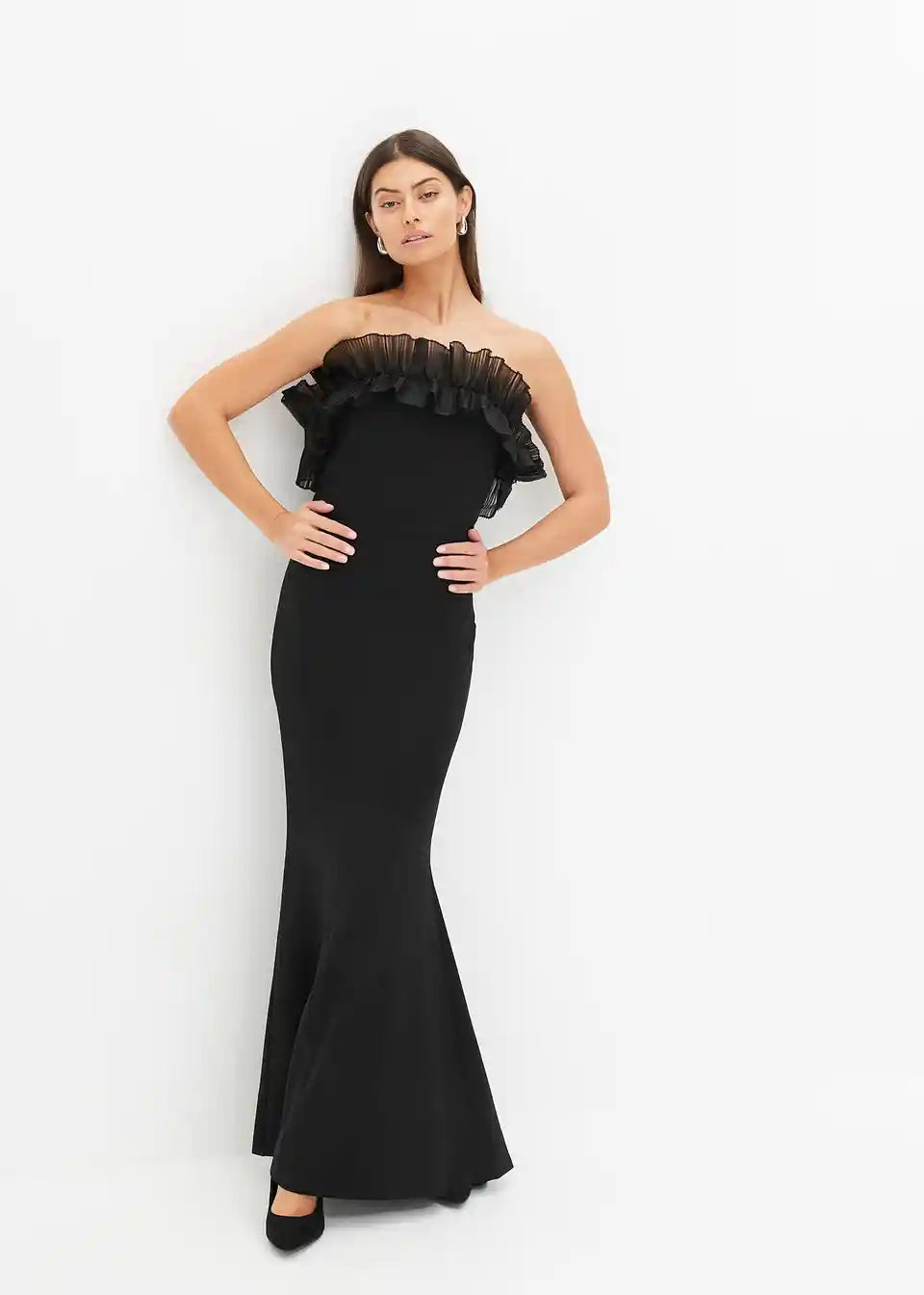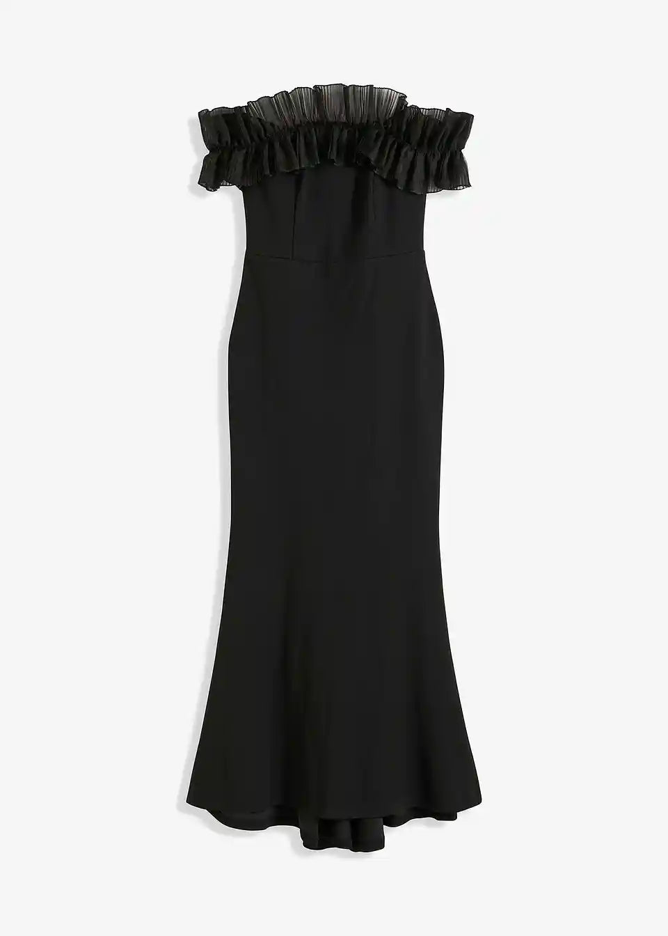 Moderni i ženstveni stil: Carmen-haljina dužine maxi od strukturiranog krepa s posebnim organza aplikacijama na izrezu