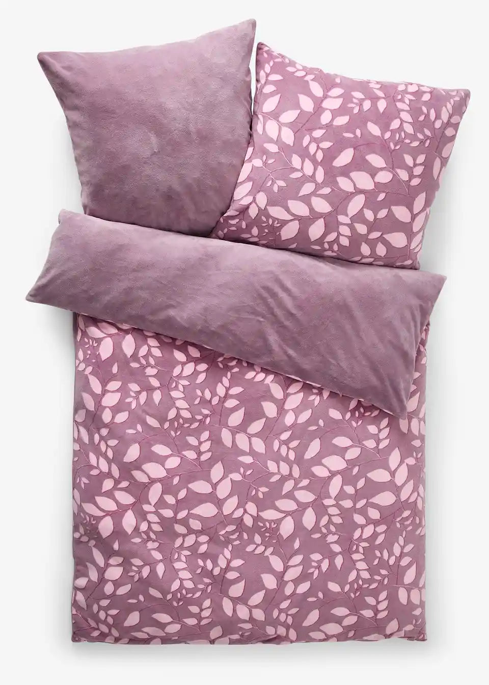 Plišasta posteljina s elegantnim printom i jednobojnom stražnjom stranom.