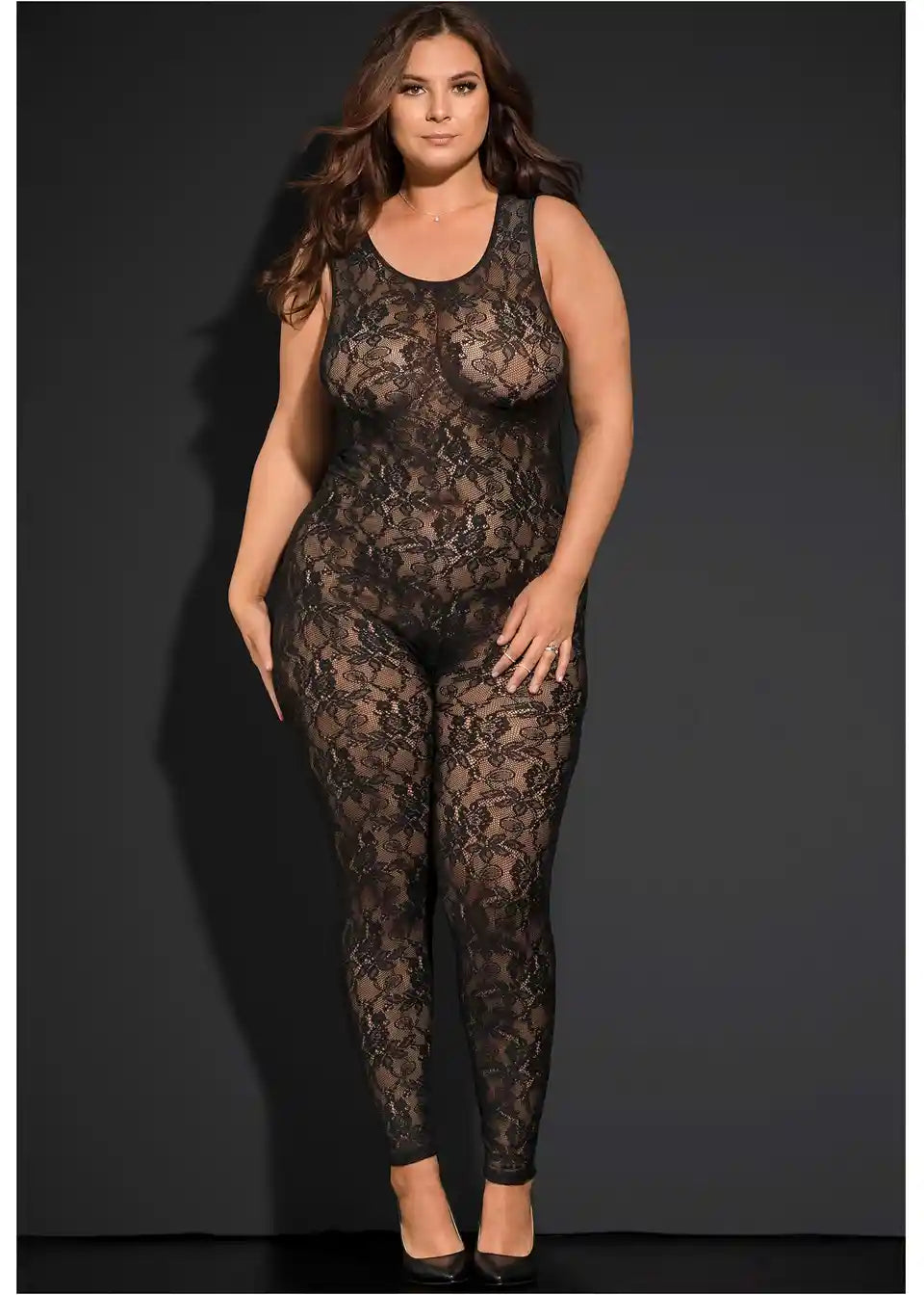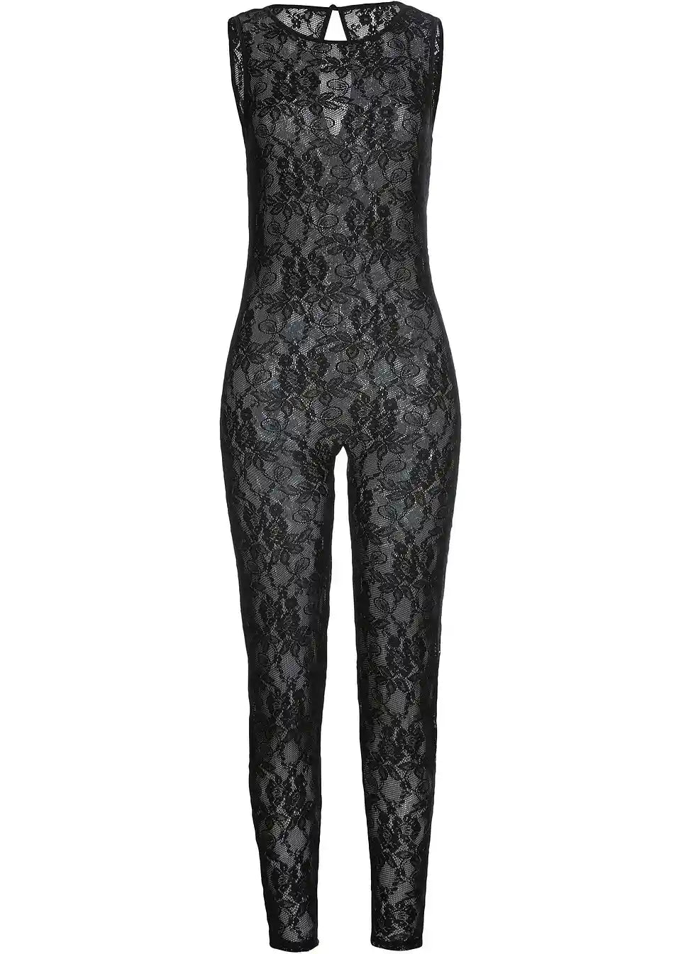Ovaj Catsuit obavija kožu svojim mekanim materijalom i vješto ističe ženske obline. Donje rublje sa svojim prozirnim čipkastim dijelovima seksi otkriva vaše čari. Sportski kroj stvara savršen kontrast i čini Catsuit nečim posebnim. U području prepona krije se zračni detalj. Kombinirajte ovaj outfit s seksi crnim visokim petama. Catsuit je dostupan i u većim veličinama.