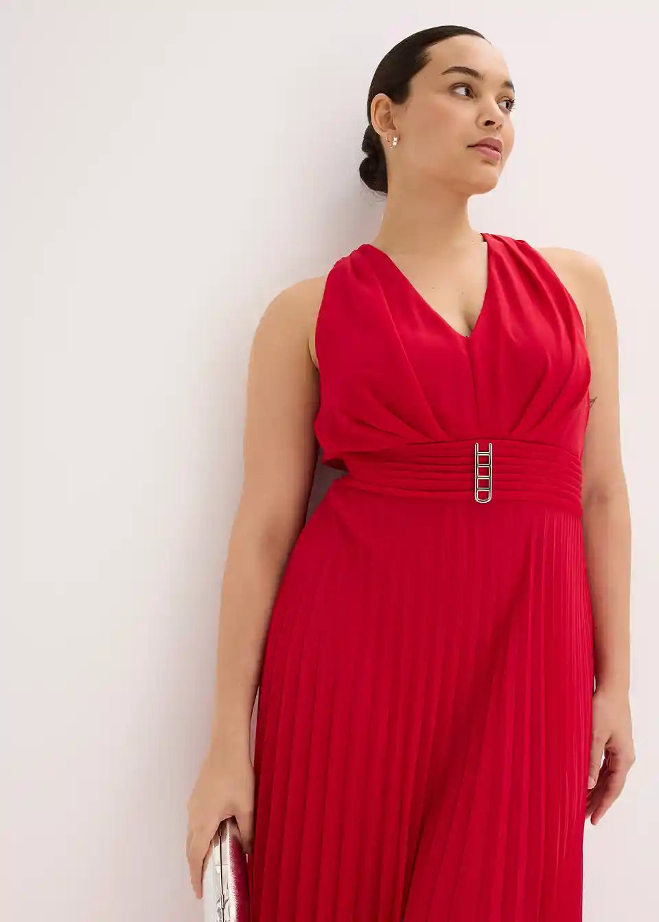 Chiffon haljina s plisiranom suknjom i kopčom kao dodatkom