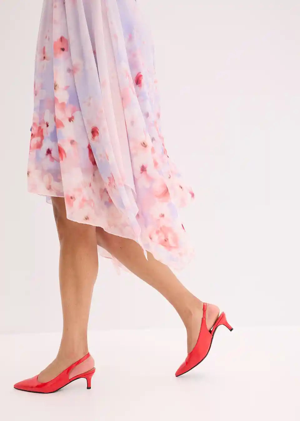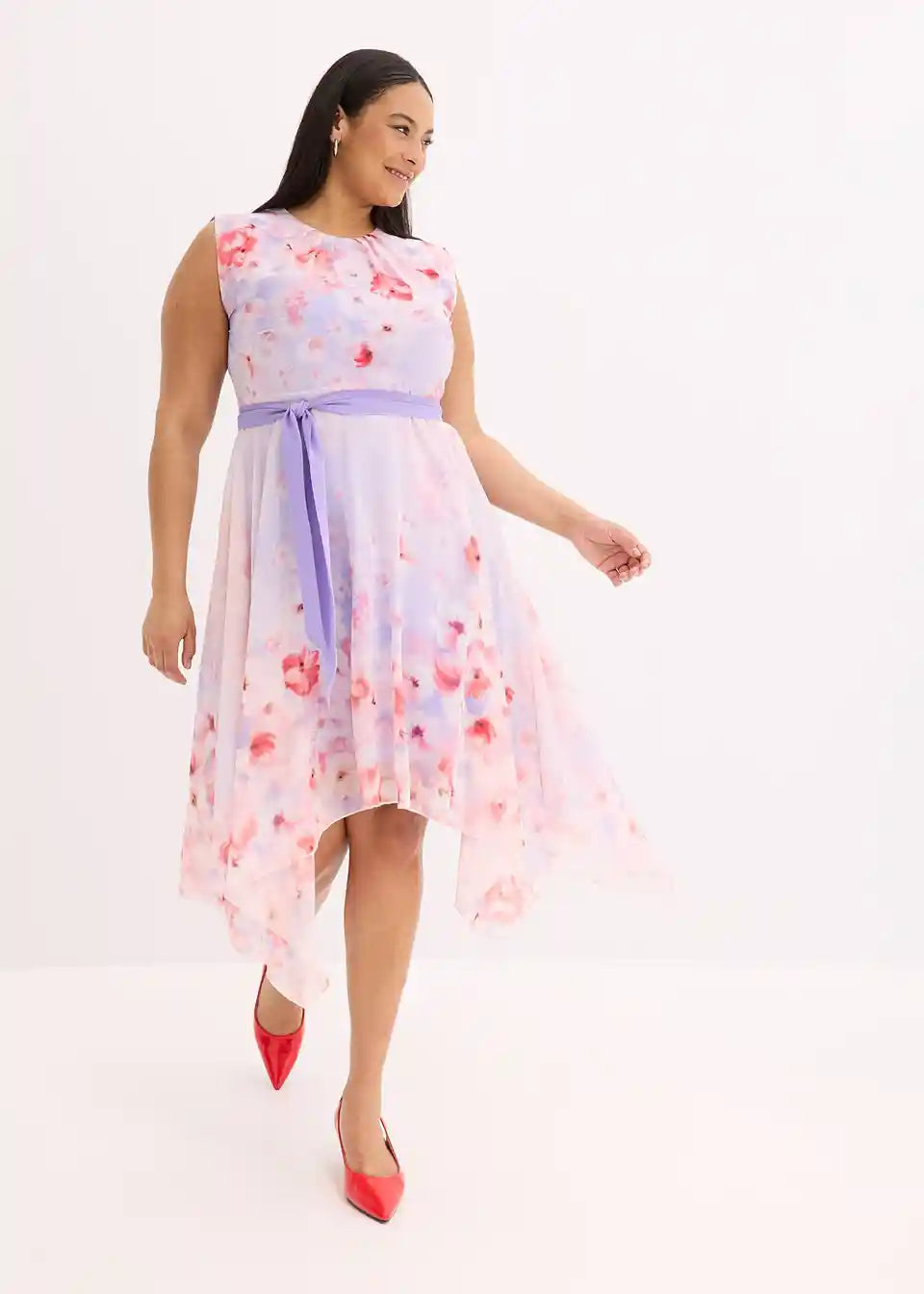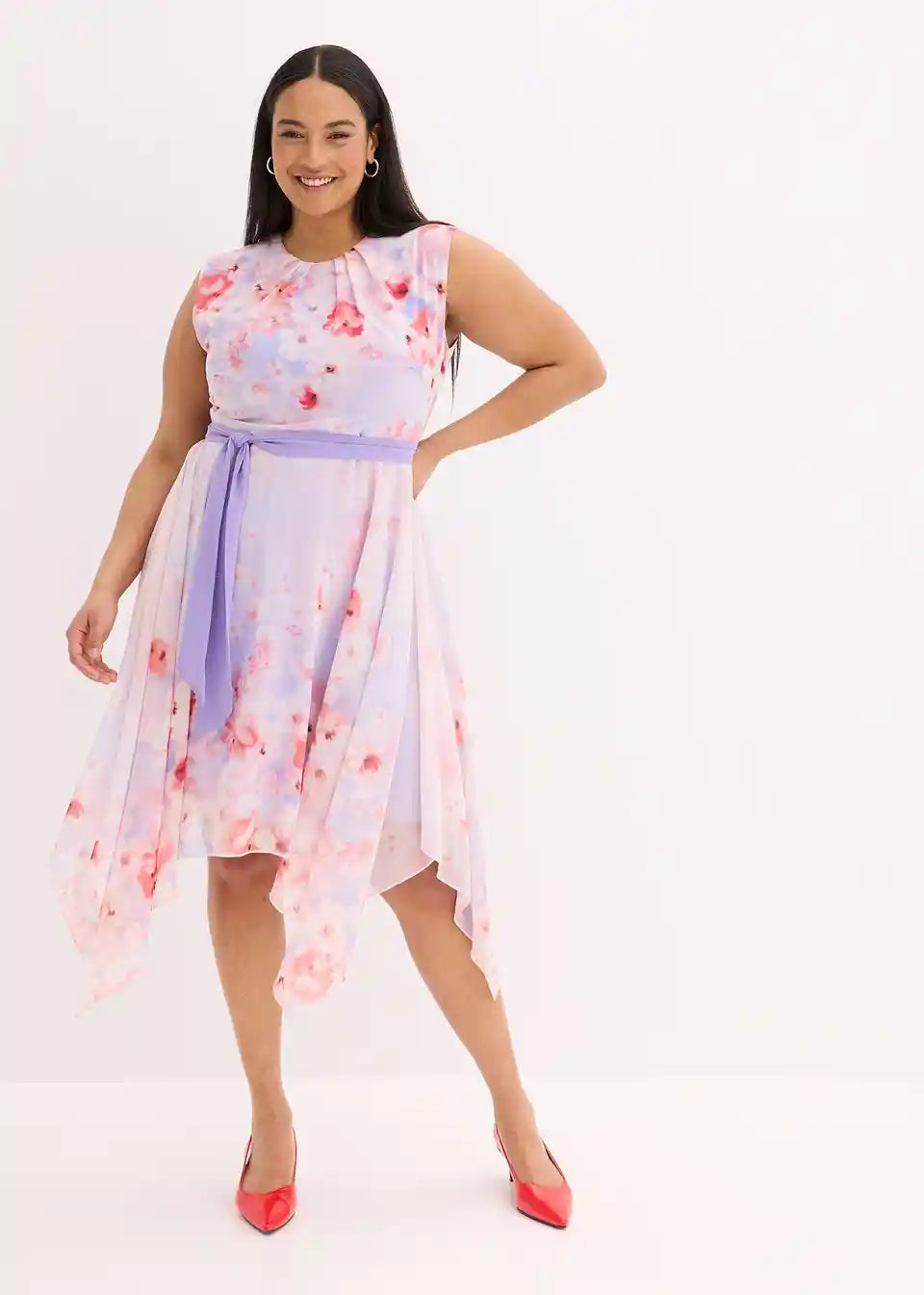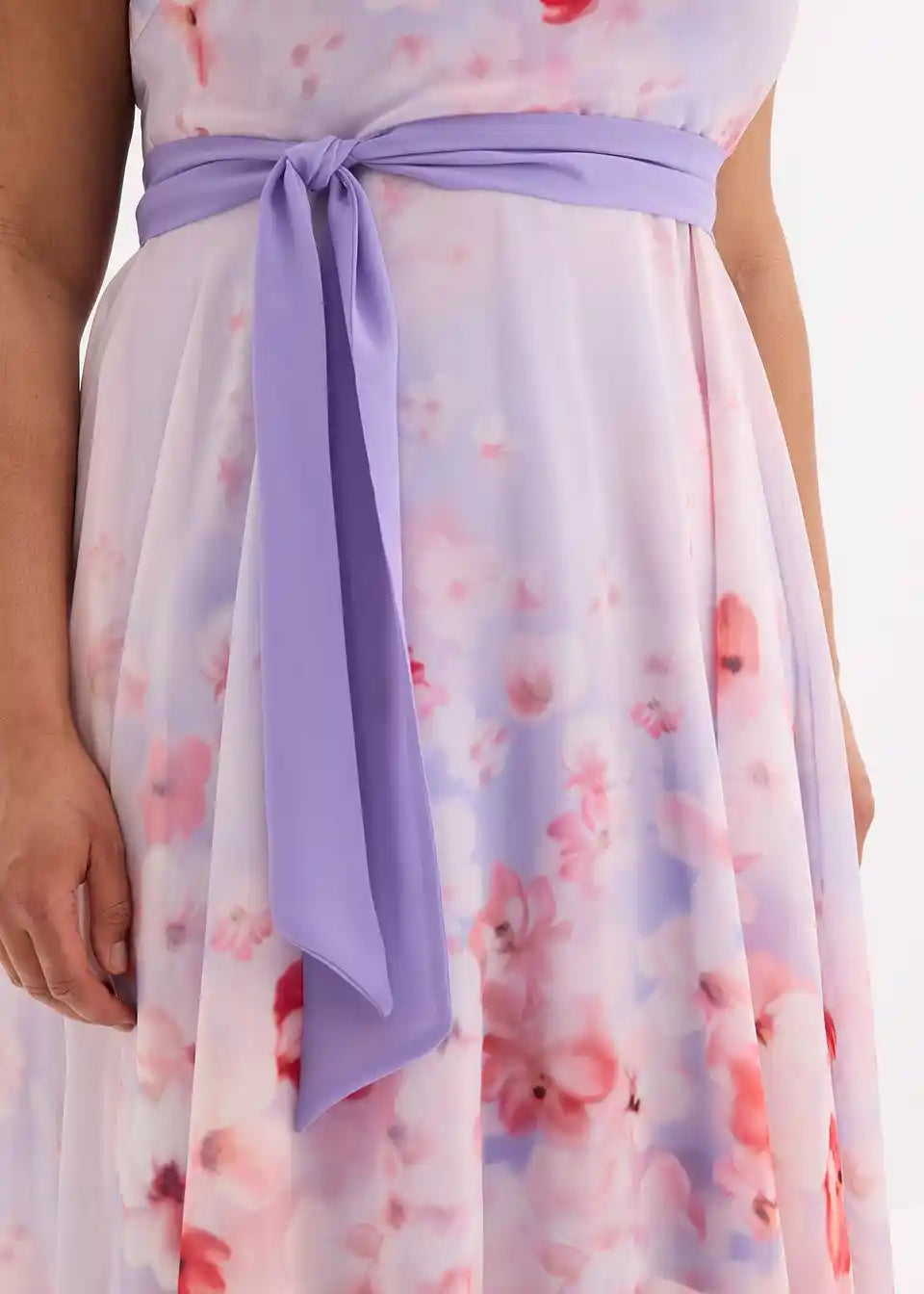 Haljina od šifona asimetrične linije s trakom za vezanje