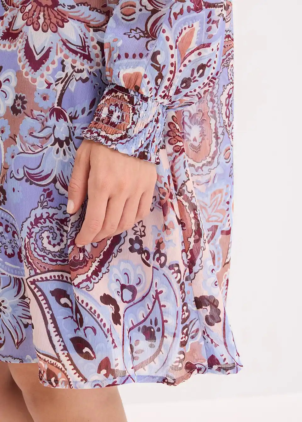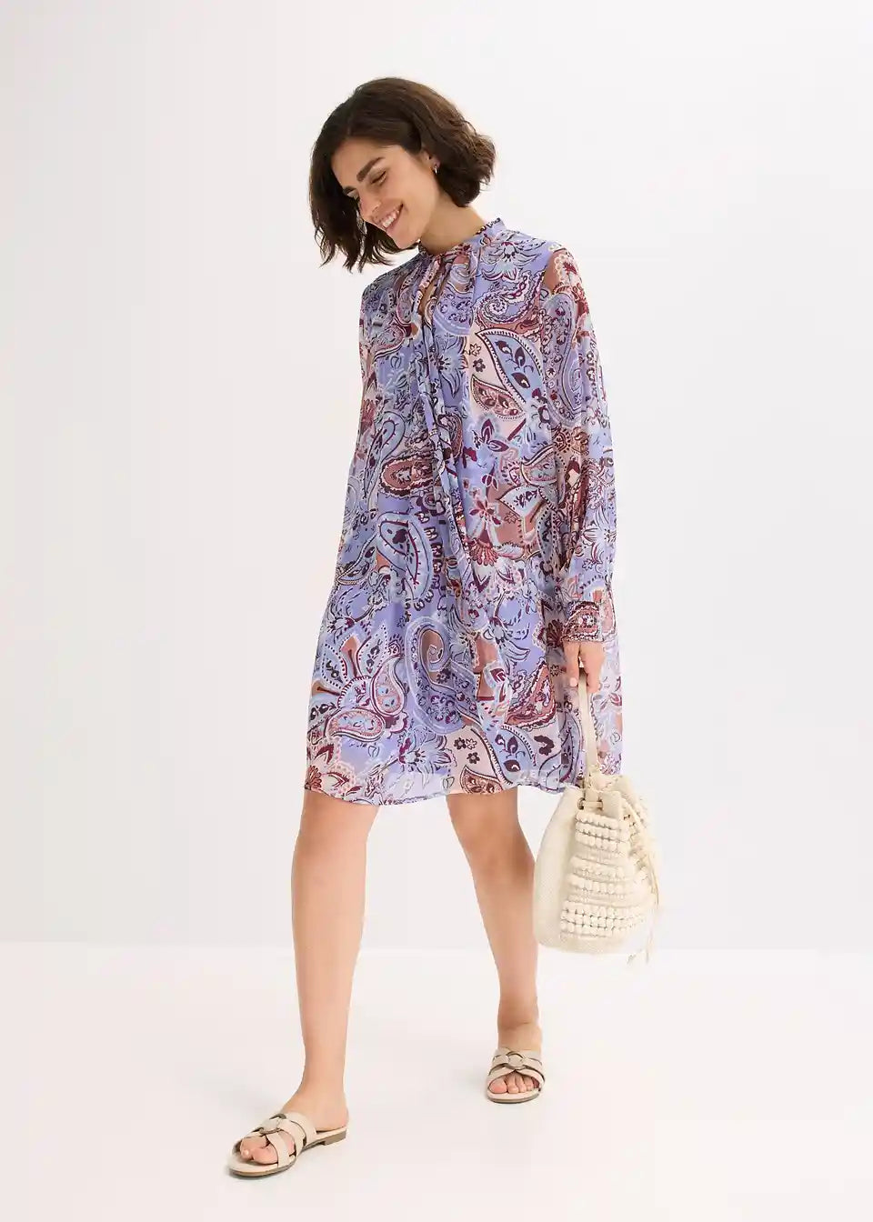 moderna chiffon-tunika-haljina s ovratnikom na vrpcu