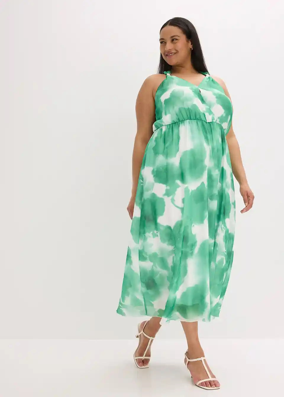Chiffonska haljina s naramenicama i ukrasnim dodatkom