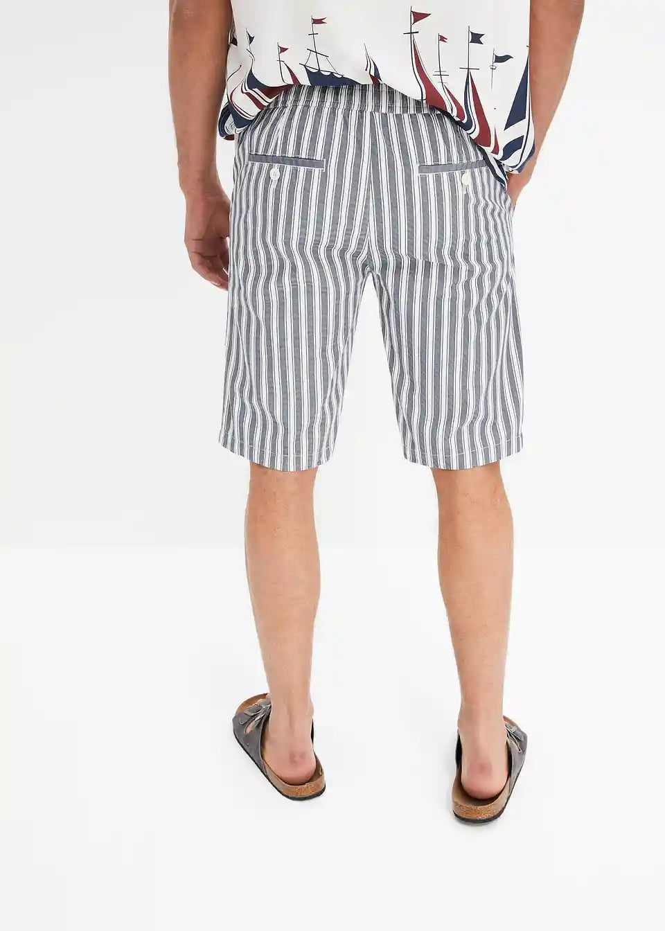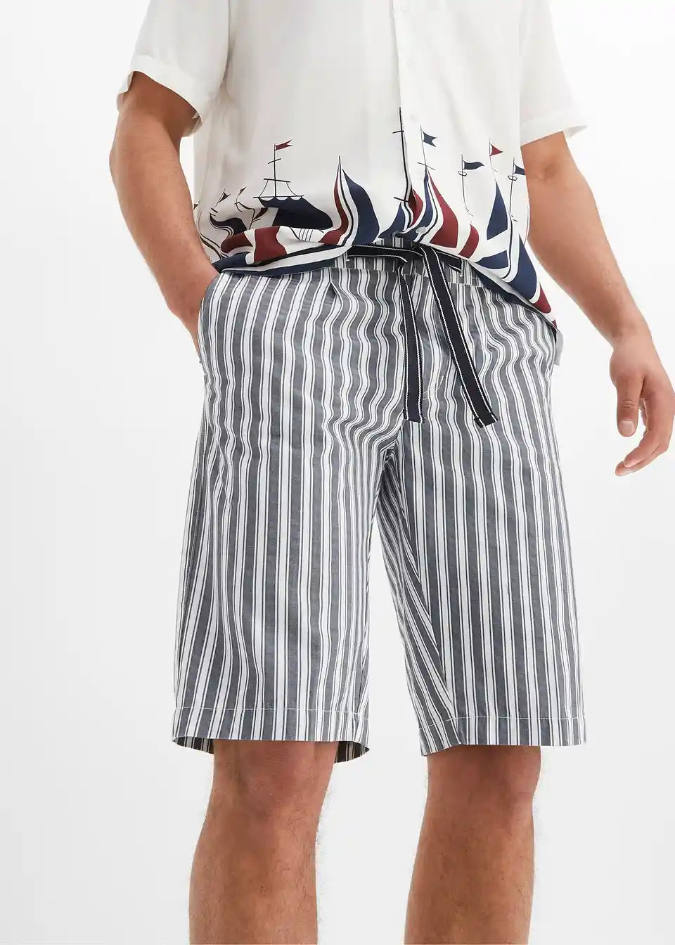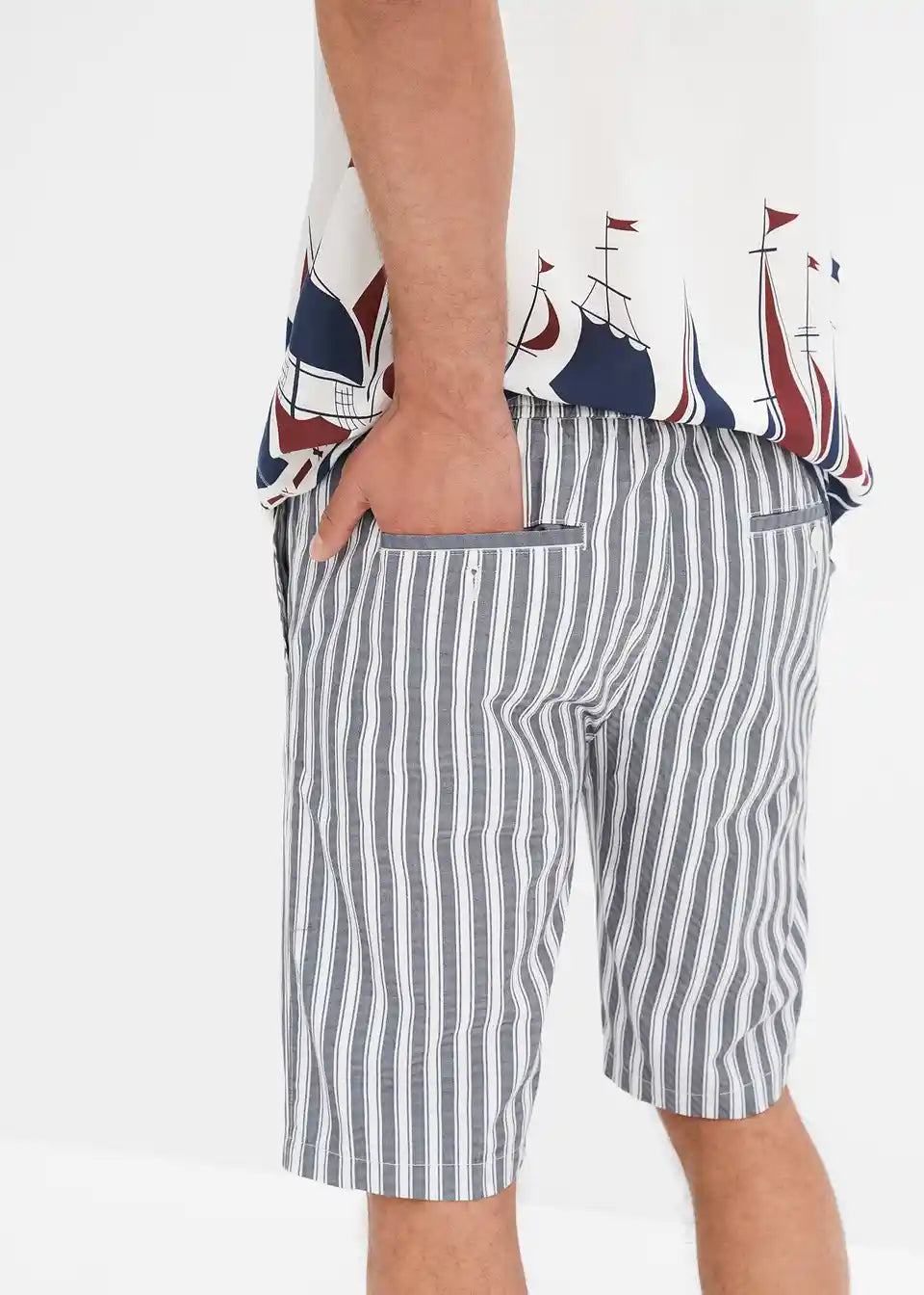 Moderne prugaste Chino-Bermude s proizvodnim faldama u regular fit kroju