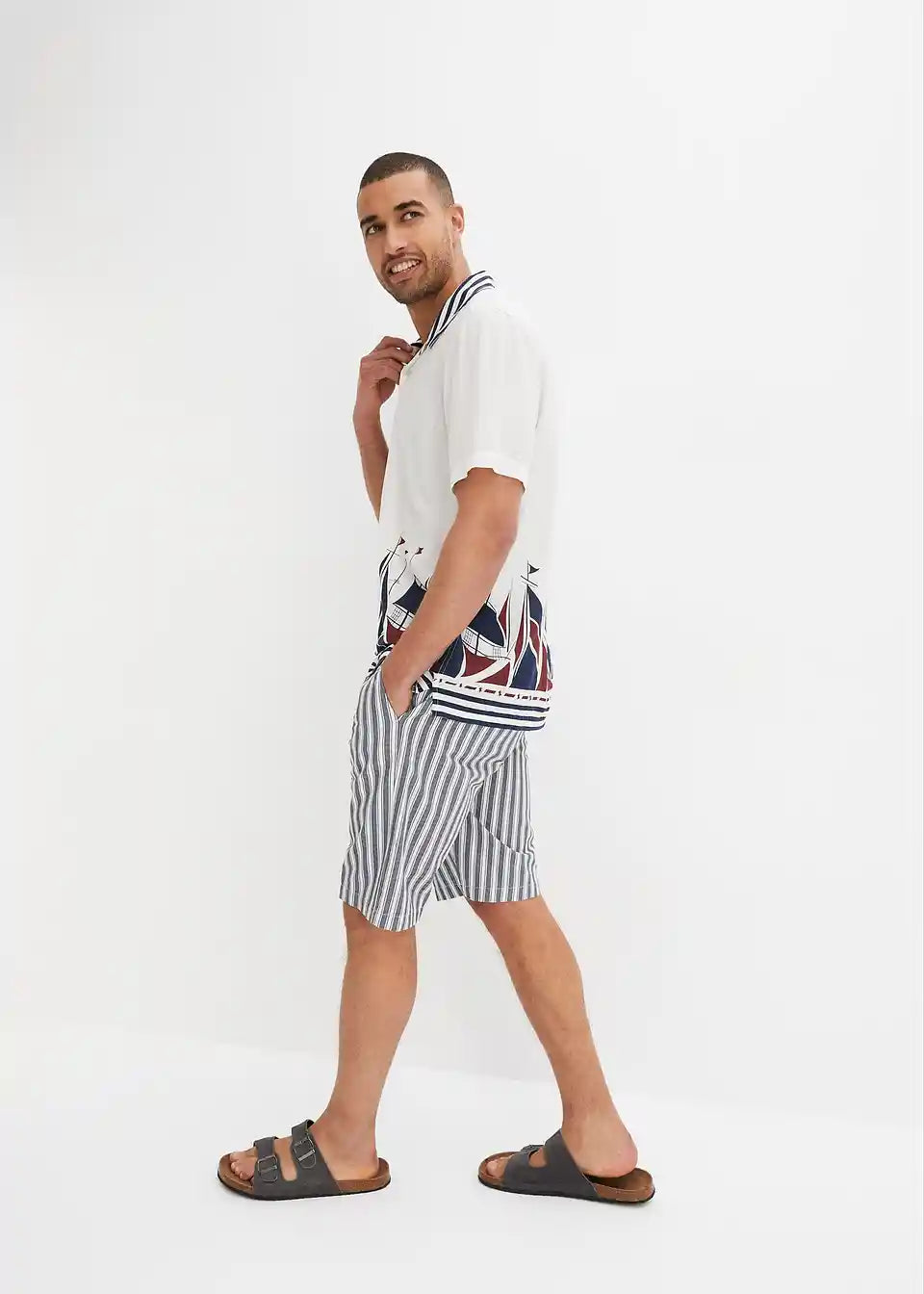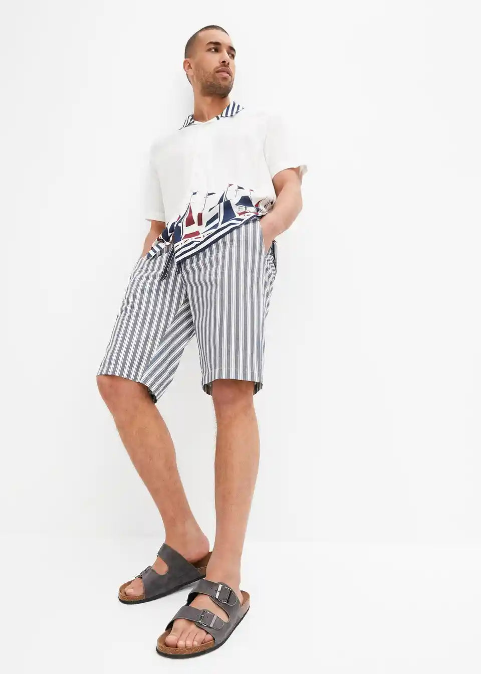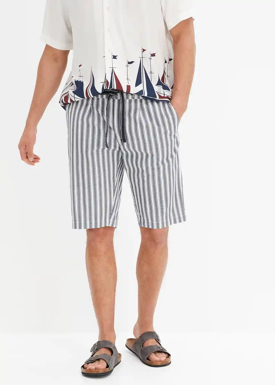 Moderne prugaste Chino-Bermude s proizvodnim faldama u regular fit kroju