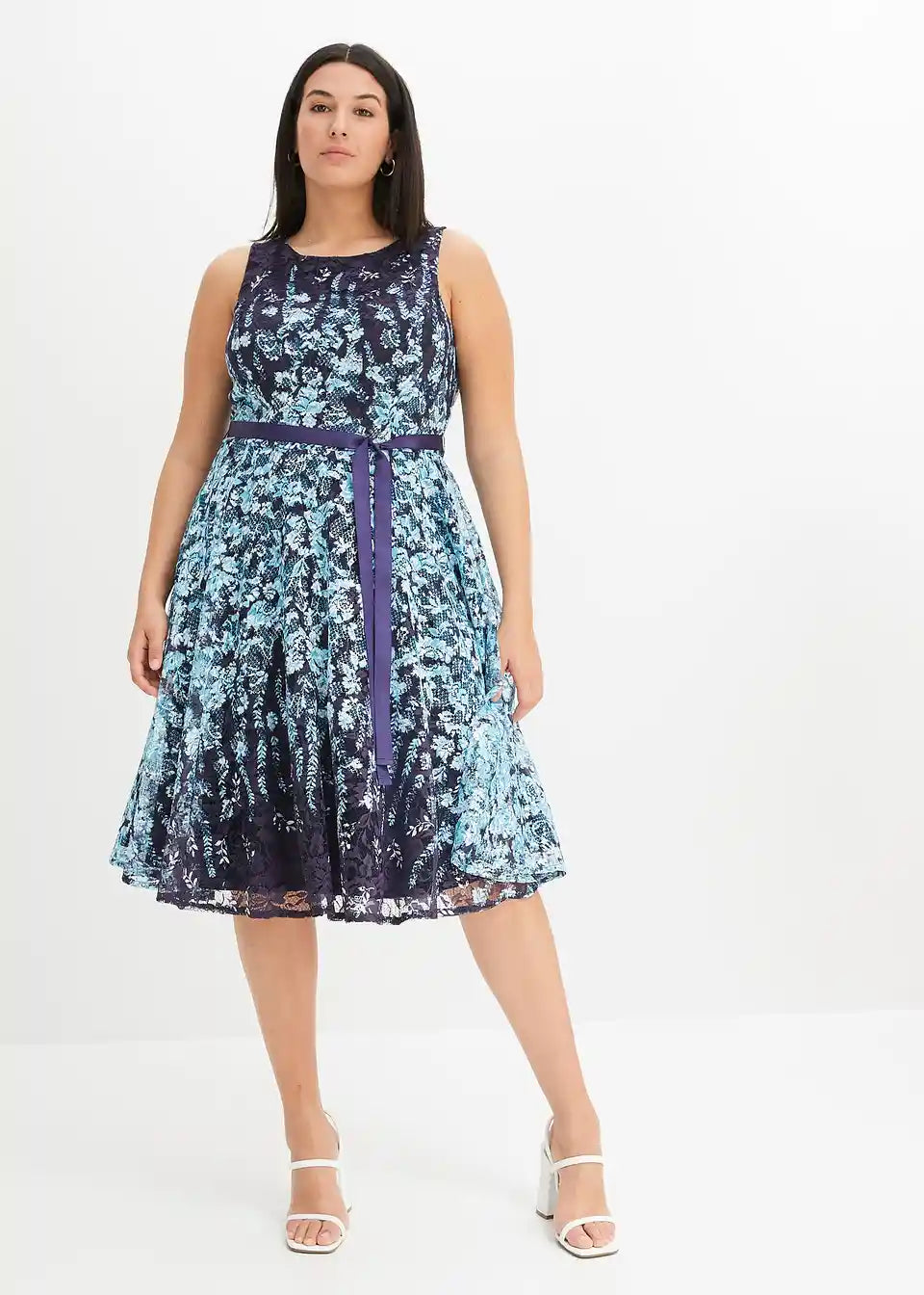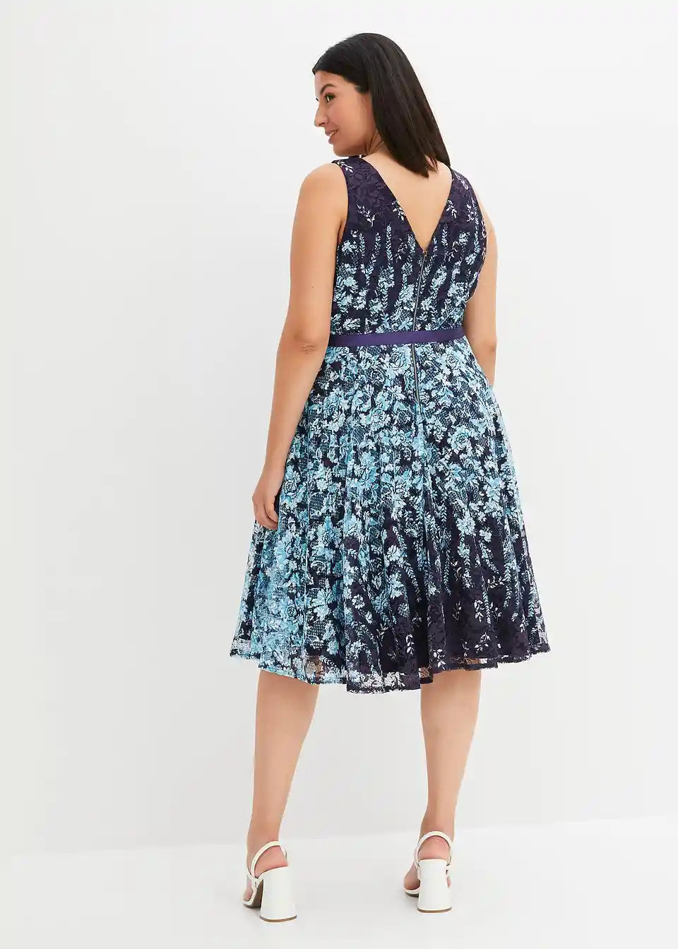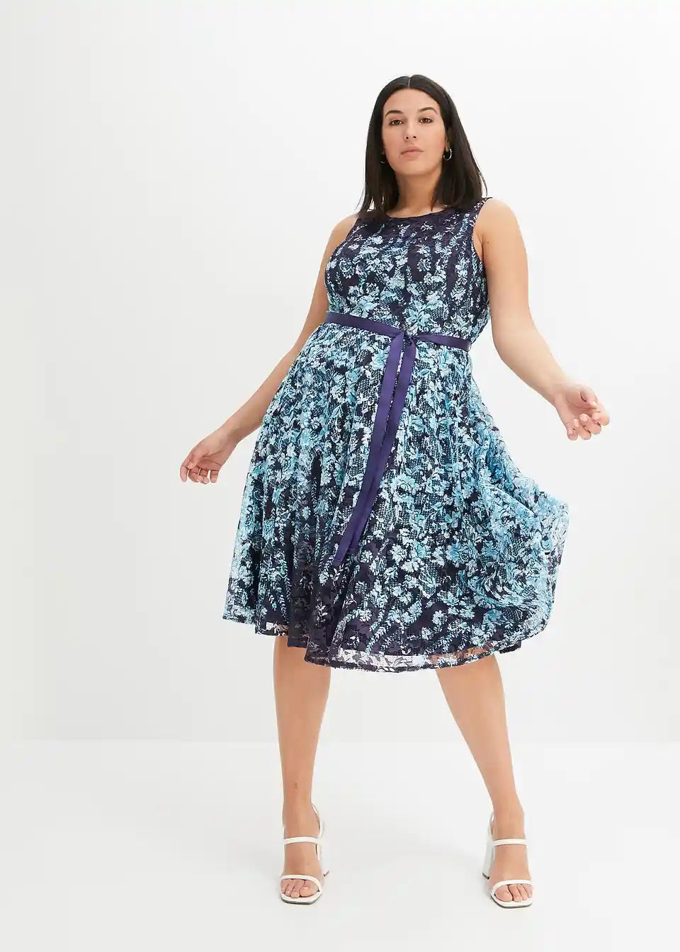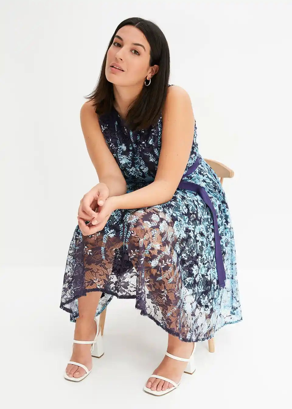 Romantično i ženstveno: Lepršava midi haljina od čipke s vezicom od sjajnog satena u struku